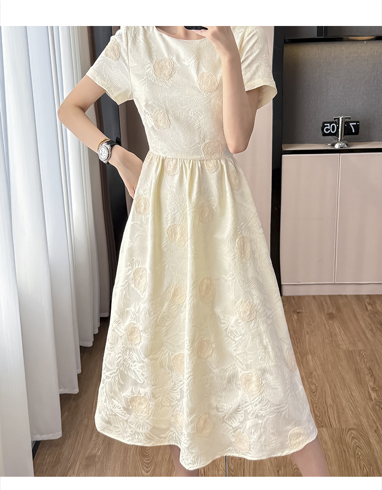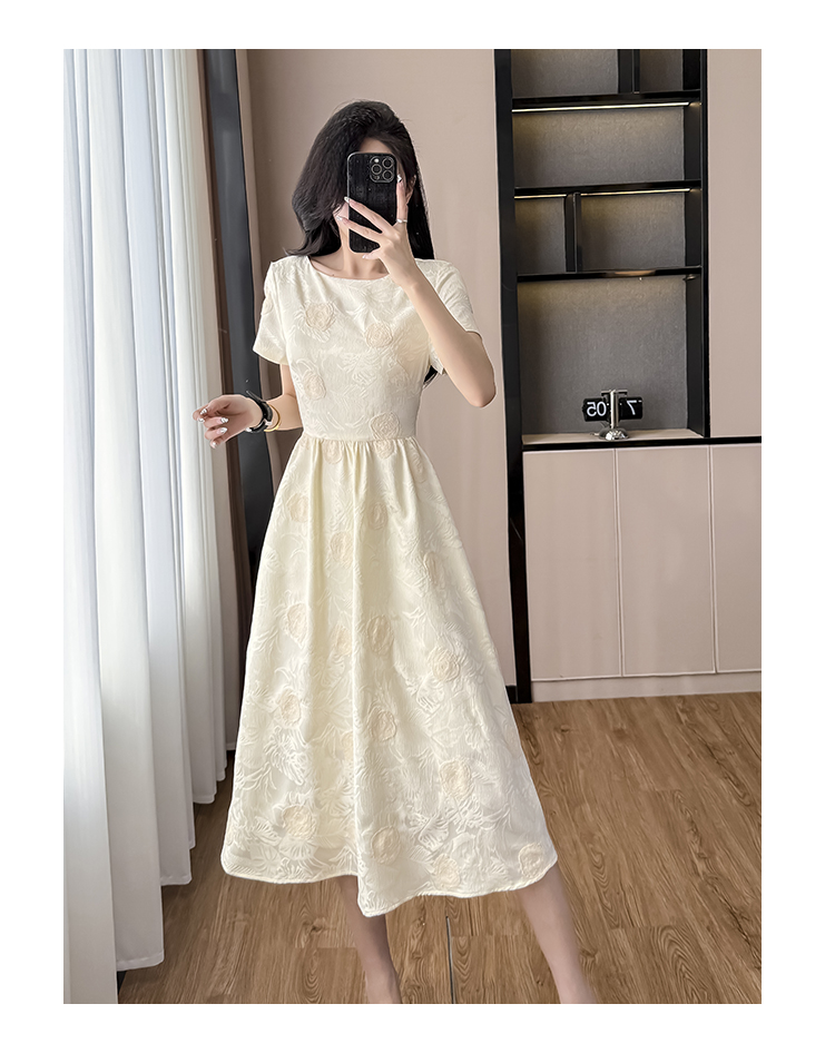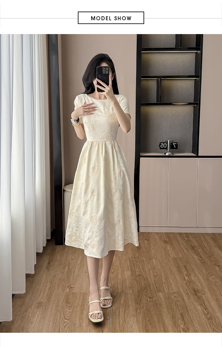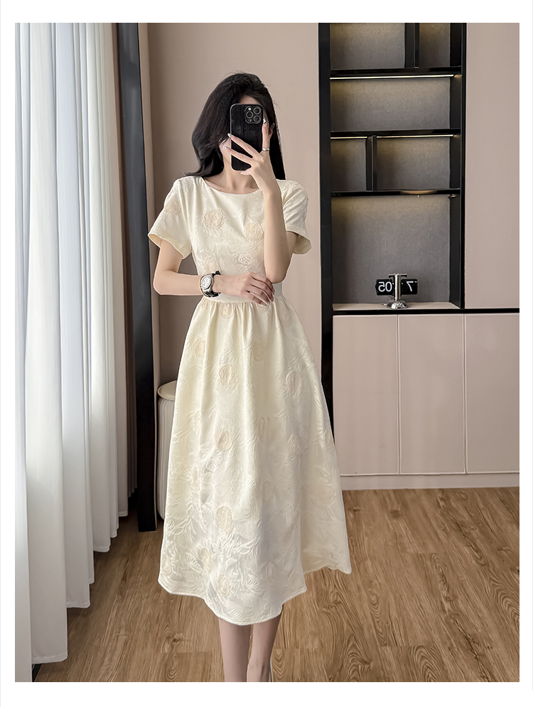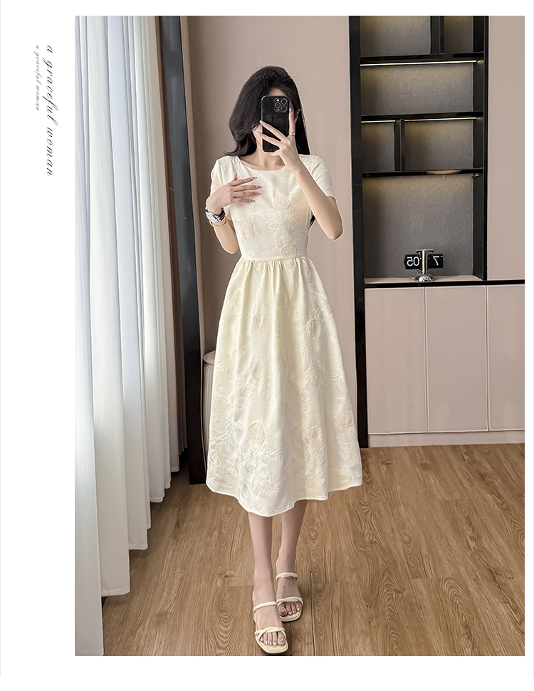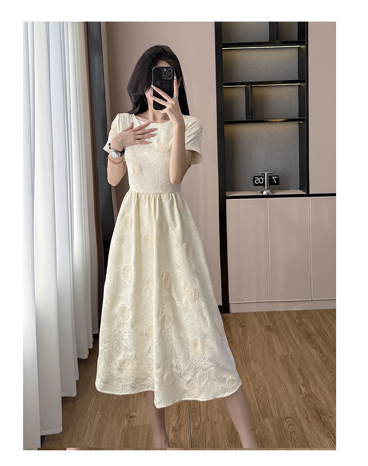 RY3052# 实拍新中式中国风连衣裙2025夏季新款重工提花温柔杏色裙子