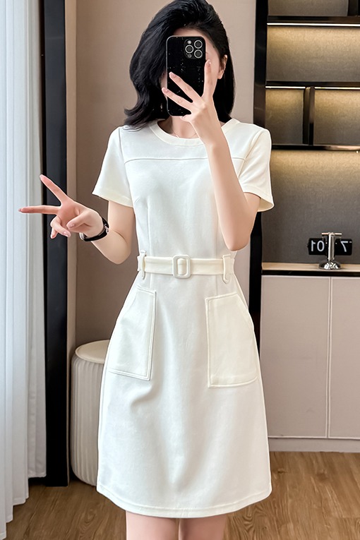 RY3056# 实拍设计感基础腰带收腰连衣裙夏季新款质感高级感连衣裙