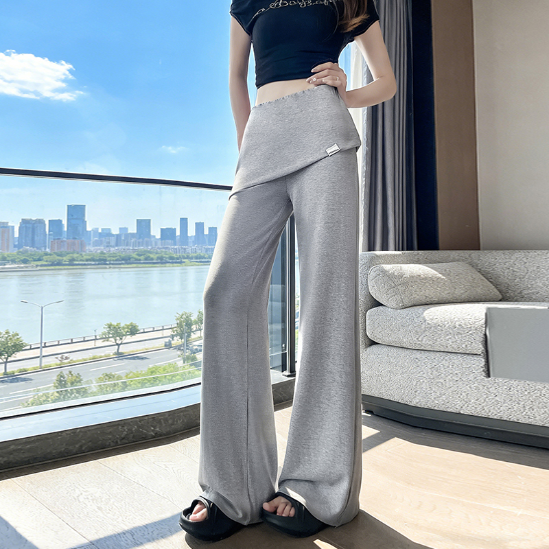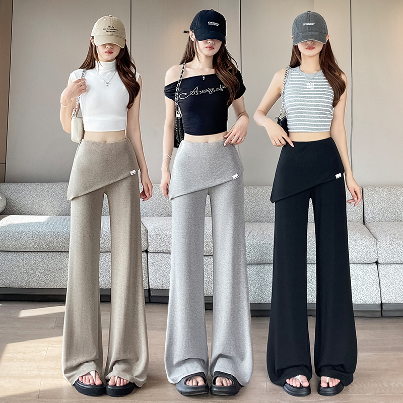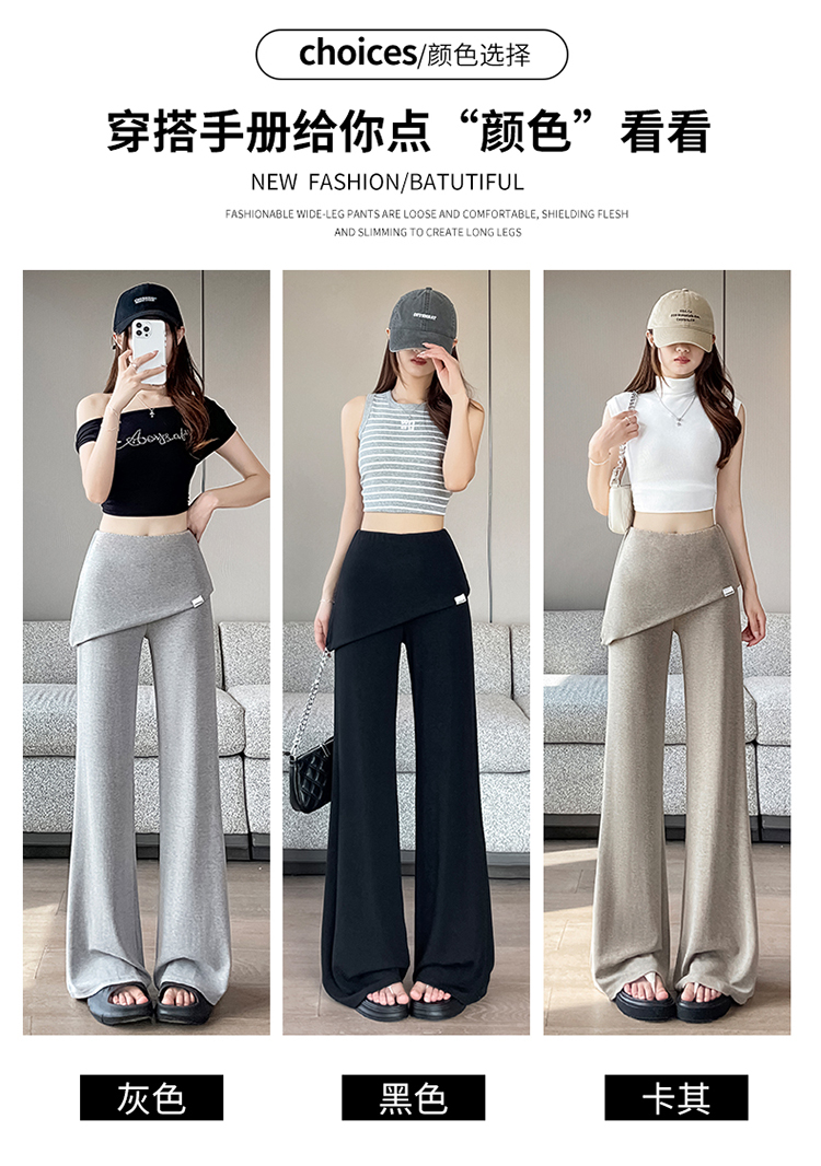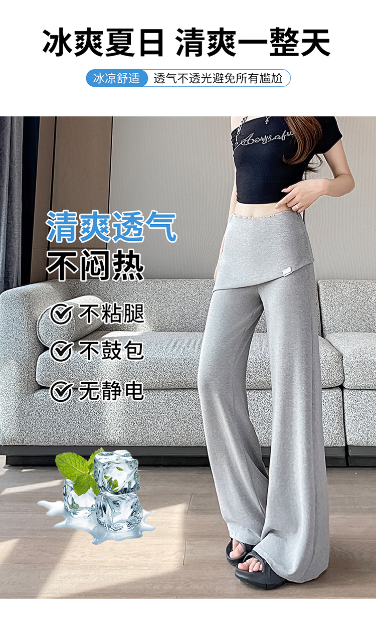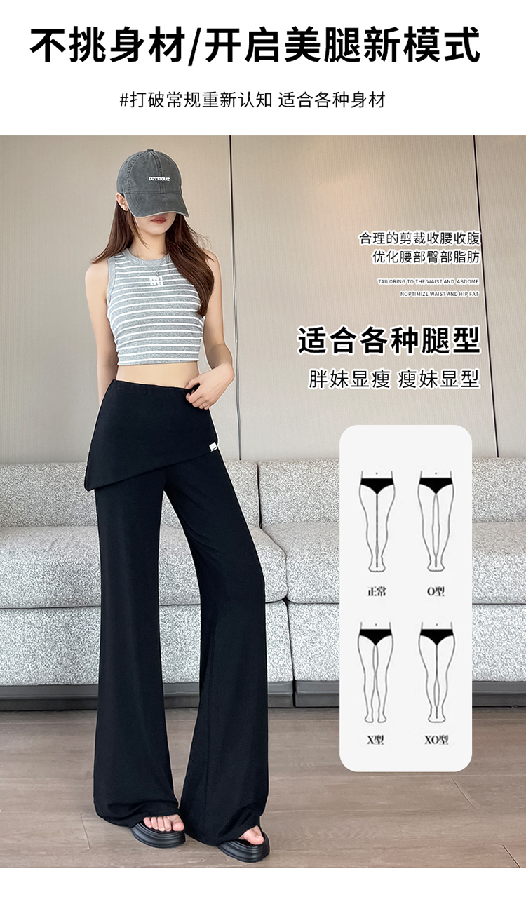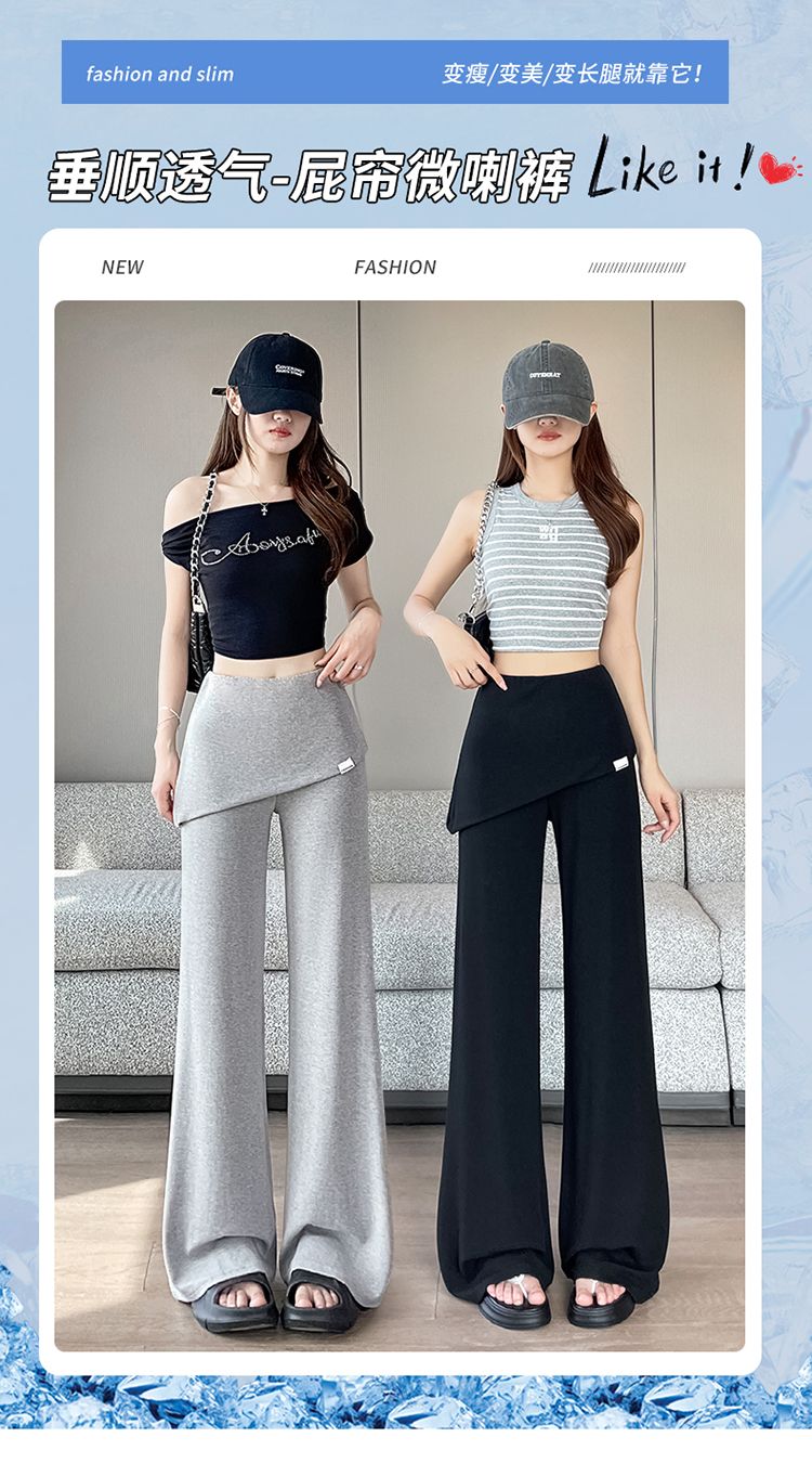 RY3060# 实拍赵露思同款假两件屁帘微辣裤女夏季高腰显瘦休闲运动喇叭裤