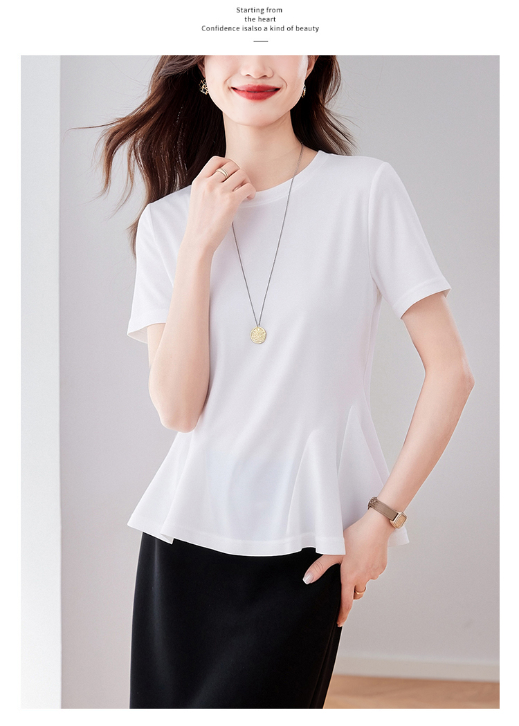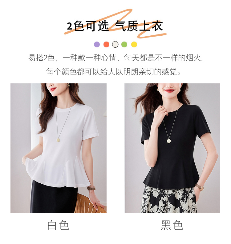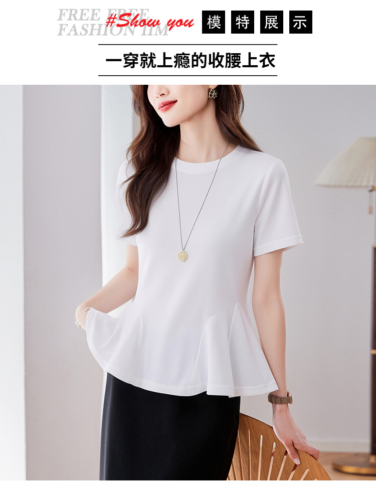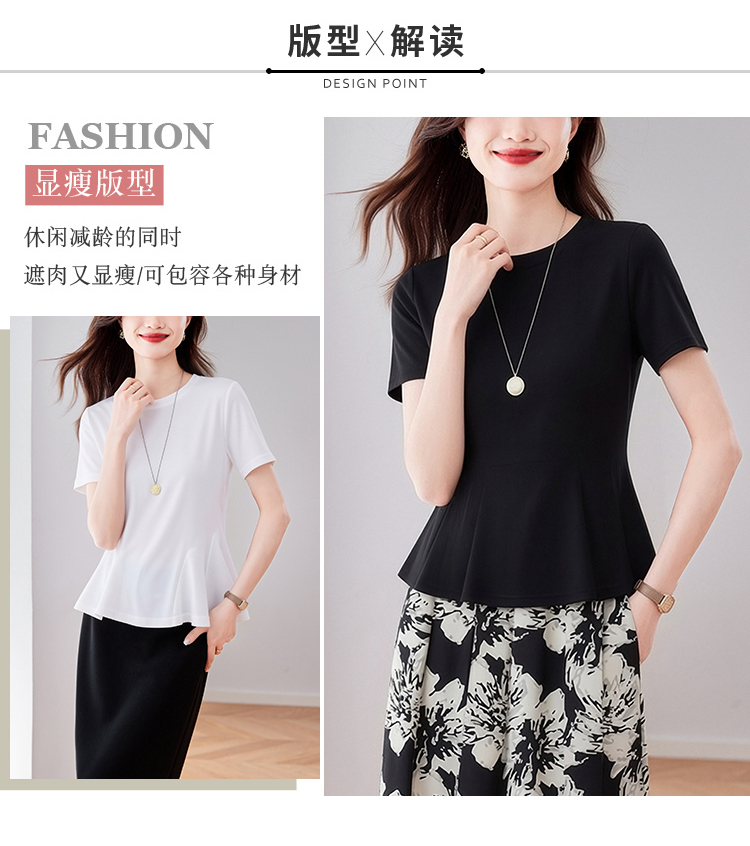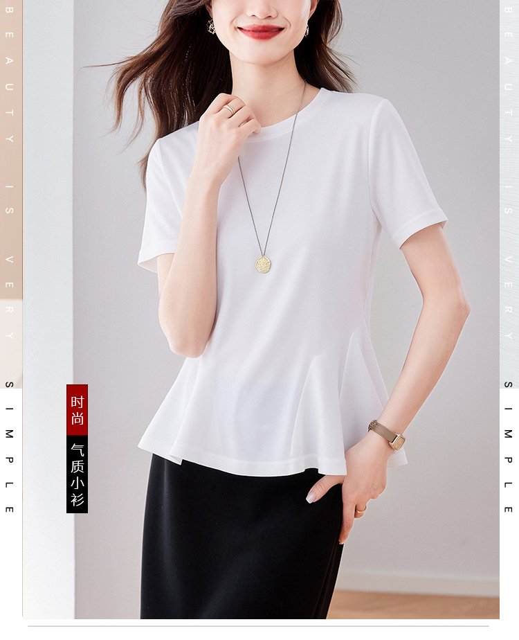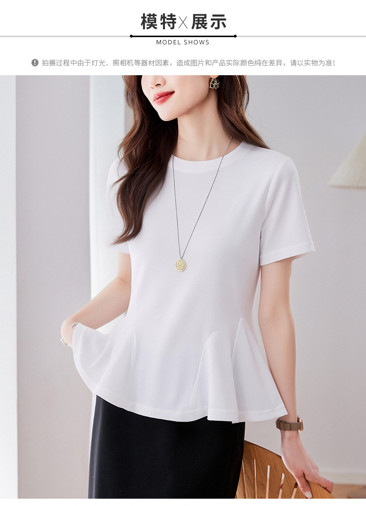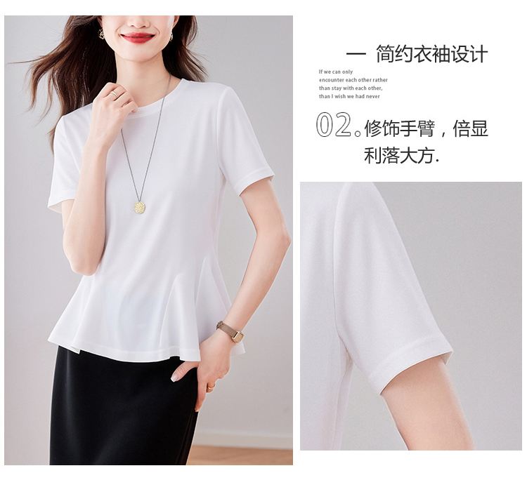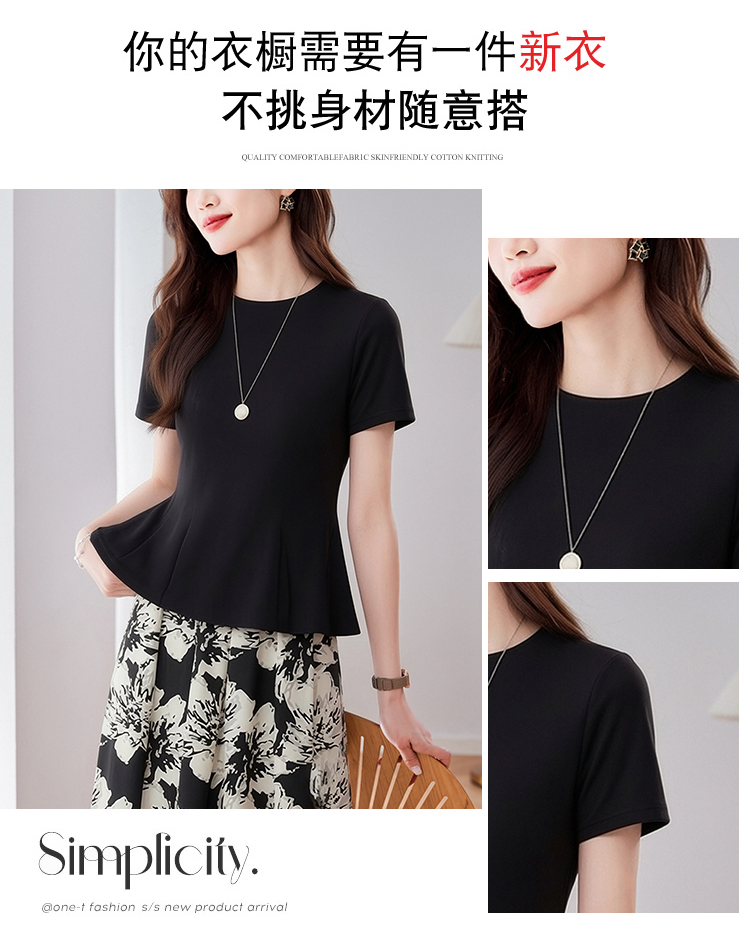 RY3063# 实拍夏季新品轻奢洋气圆领T恤女2026夏季新款女短袖上衣显瘦小衫