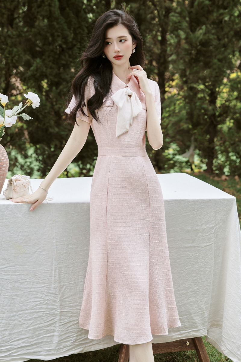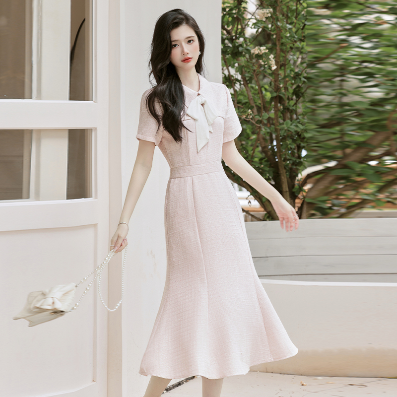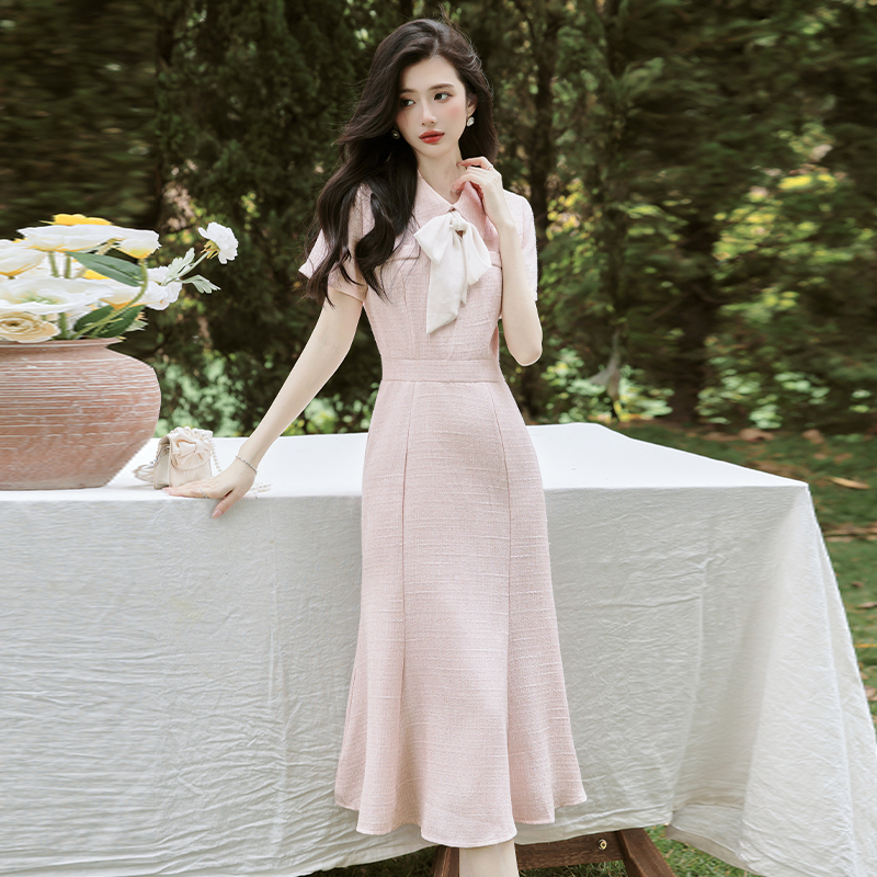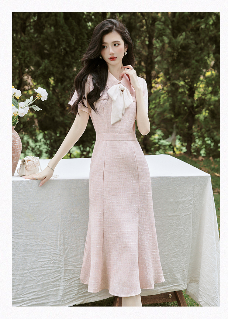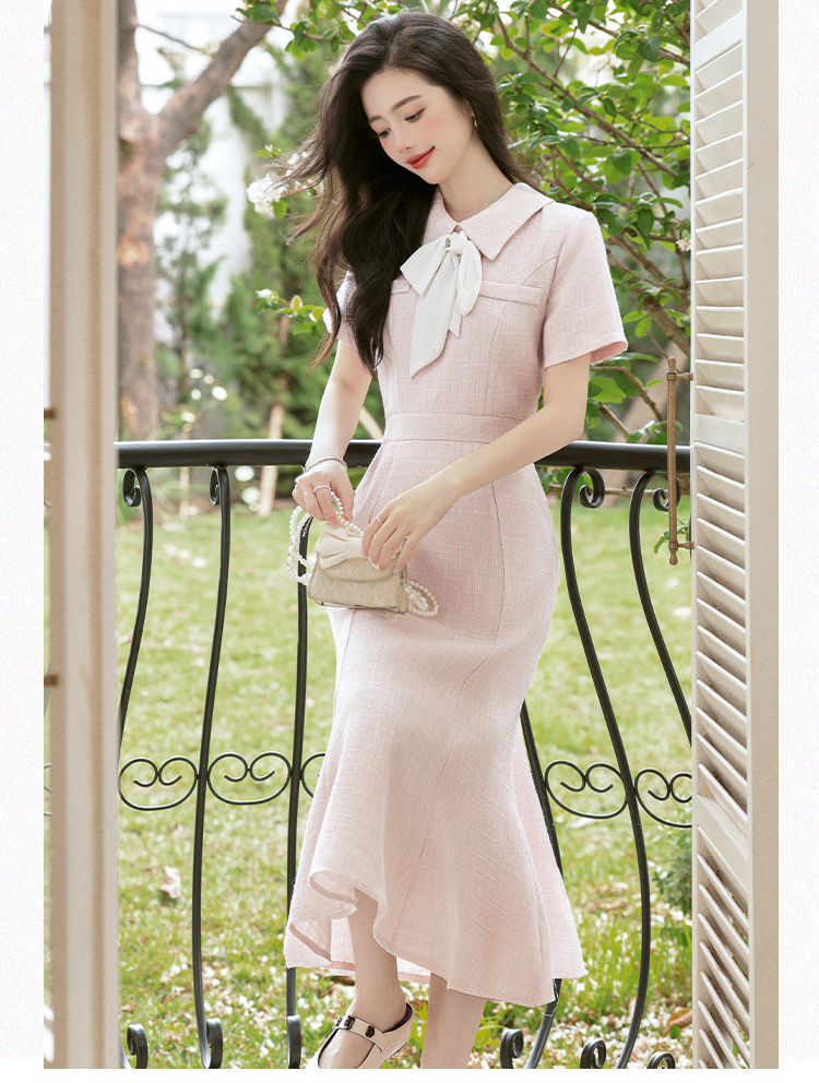 RY3089# 新款实拍 法式小香风s型细闪修身鱼尾连衣裙礼服+40