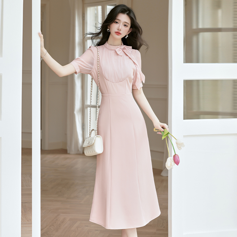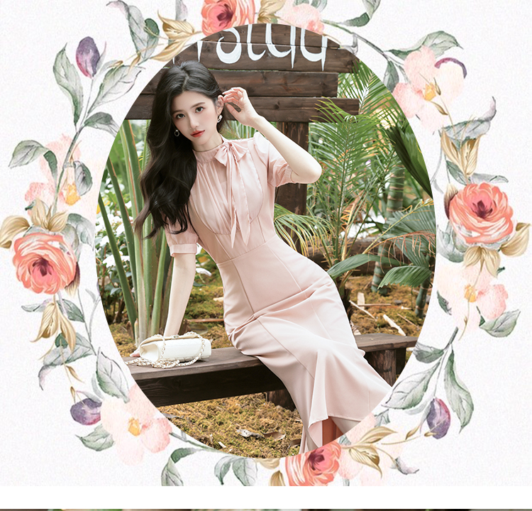 RY3090# 新款实拍 夏季法式温柔风粉色绝美鱼尾裙+40