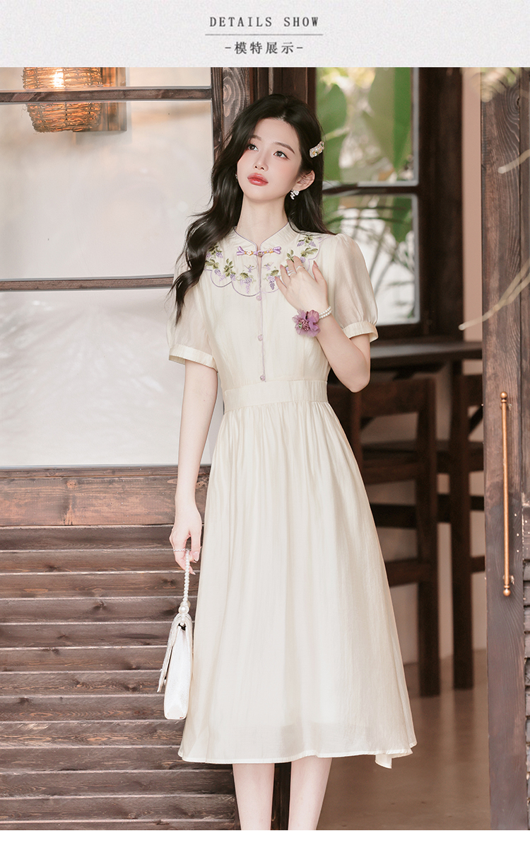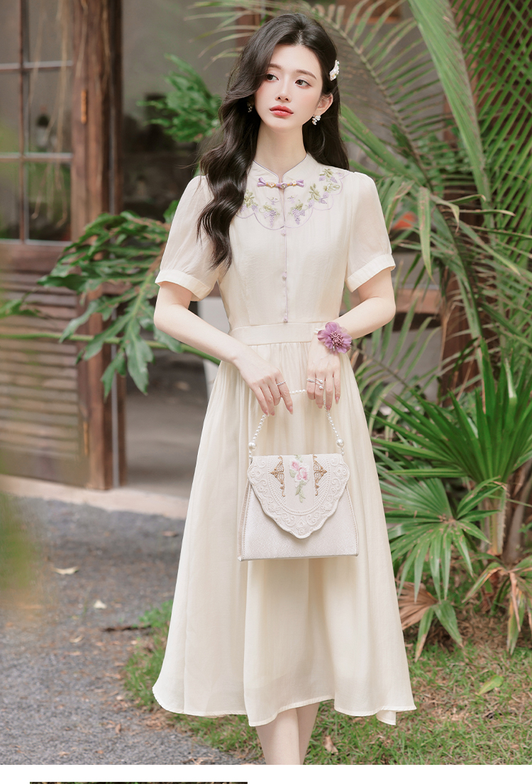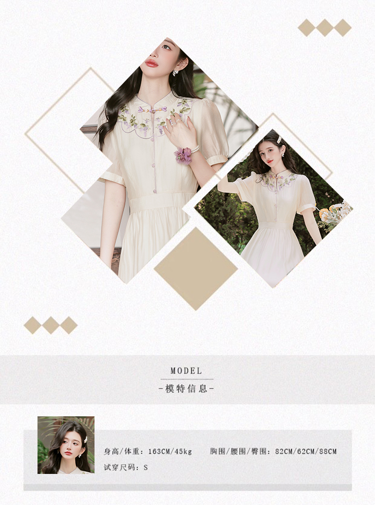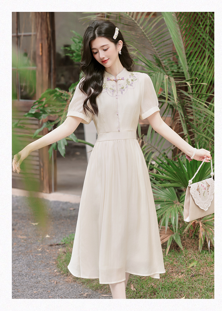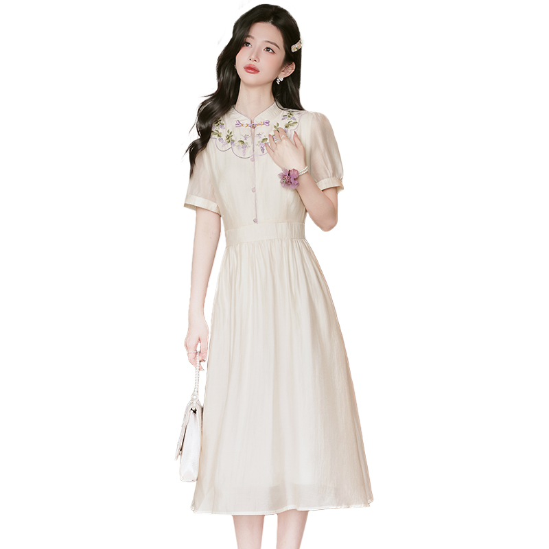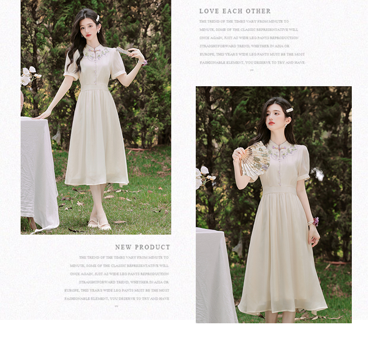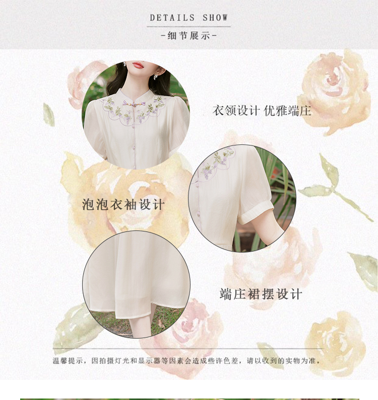 RY3091# 新款实拍 夏季新中式穿搭刺绣盘扣显瘦连衣裙+40