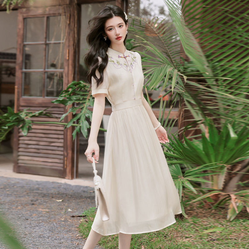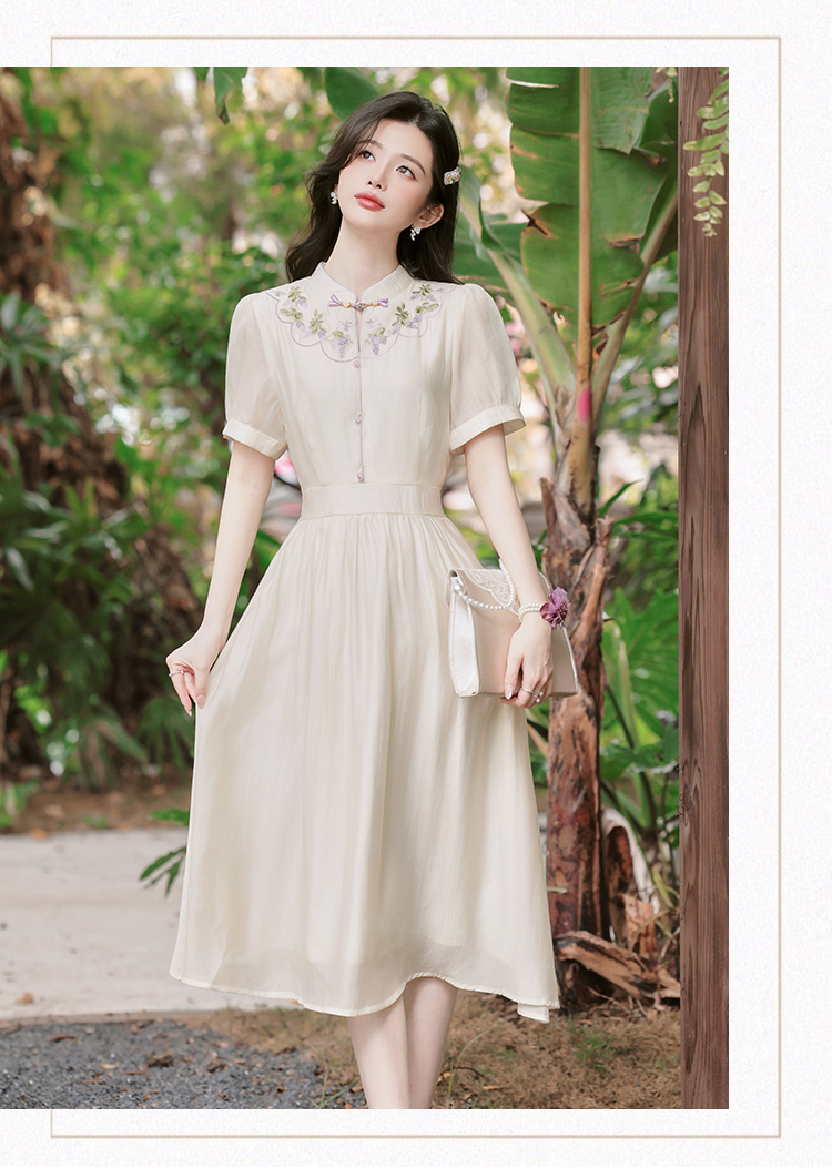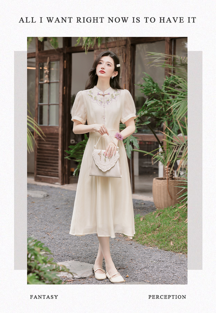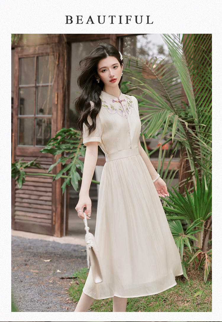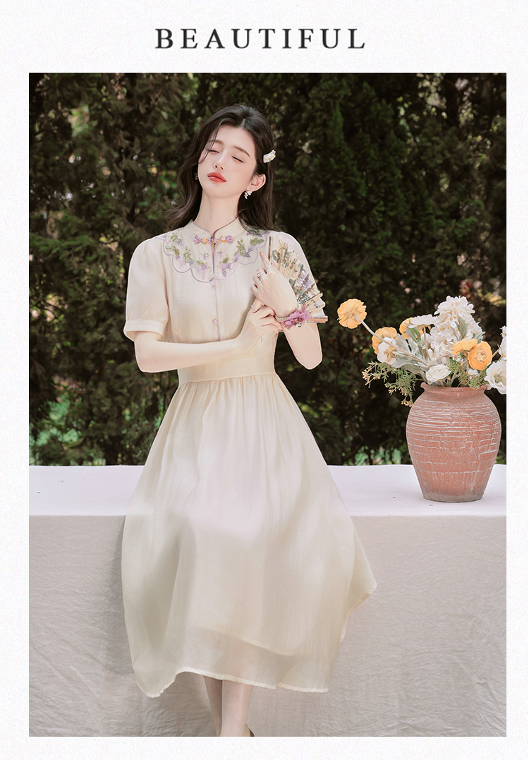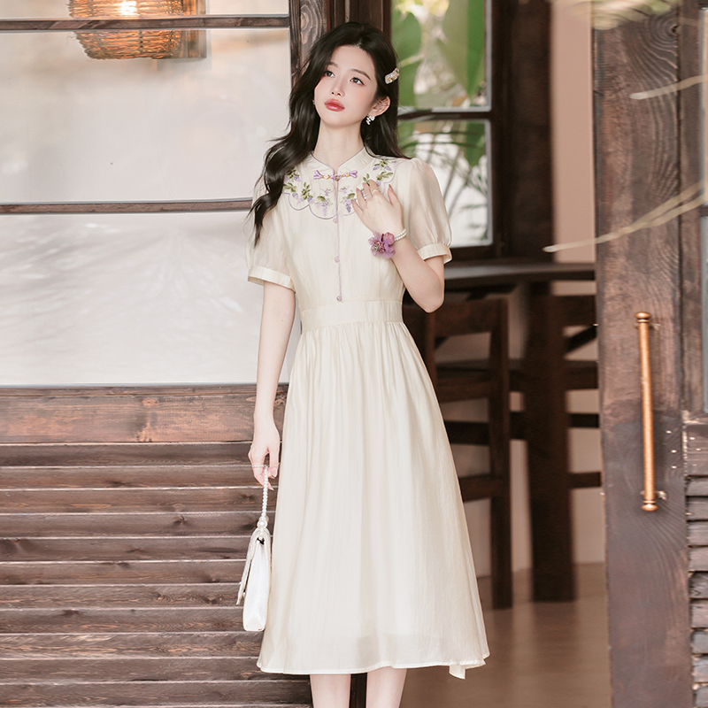RY3091# 新款实拍 夏季新中式穿搭刺绣盘扣显瘦连衣裙+40