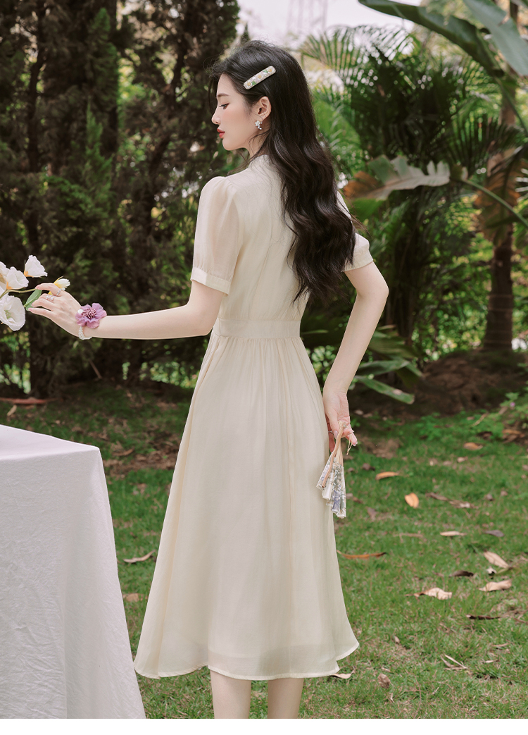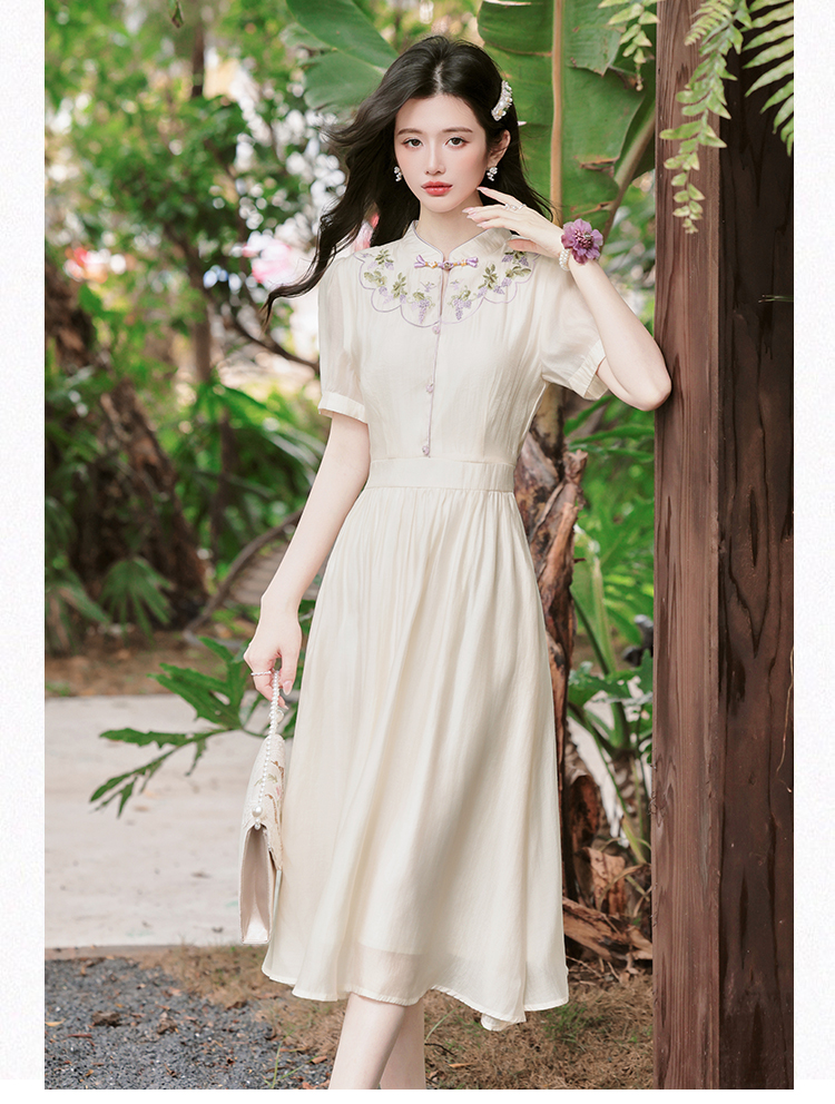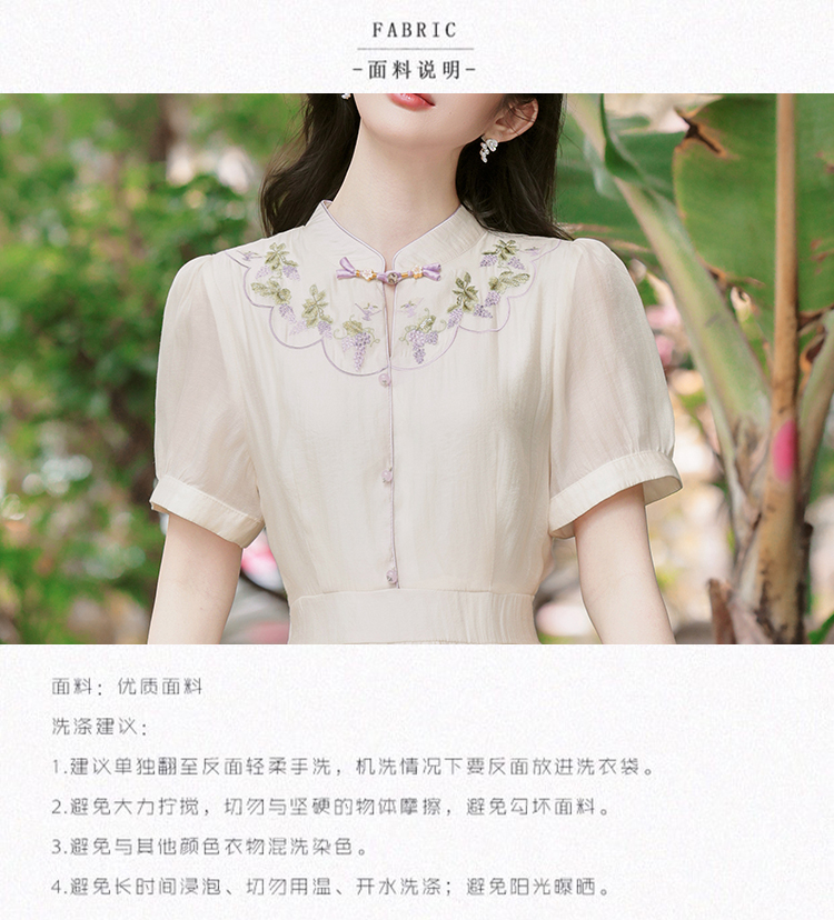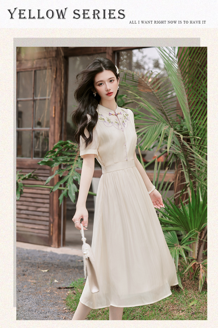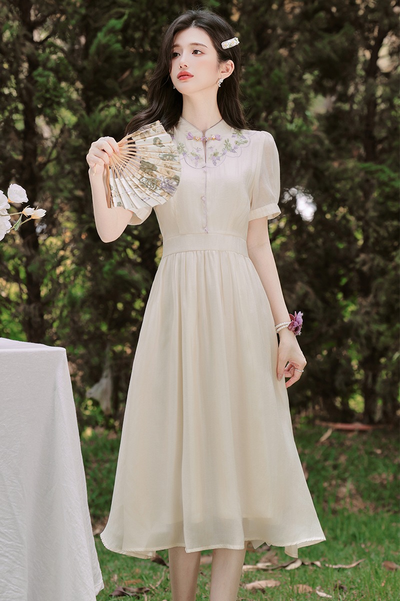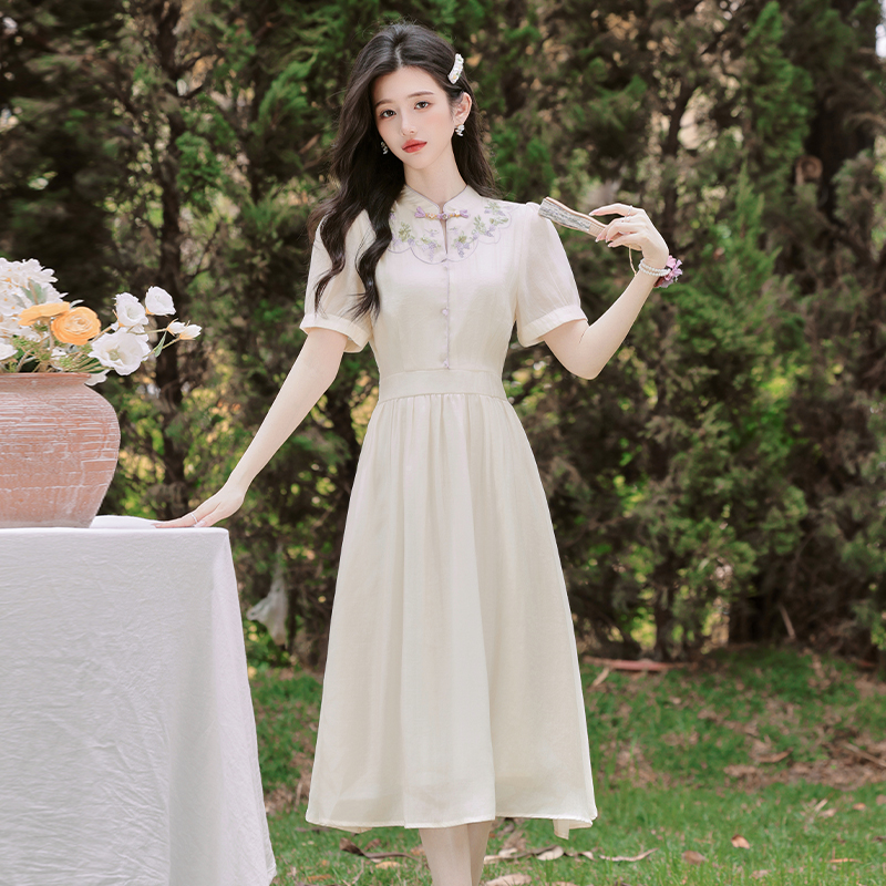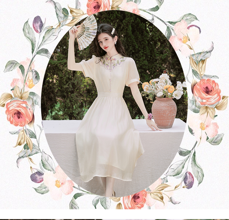 RY3091# 新款实拍 夏季新中式穿搭刺绣盘扣显瘦连衣裙+40
