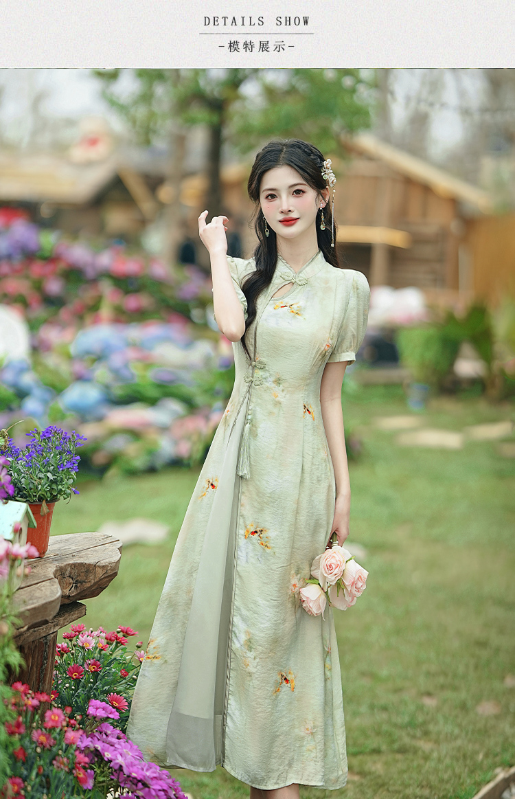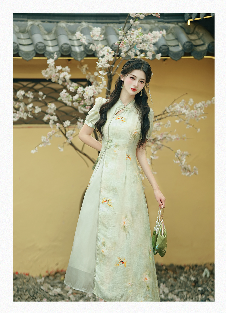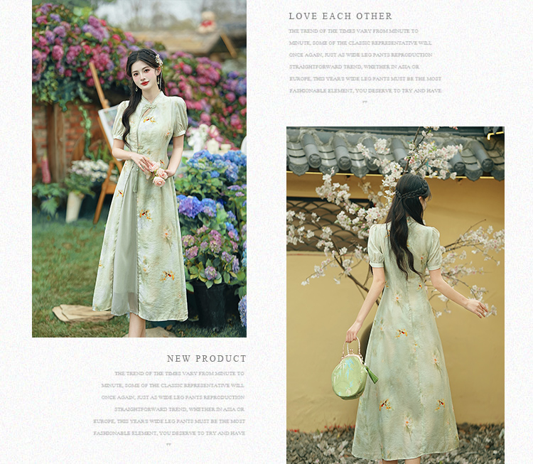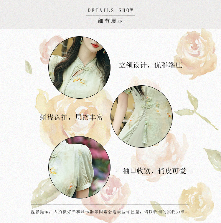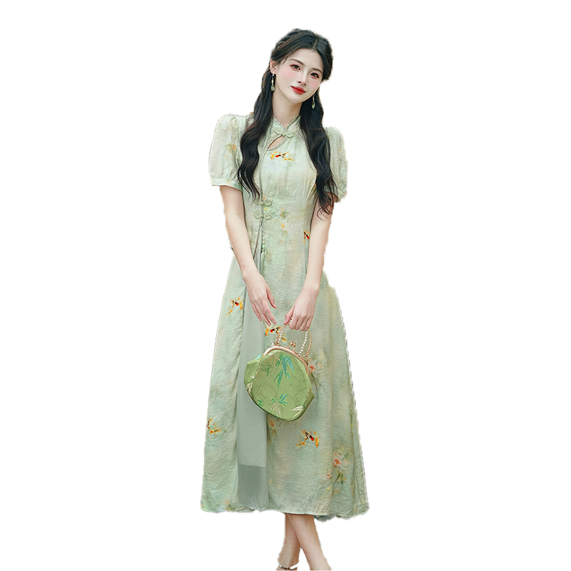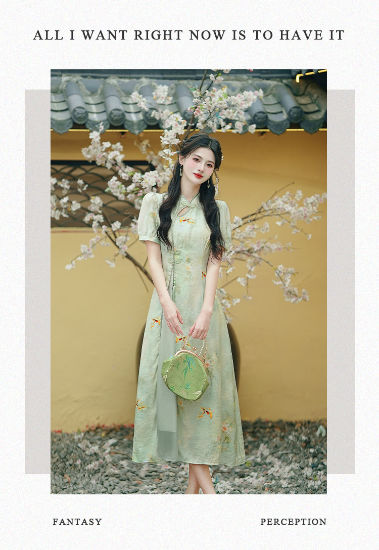 RY3096# 新款实拍 新中式复古印花收腰气质显瘦改良旗袍连衣裙+40