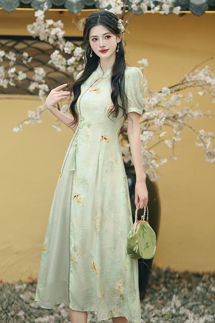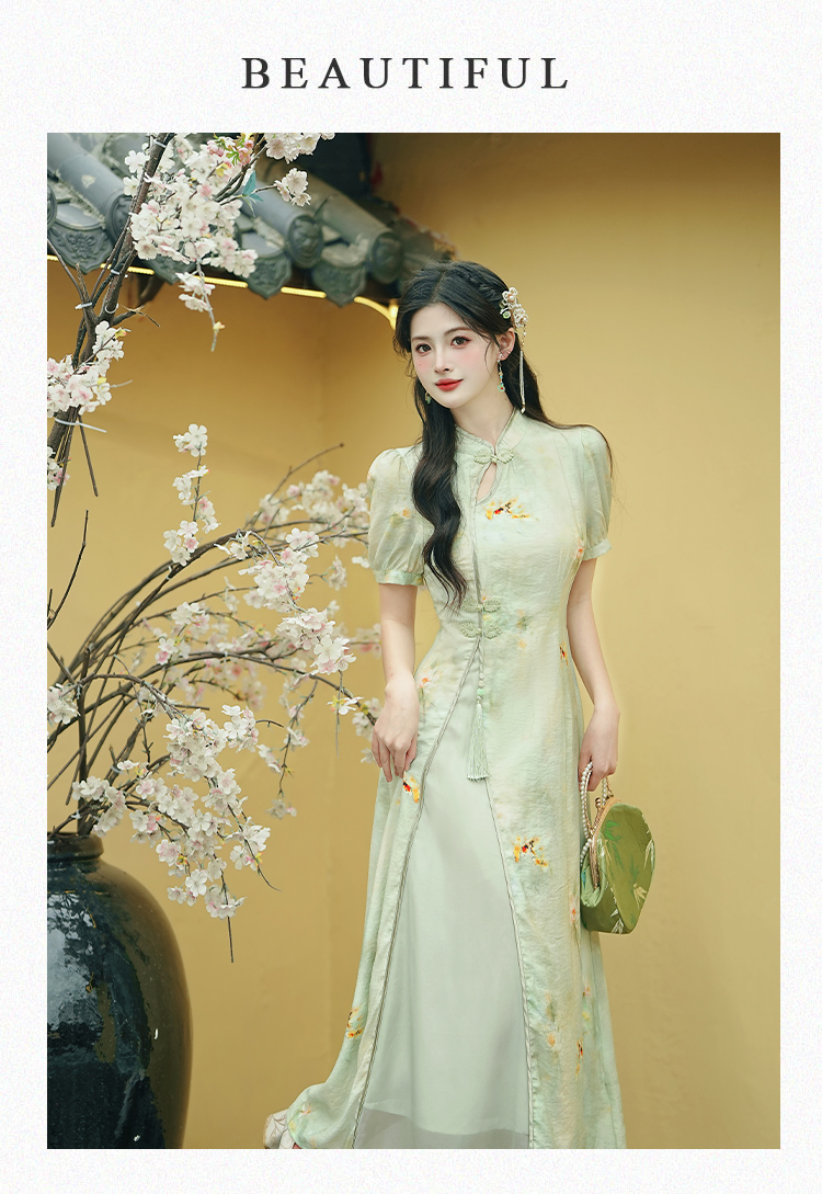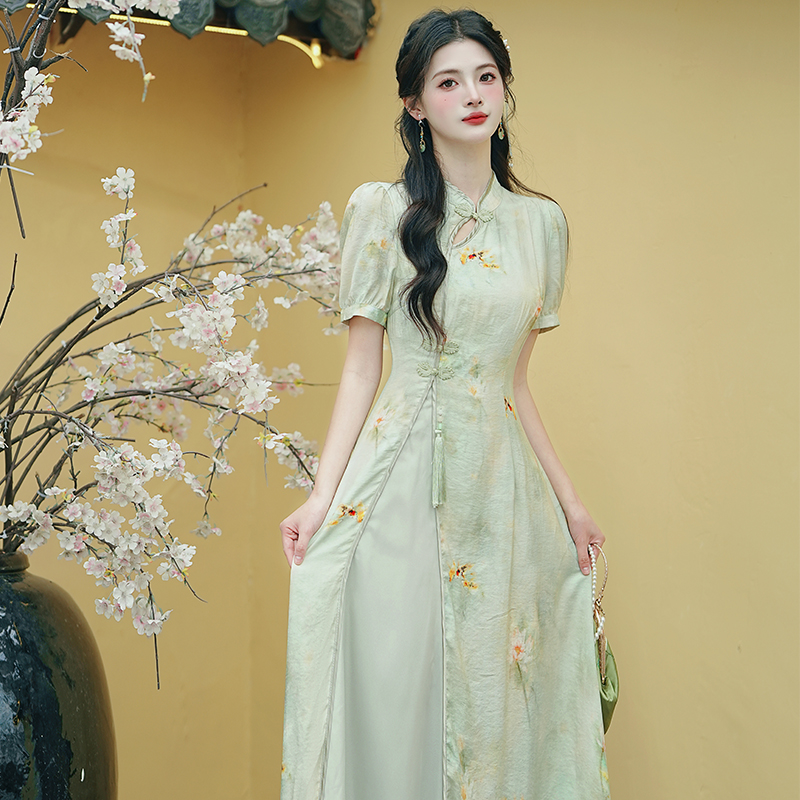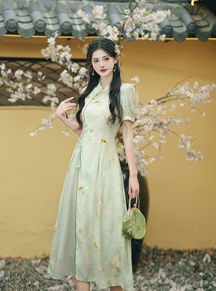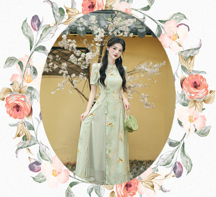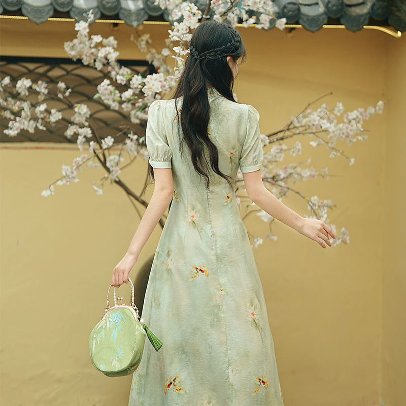 RY3096# 新款实拍 新中式复古印花收腰气质显瘦改良旗袍连衣裙+40
