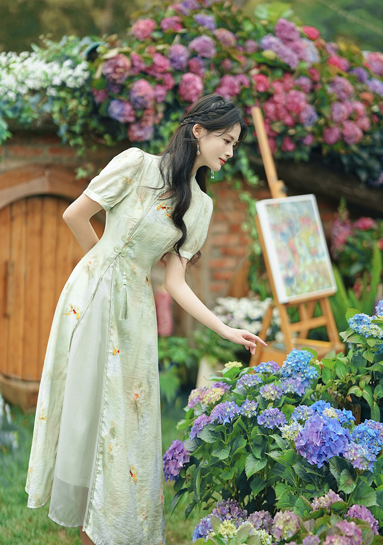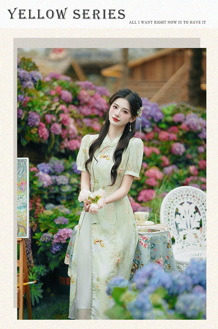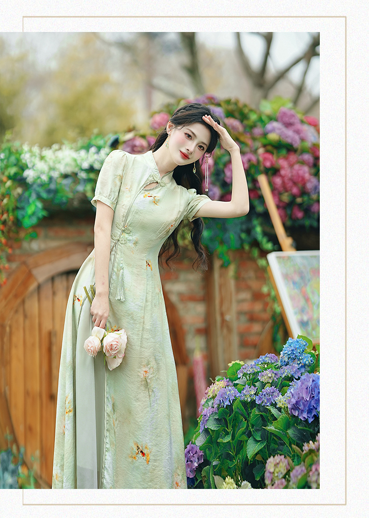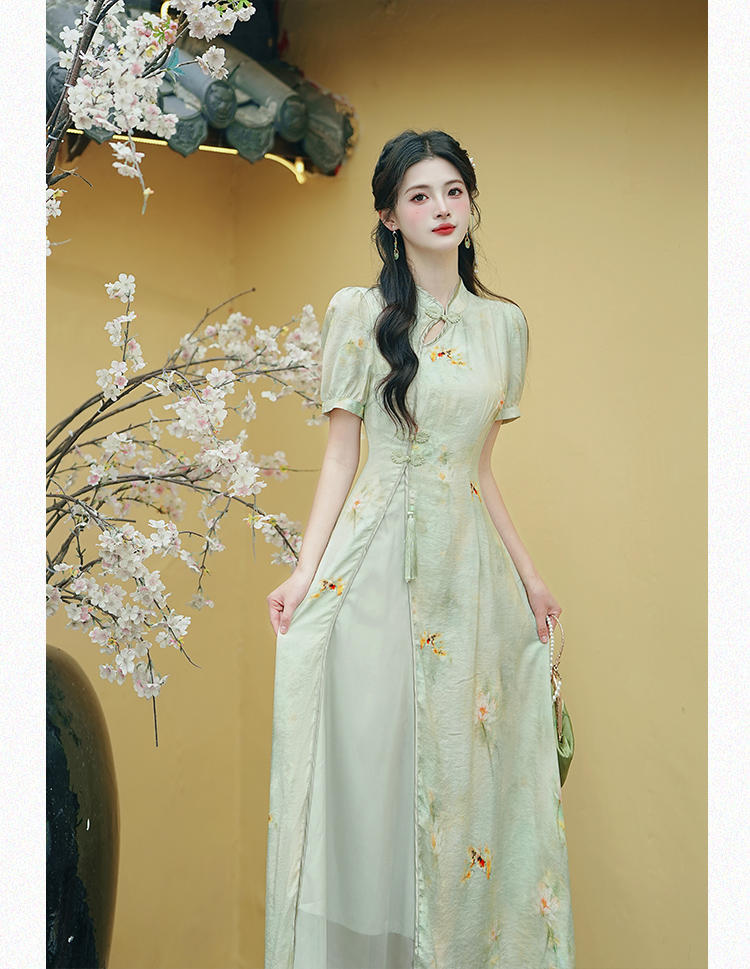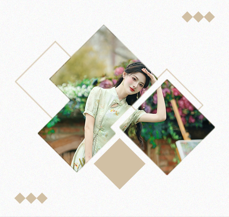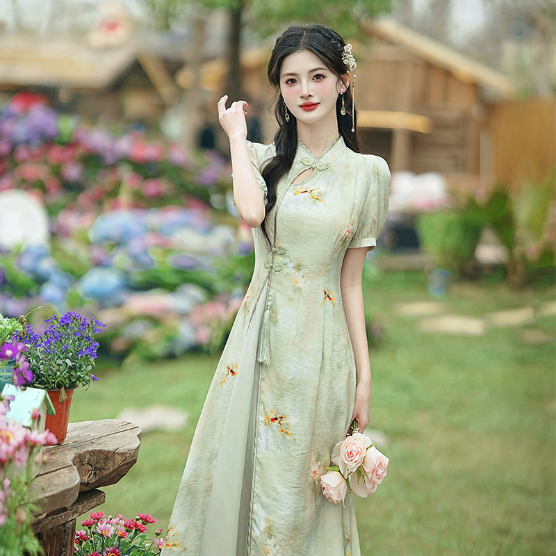 RY3096# 新款实拍 新中式复古印花收腰气质显瘦改良旗袍连衣裙+40