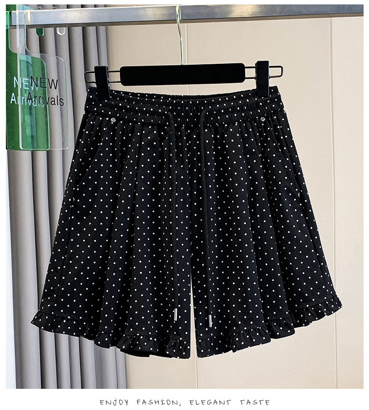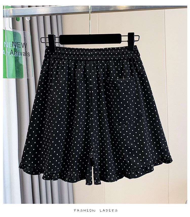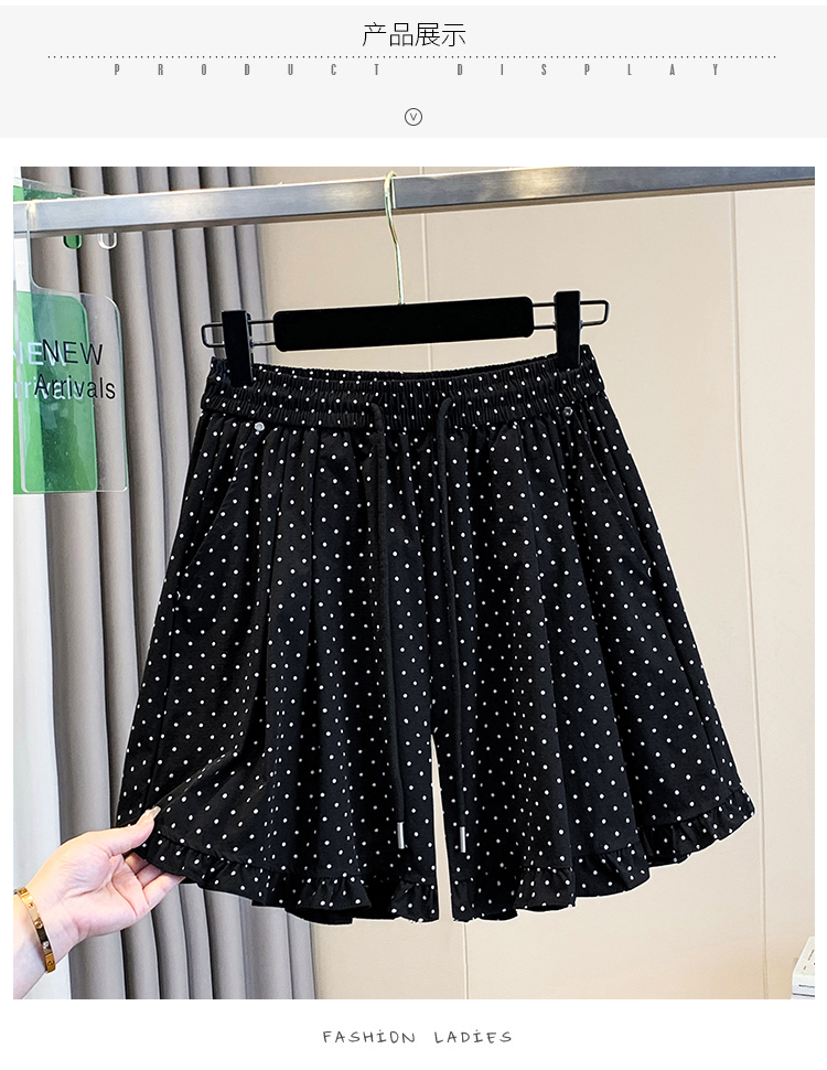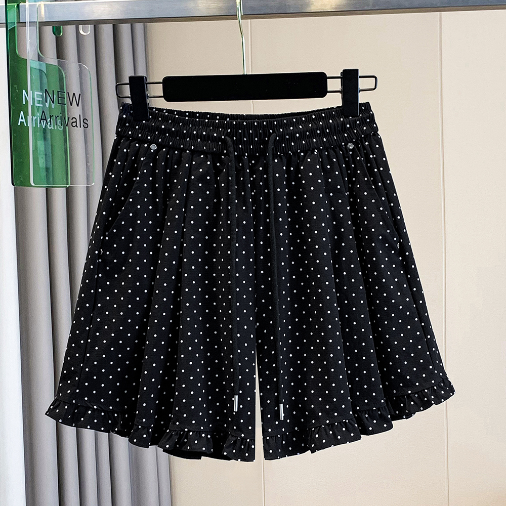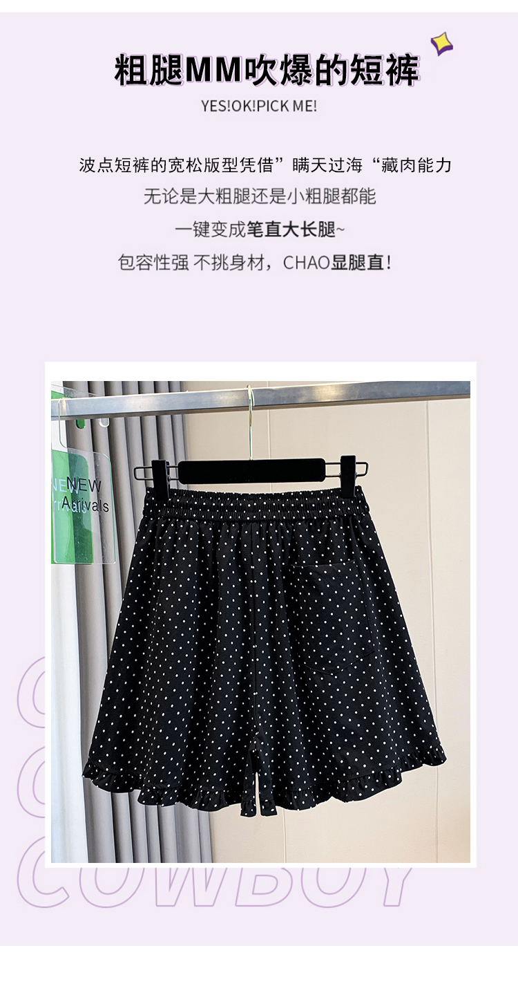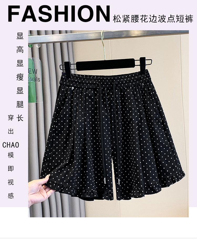 RY3098# 实拍大码木耳花边波点休闲短裤女夏季新款胖妹妹高腰显瘦阔腿热裤