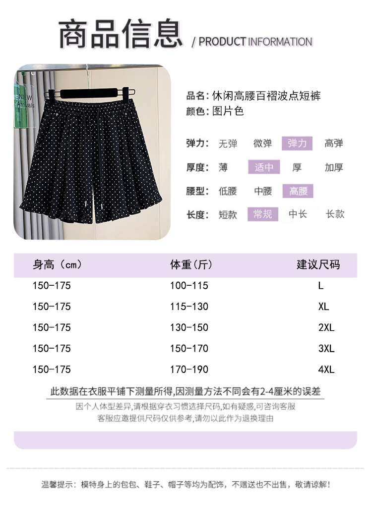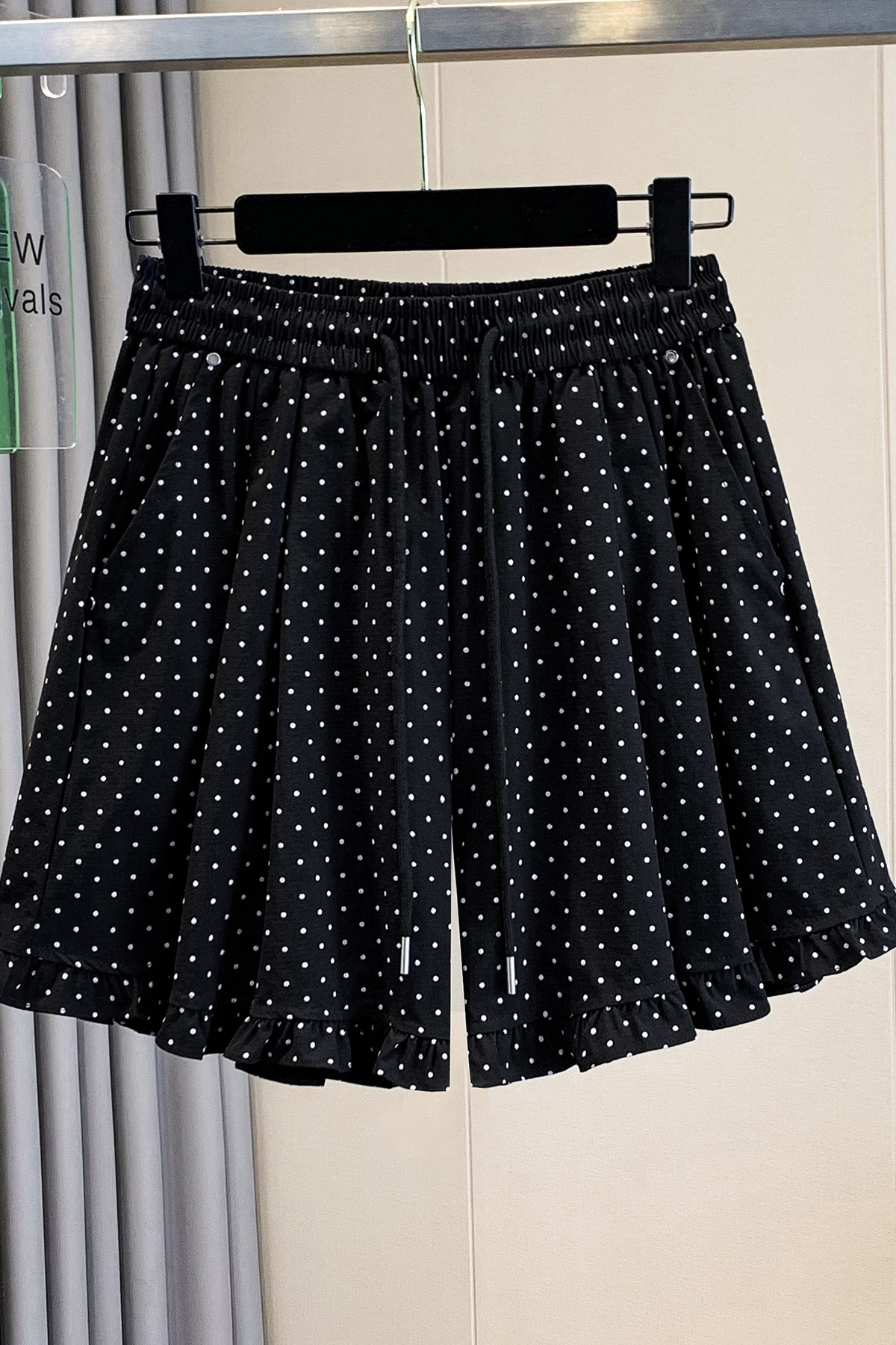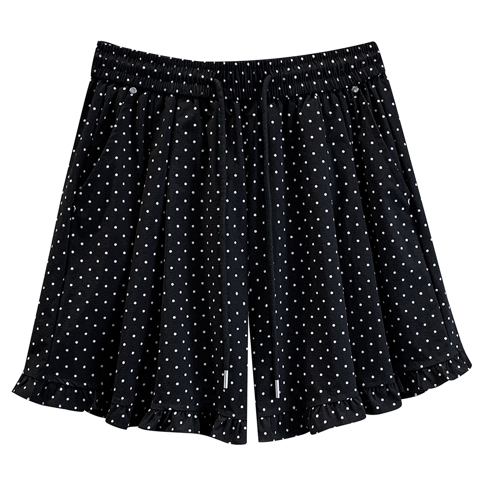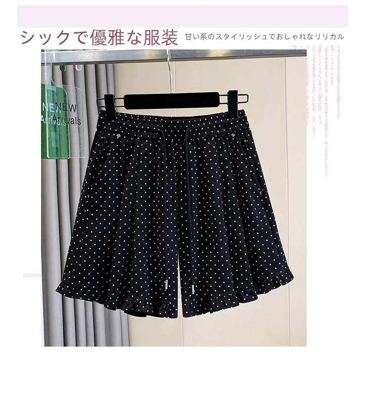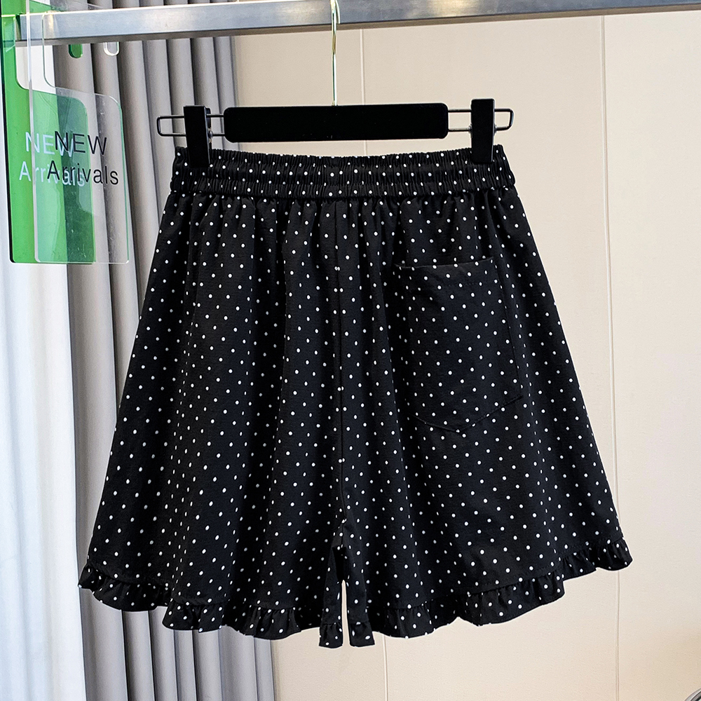 RY3098# 实拍大码木耳花边波点休闲短裤女夏季新款胖妹妹高腰显瘦阔腿热裤