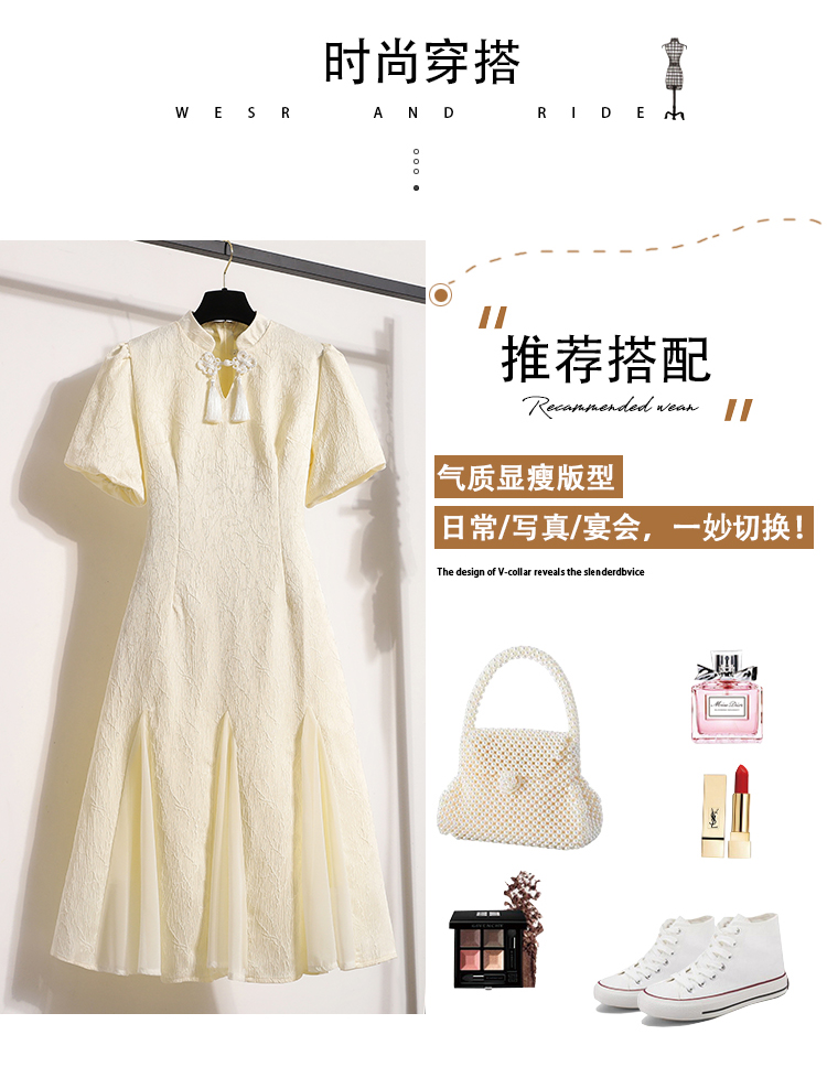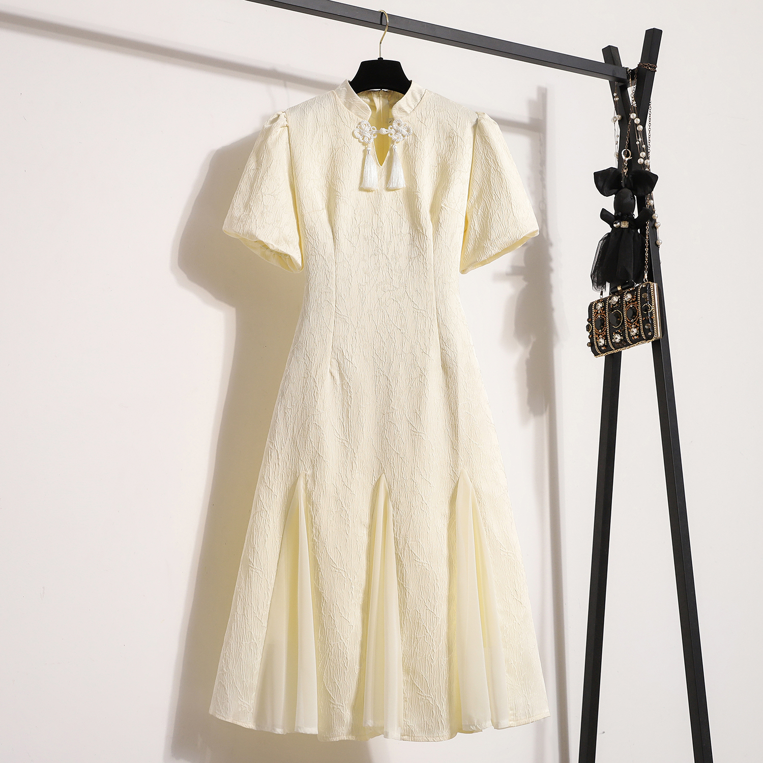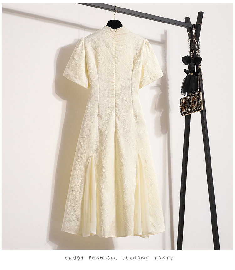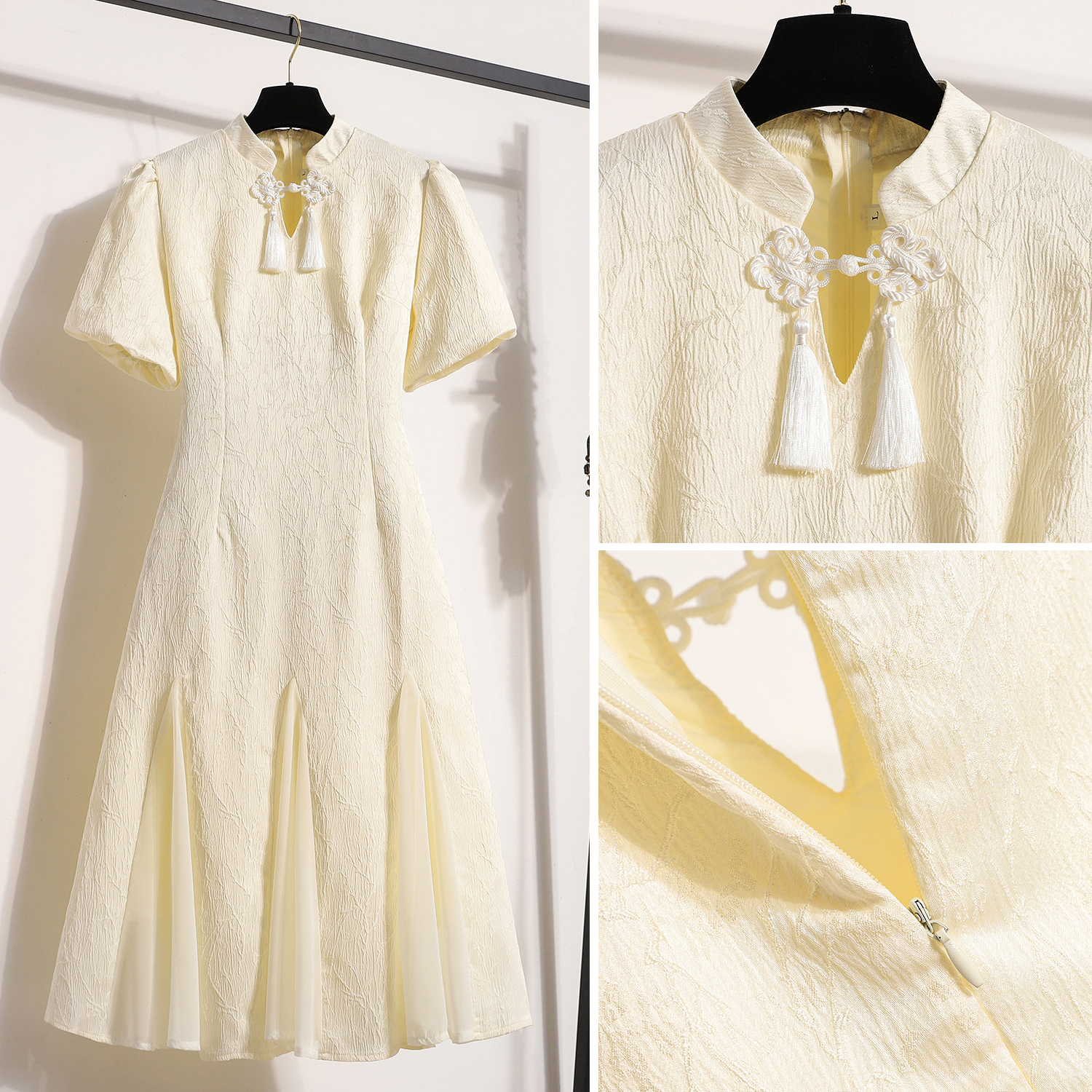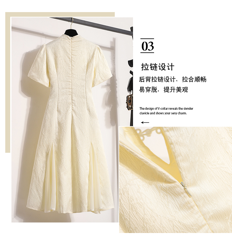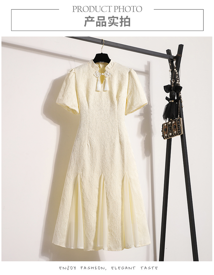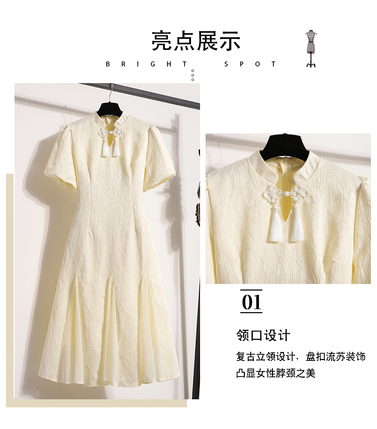 RY3100# 实拍大码新中式国风连衣裙夏季微胖mm显瘦复古改良网纱拼接裙子