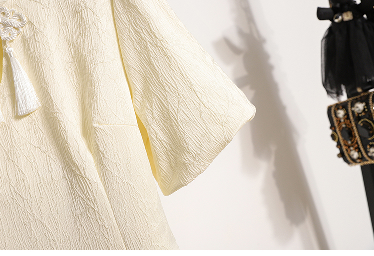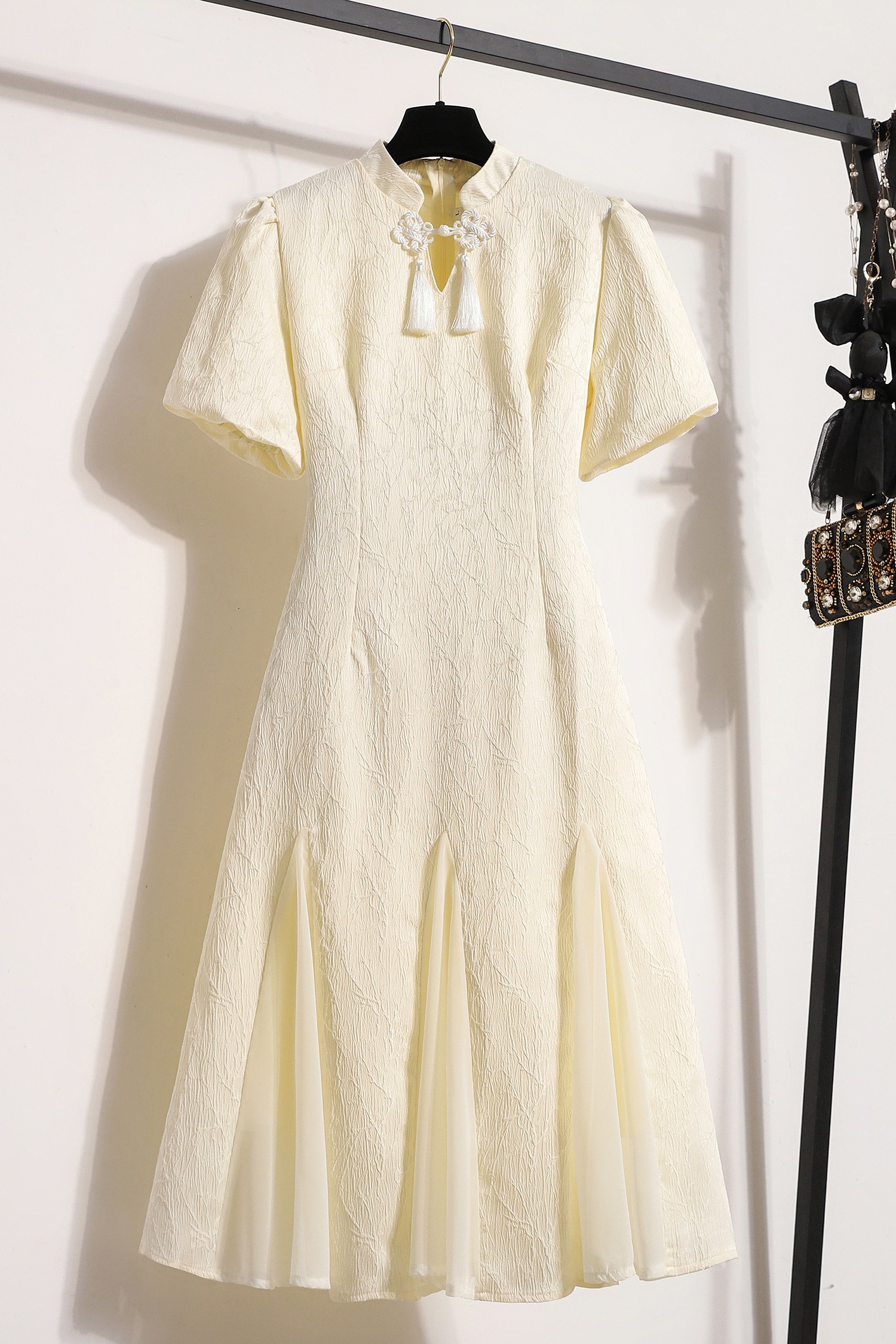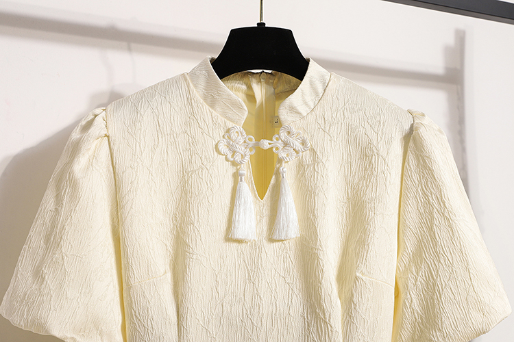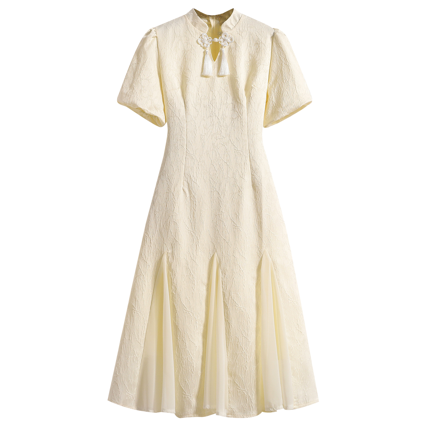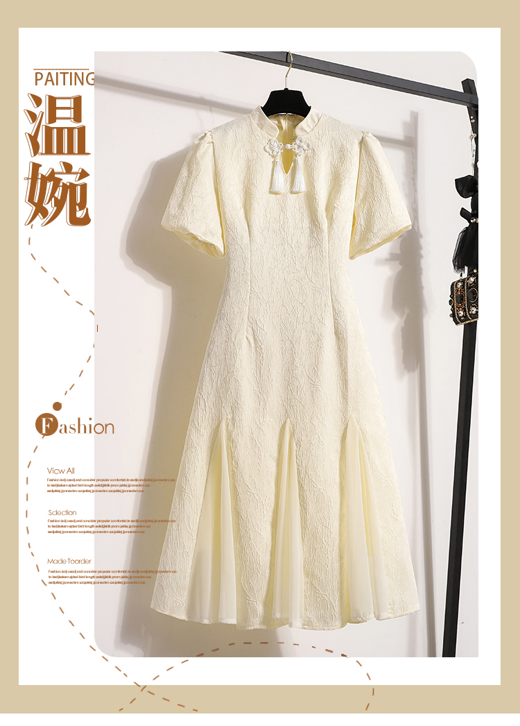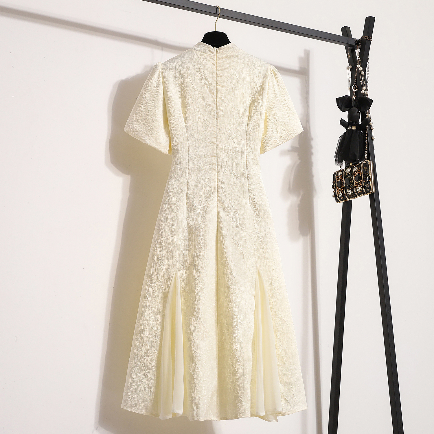 RY3100# 实拍大码新中式国风连衣裙夏季微胖mm显瘦复古改良网纱拼接裙子