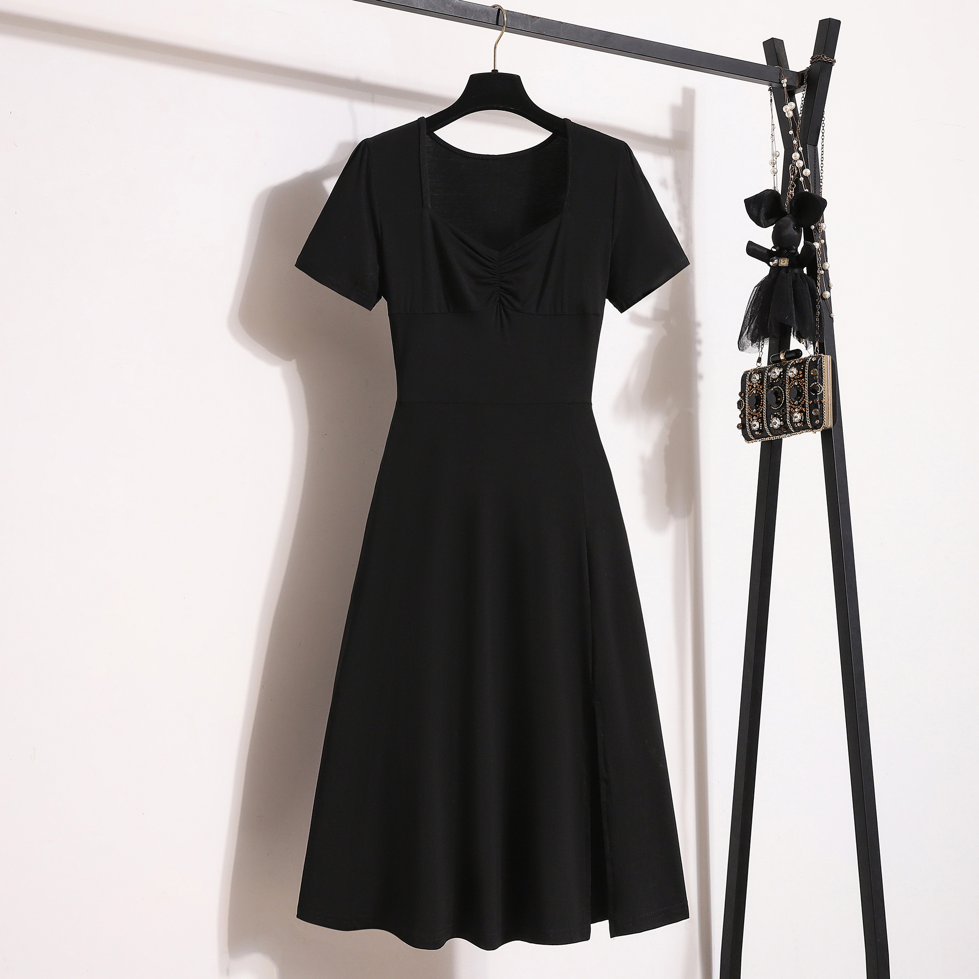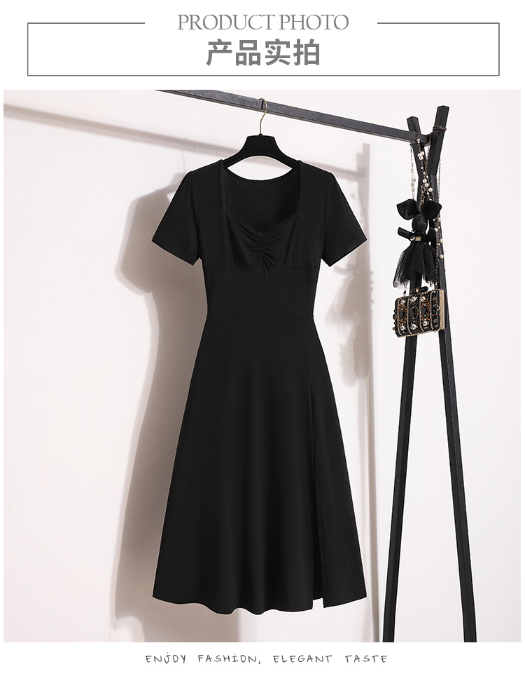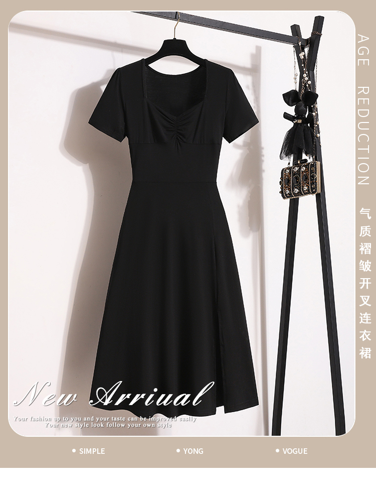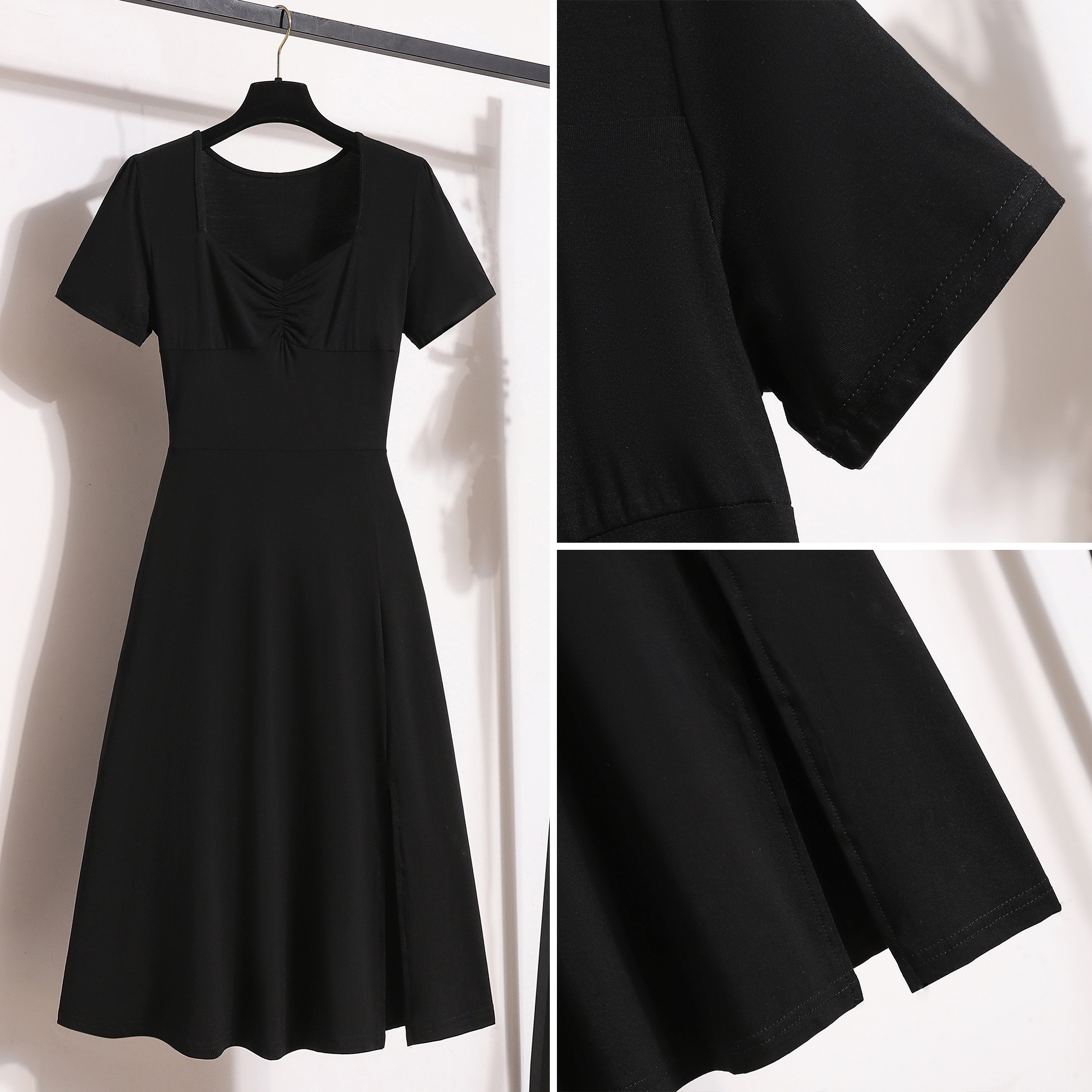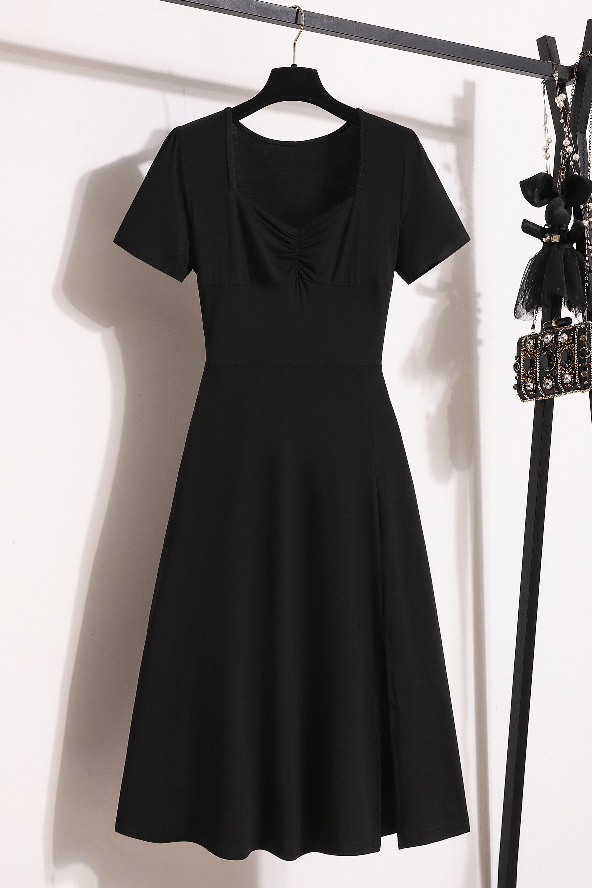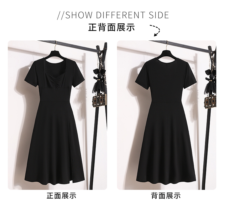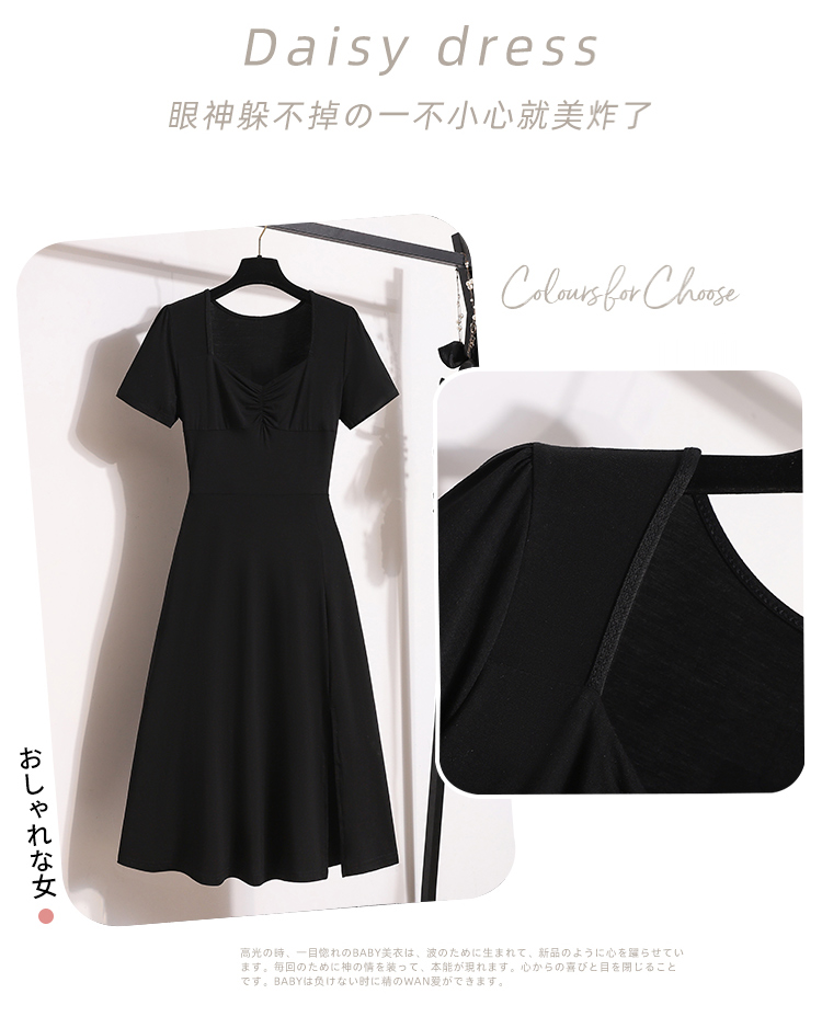 RY3101# 实拍大码女胖mm法式赫本风方领短袖连衣裙2026夏季显瘦气质小黑裙