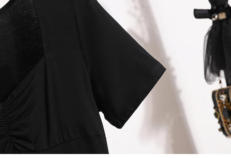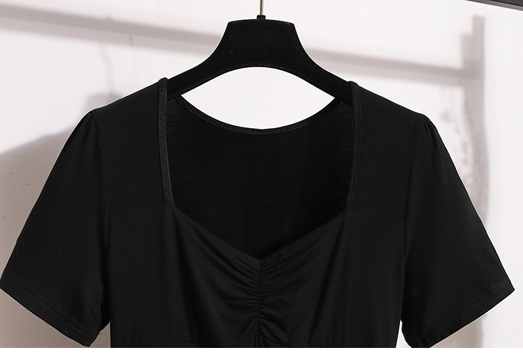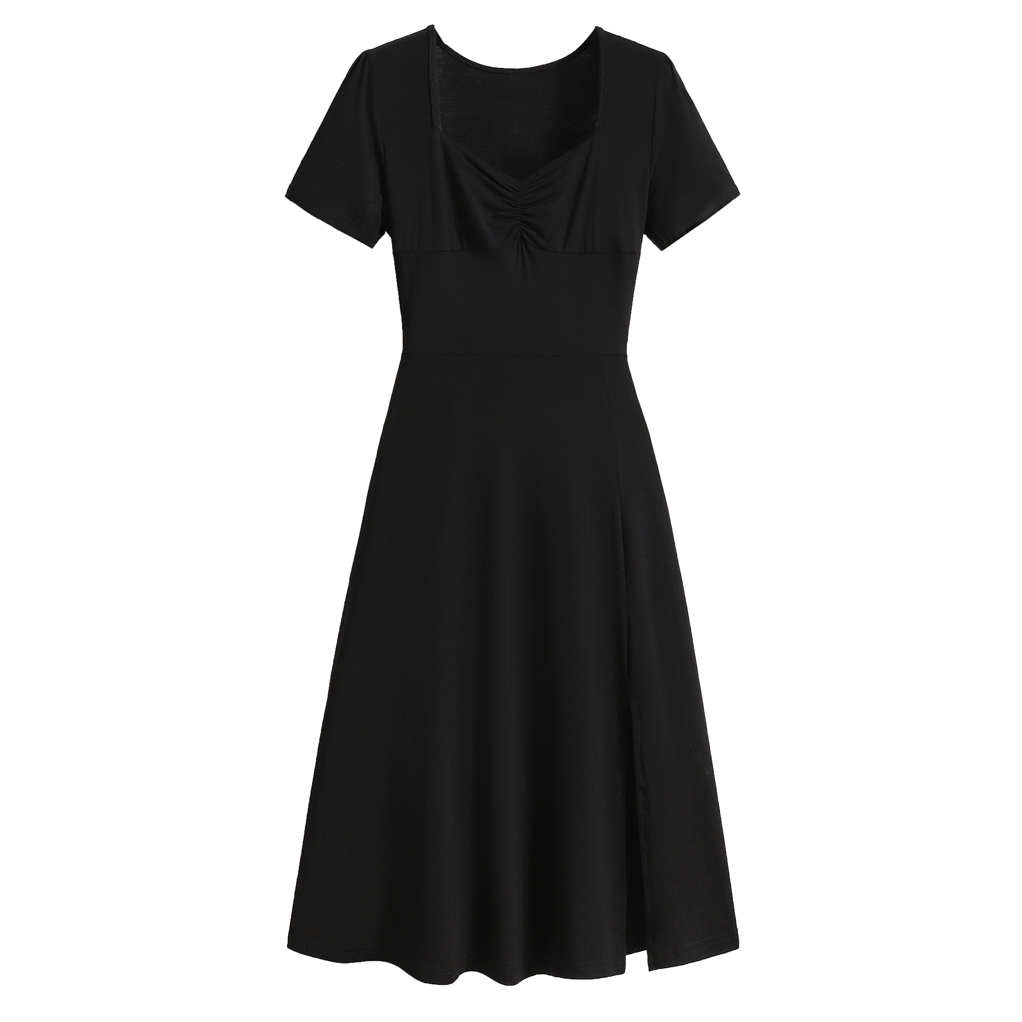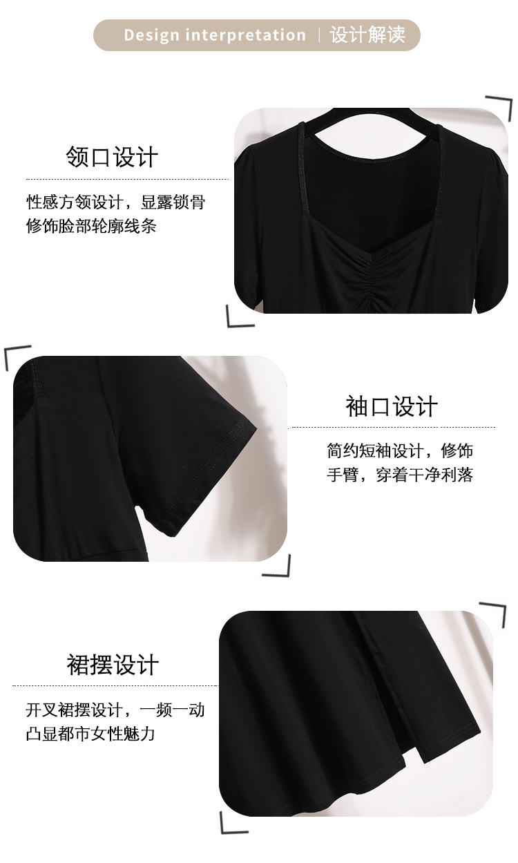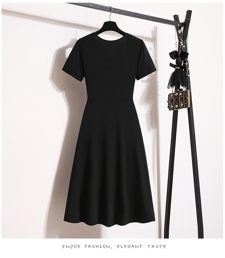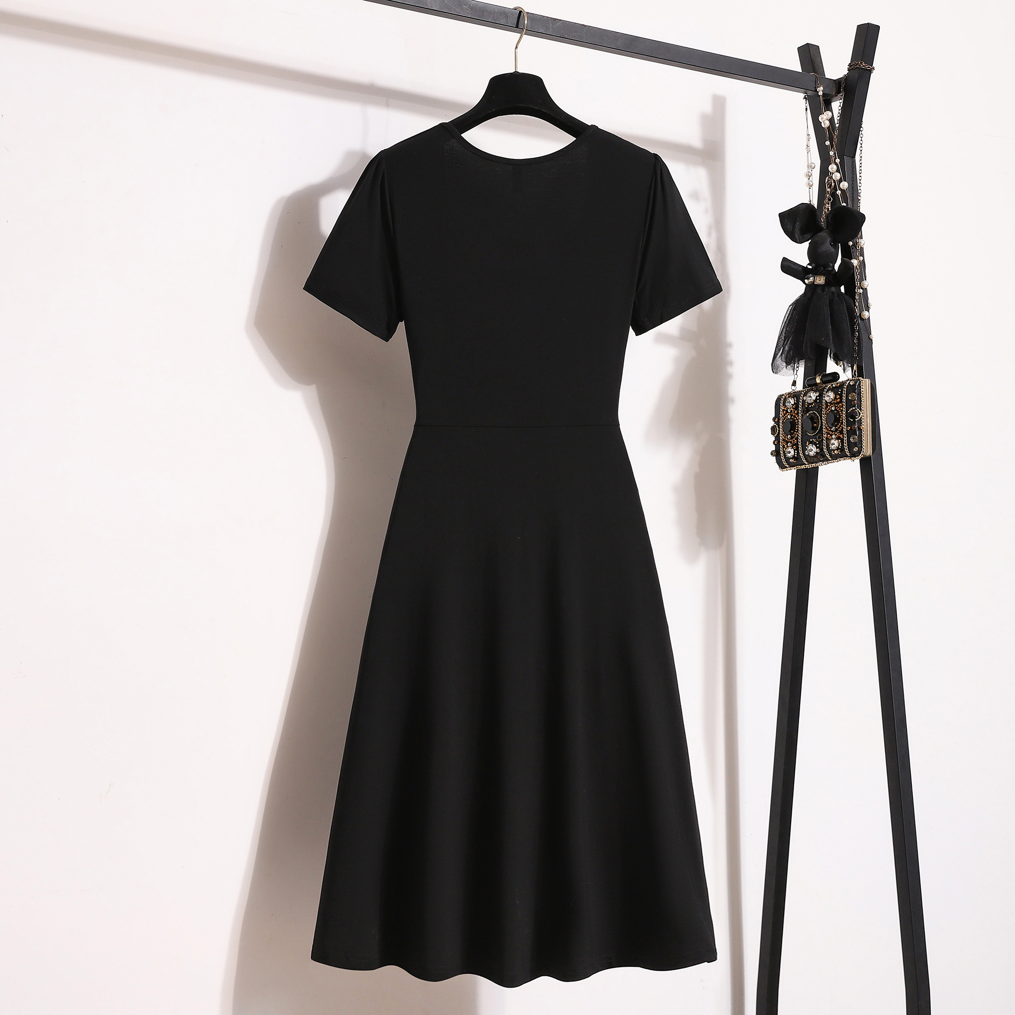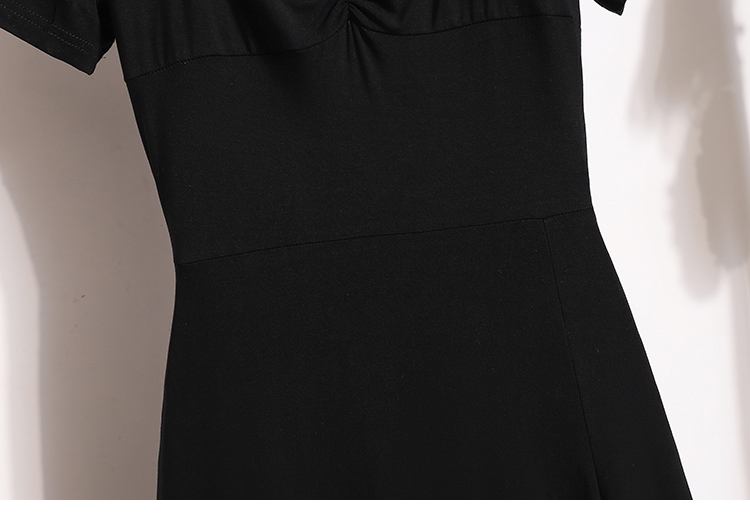 RY3101# 实拍大码女胖mm法式赫本风方领短袖连衣裙2026夏季显瘦气质小黑裙