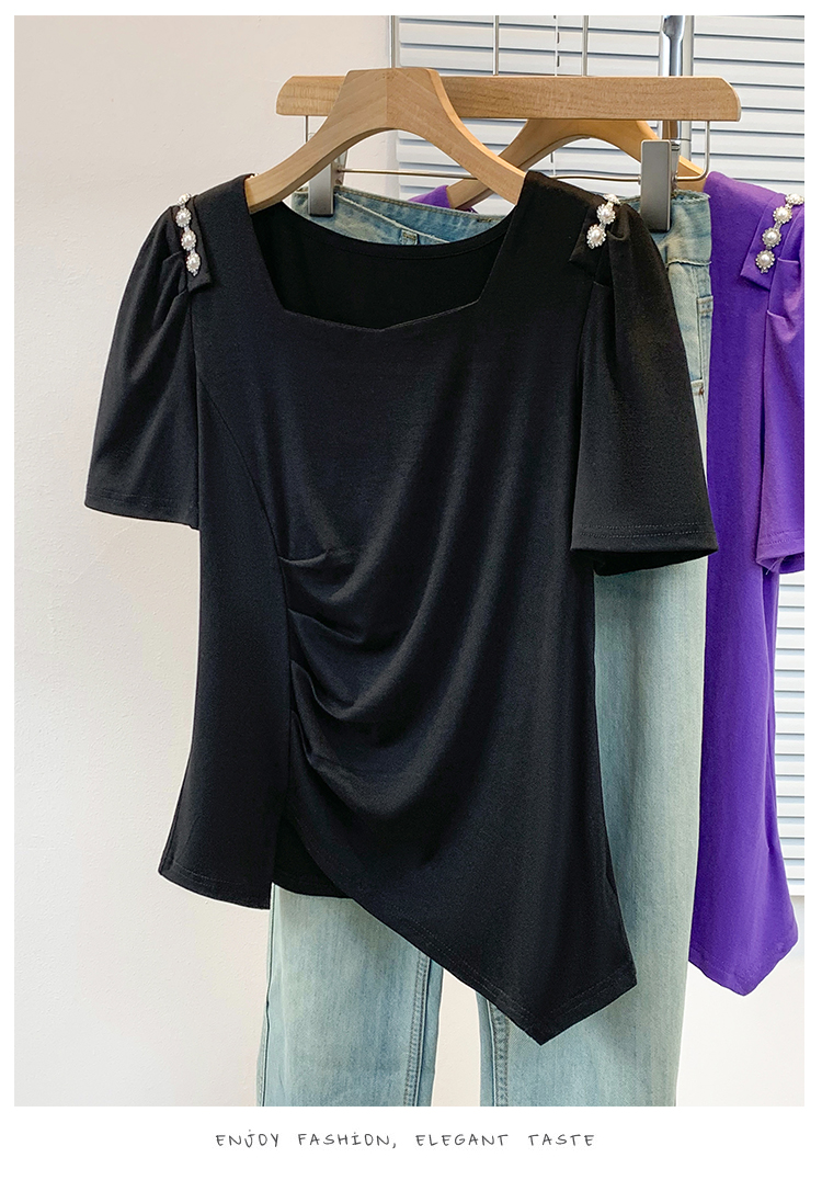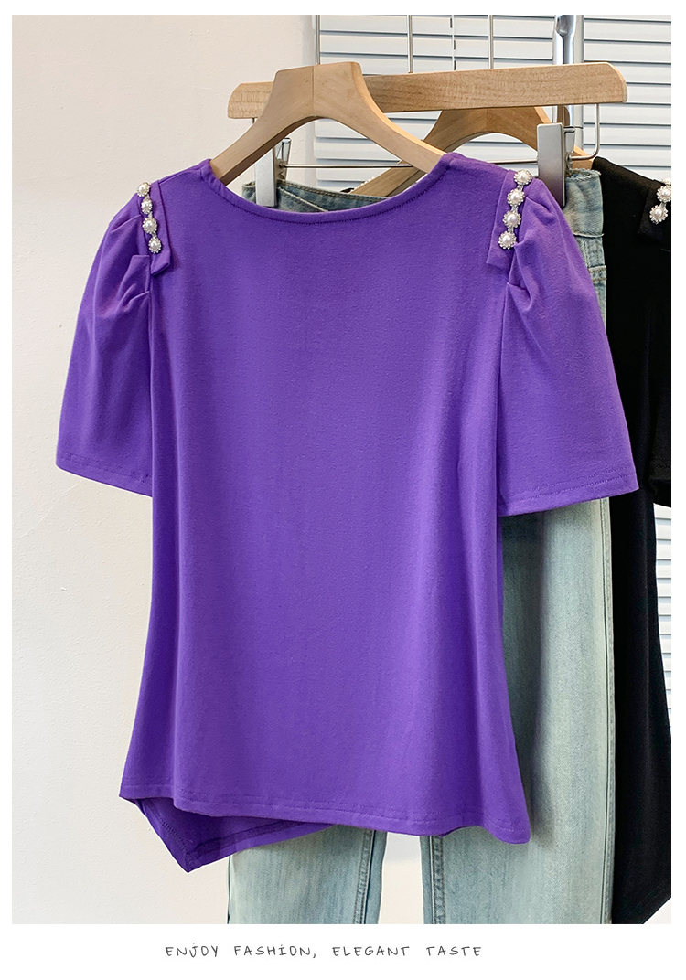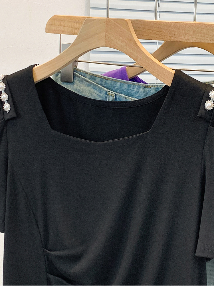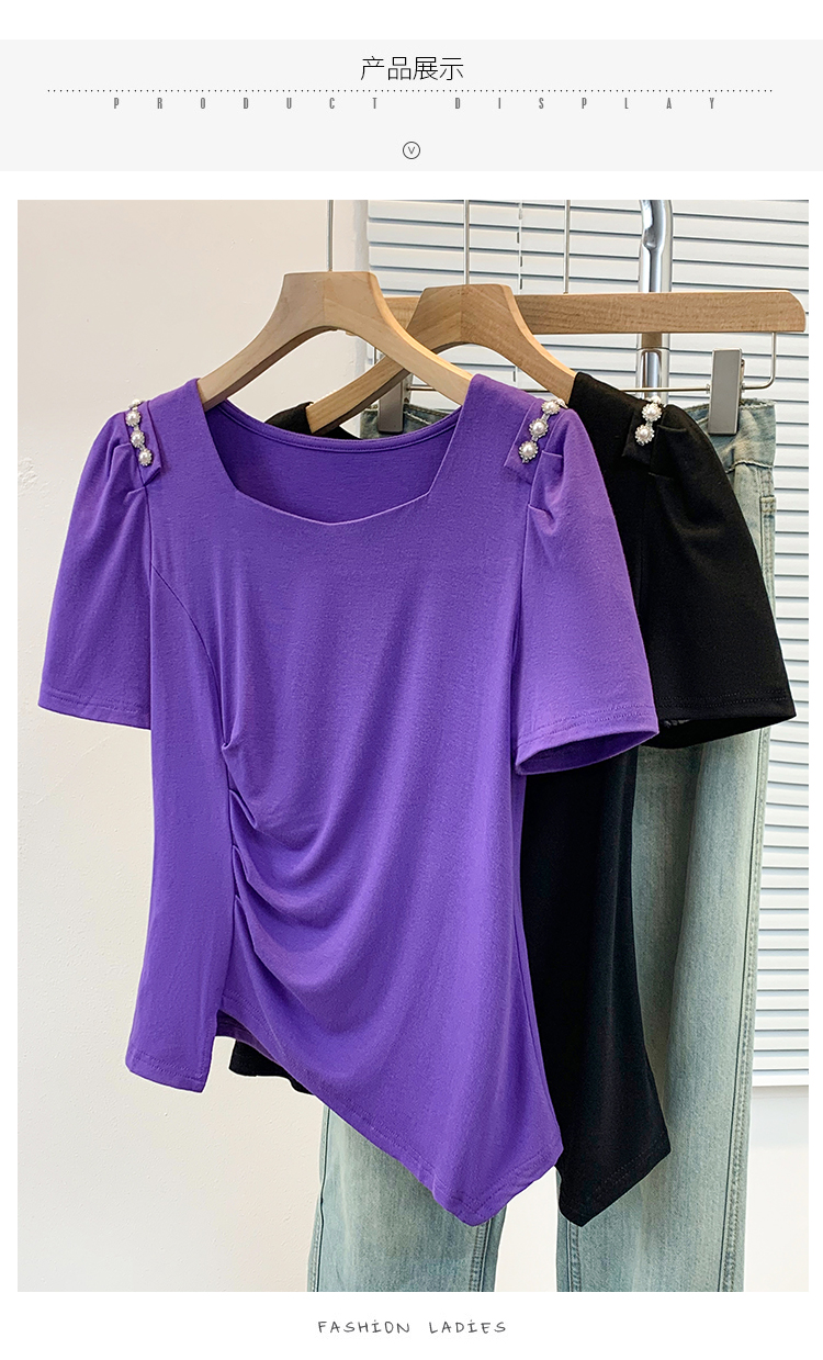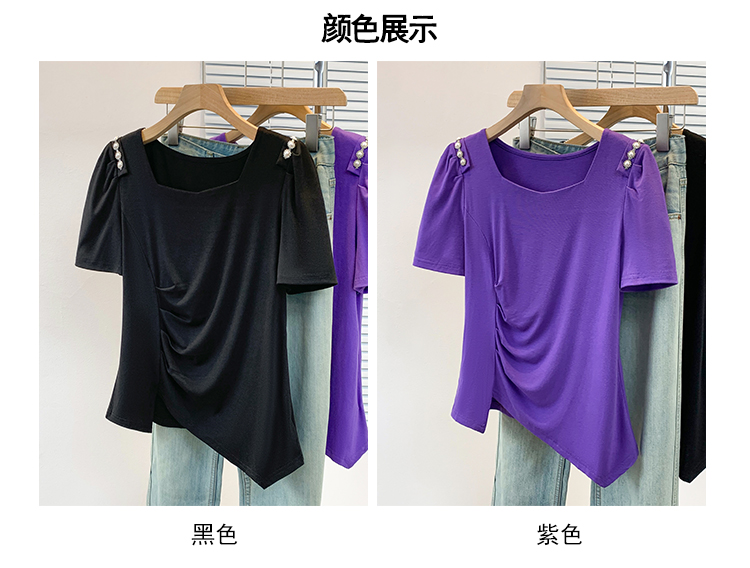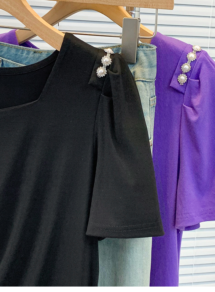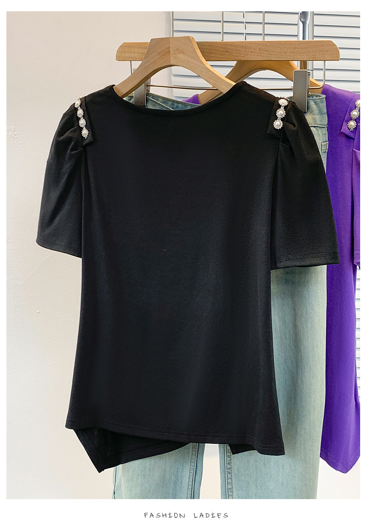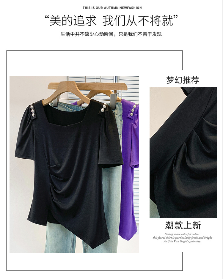 RY3104# 实拍大码胖MM2026新款钉珠短袖t恤女夏季时尚气质修身显瘦上衣