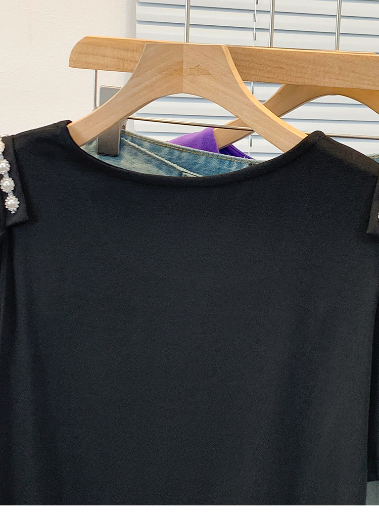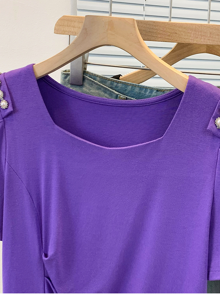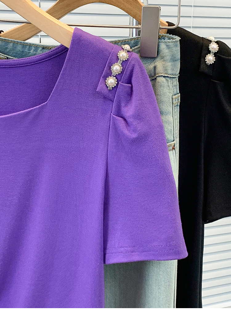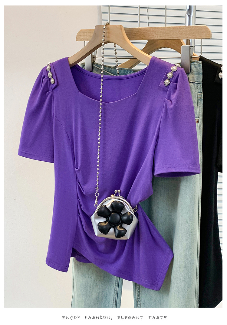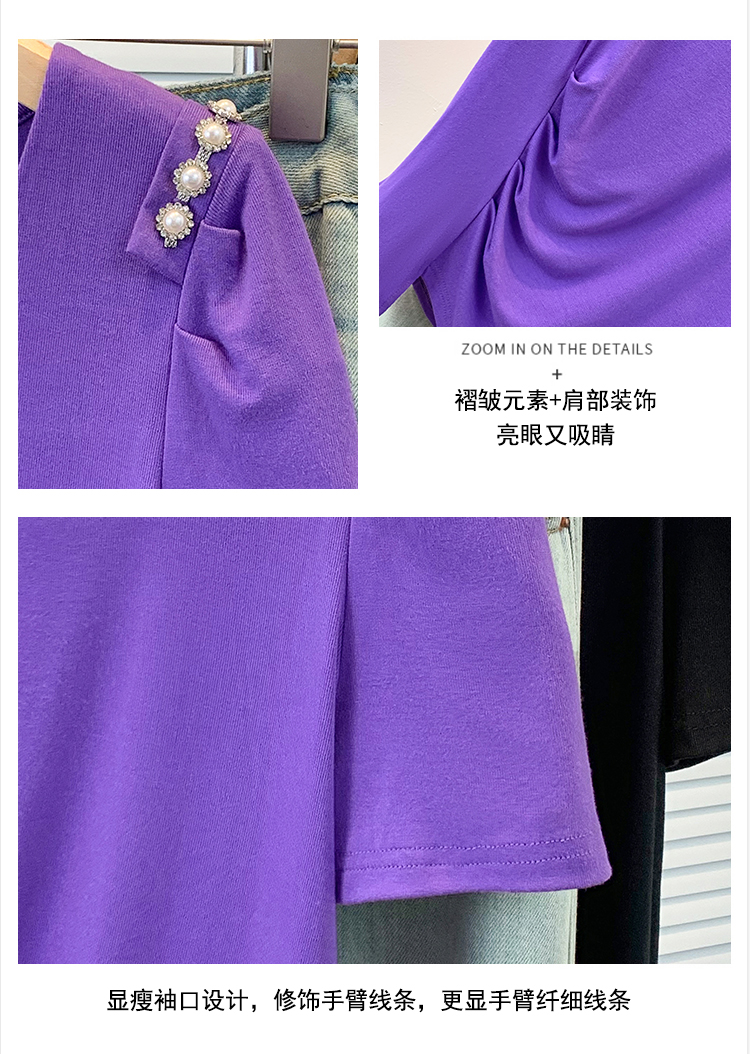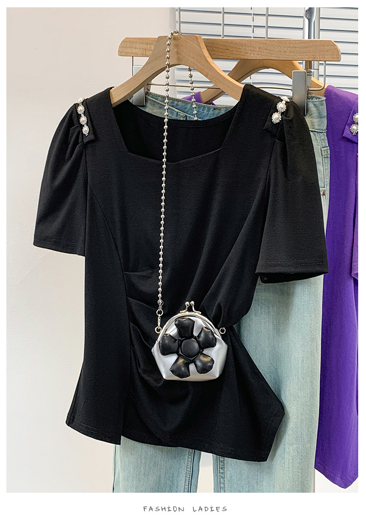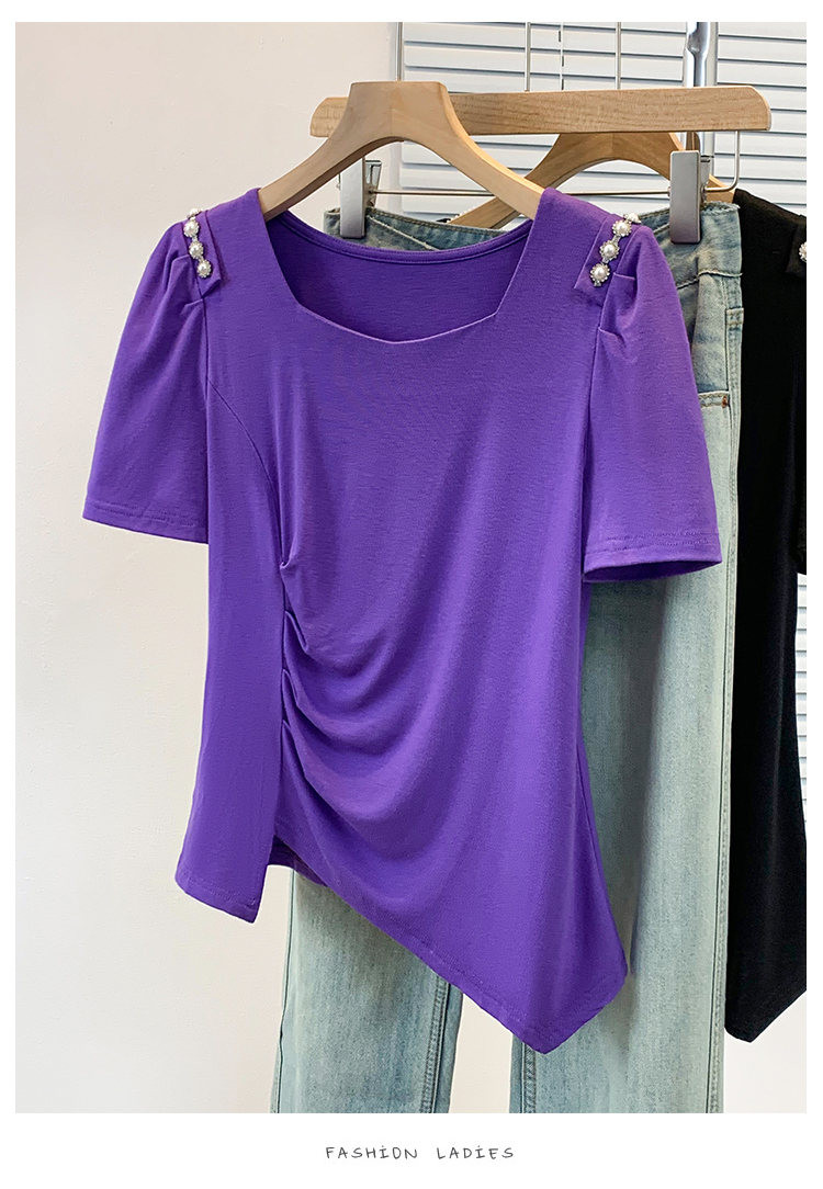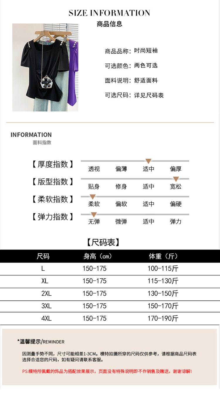 RY3104# 实拍大码胖MM2026新款钉珠短袖t恤女夏季时尚气质修身显瘦上衣