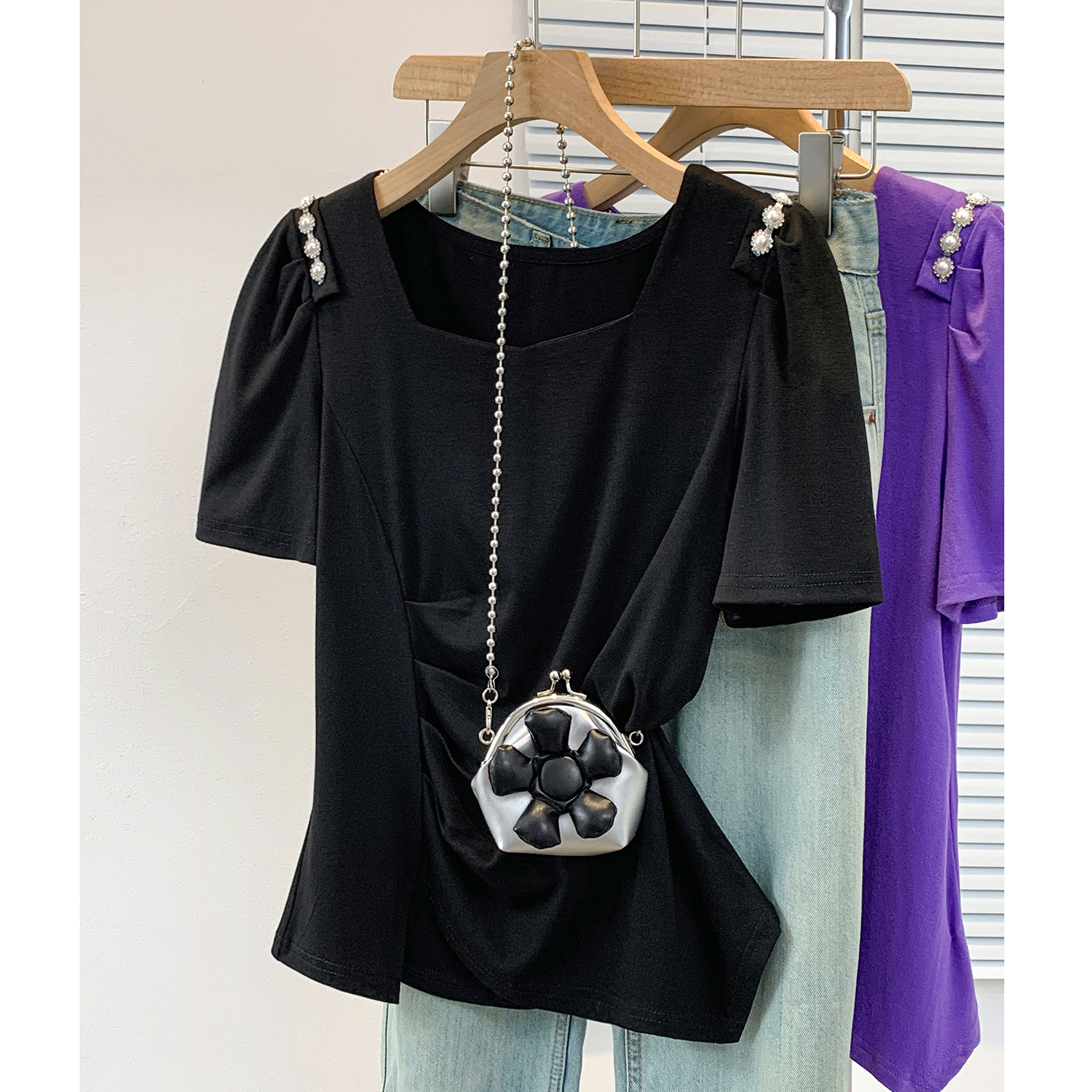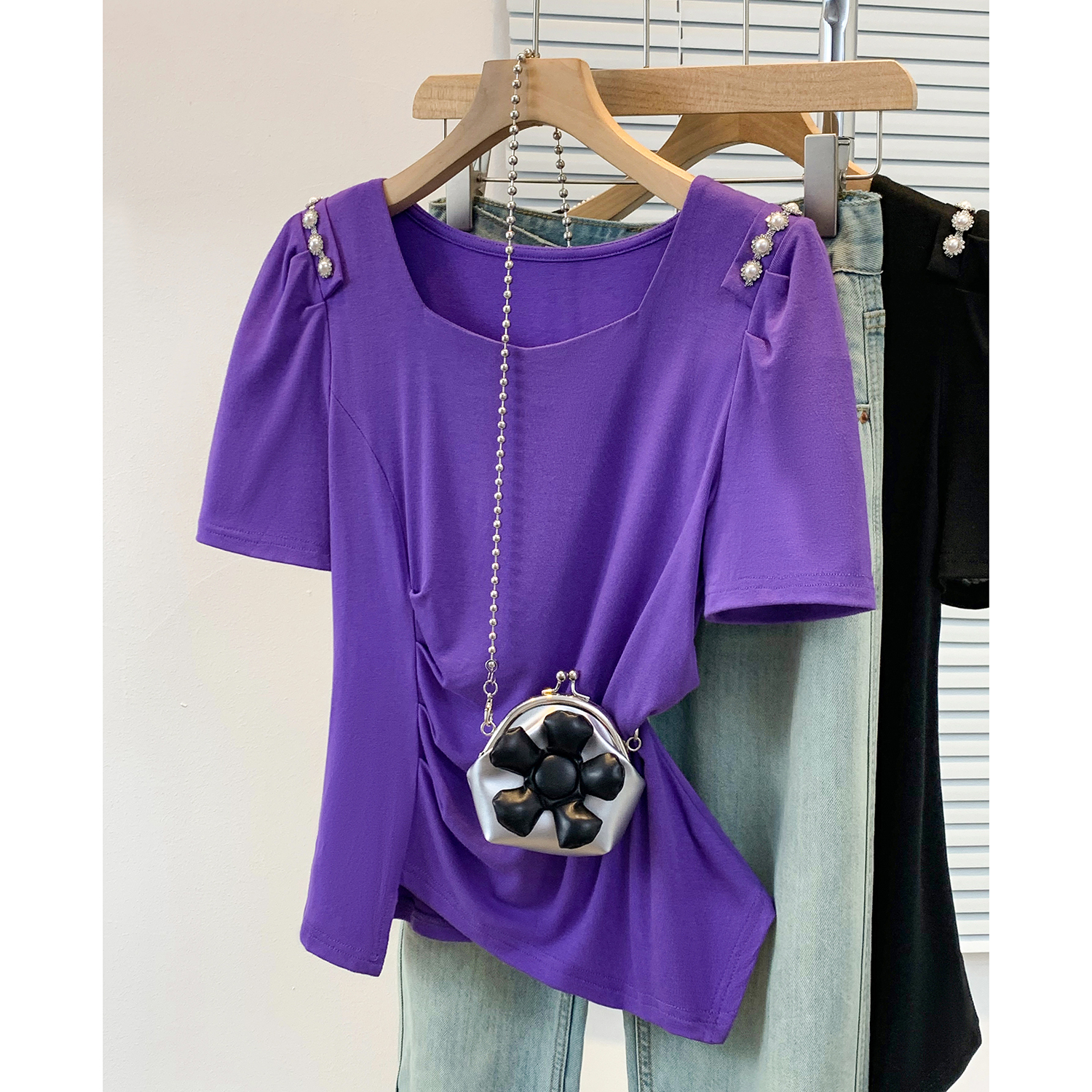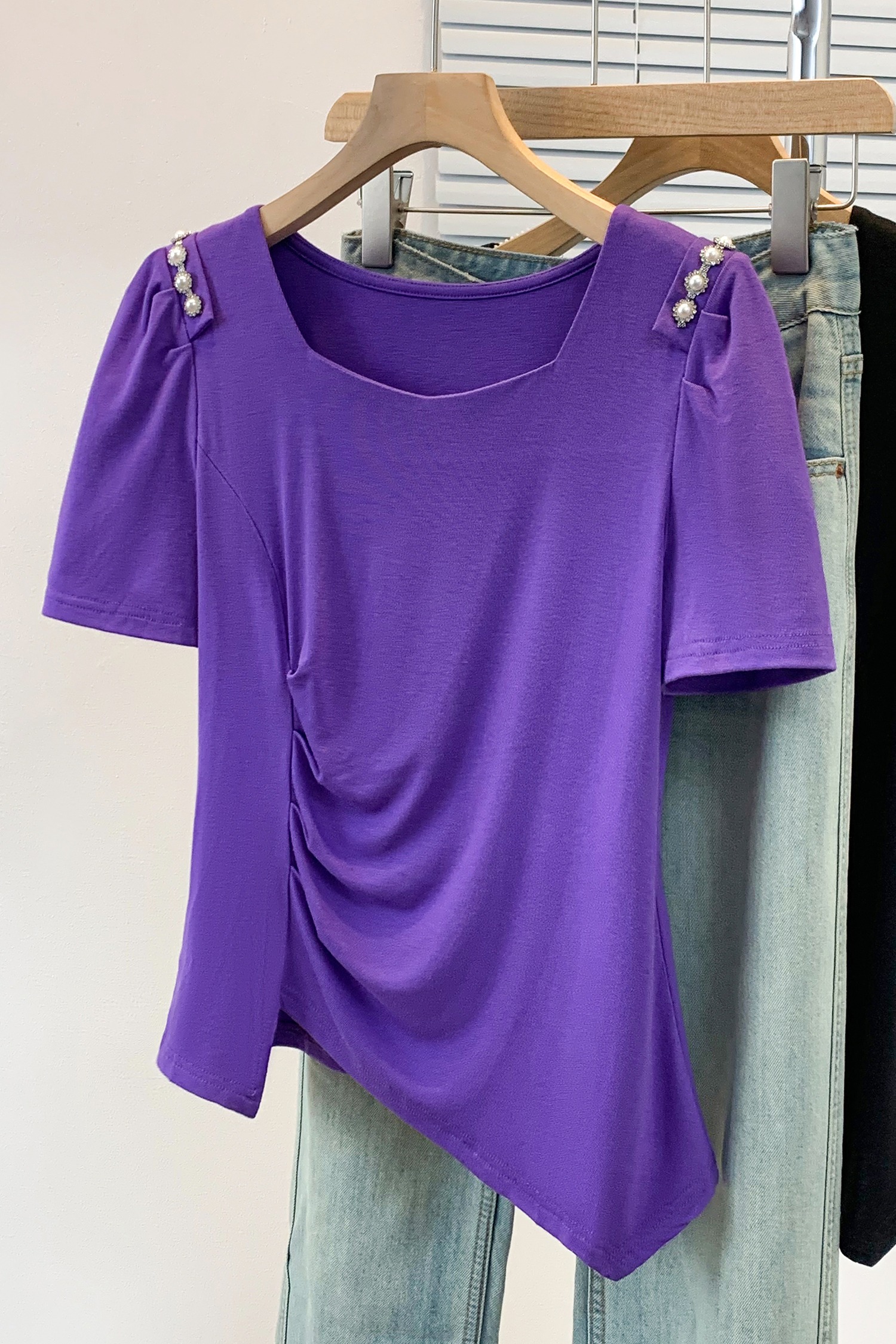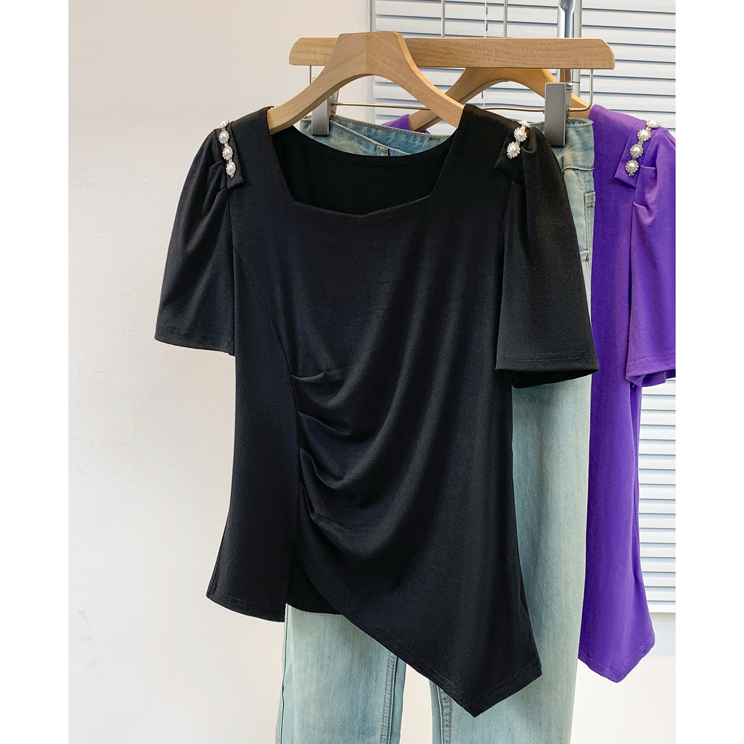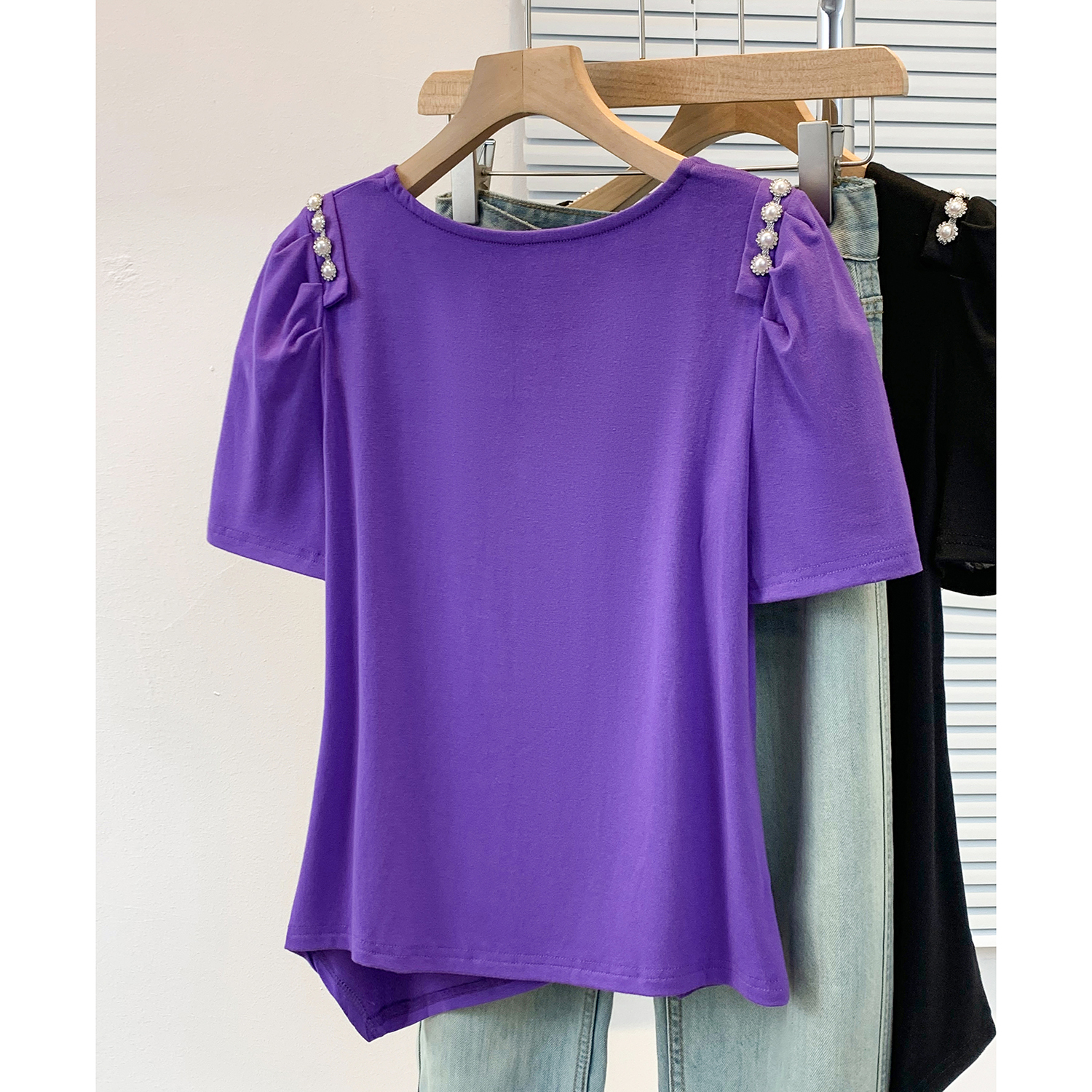 RY3104# 实拍大码胖MM2026新款钉珠短袖t恤女夏季时尚气质修身显瘦上衣