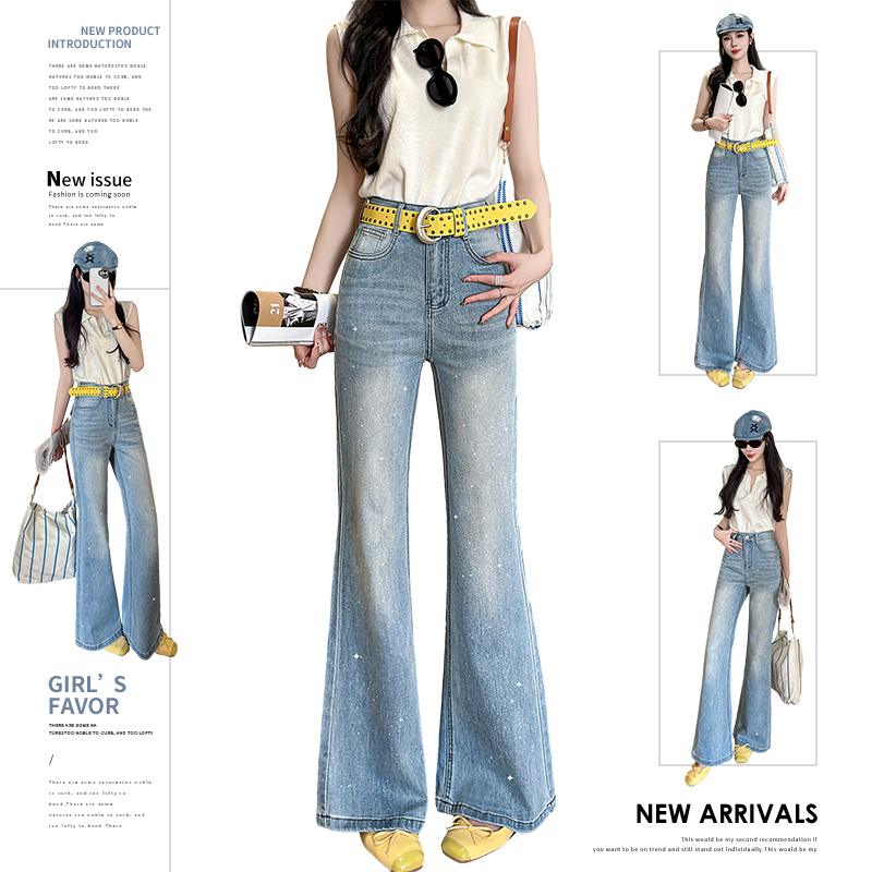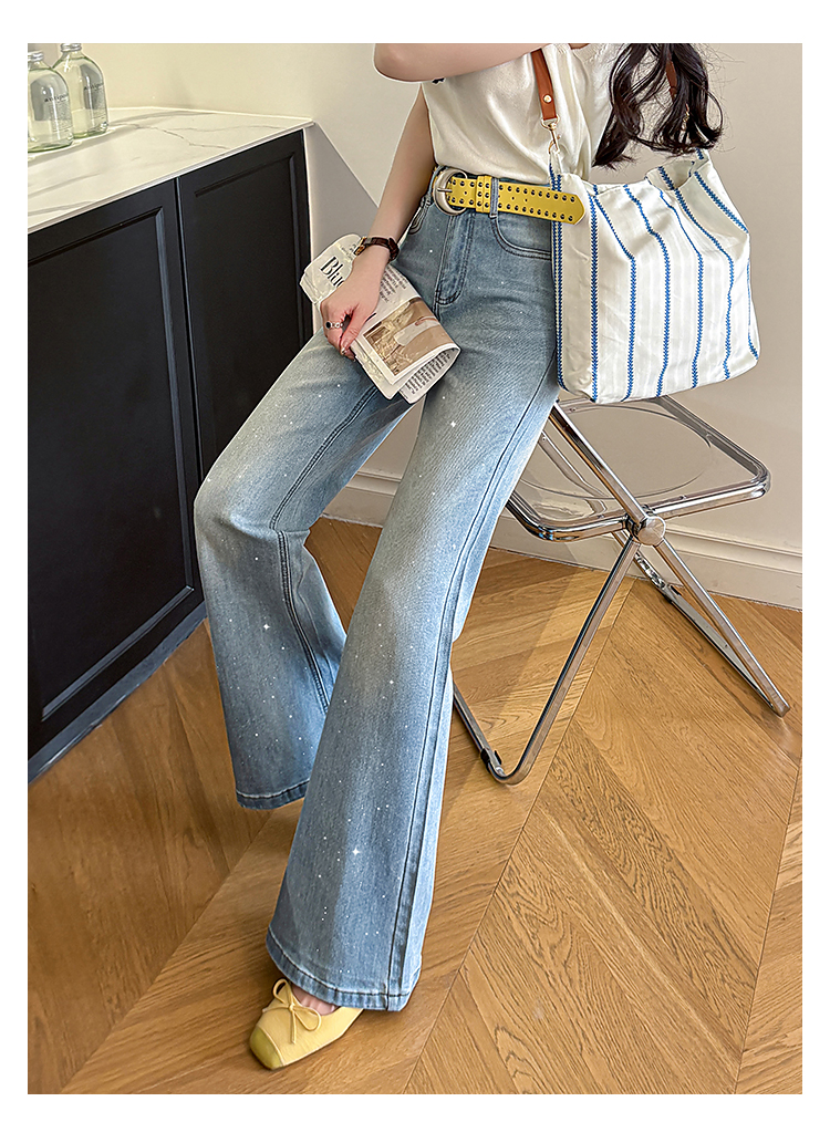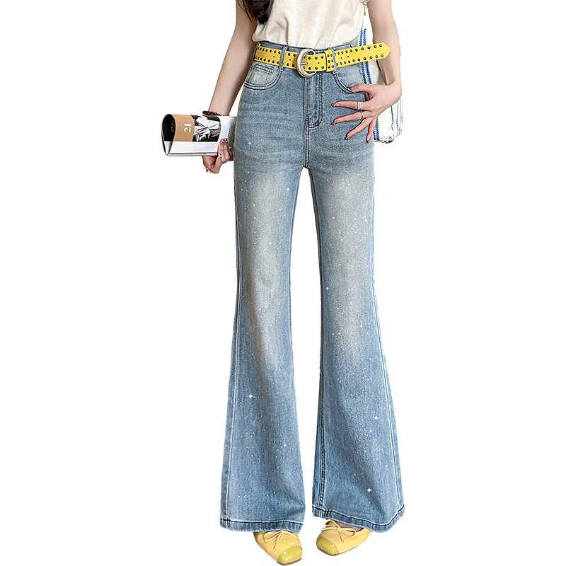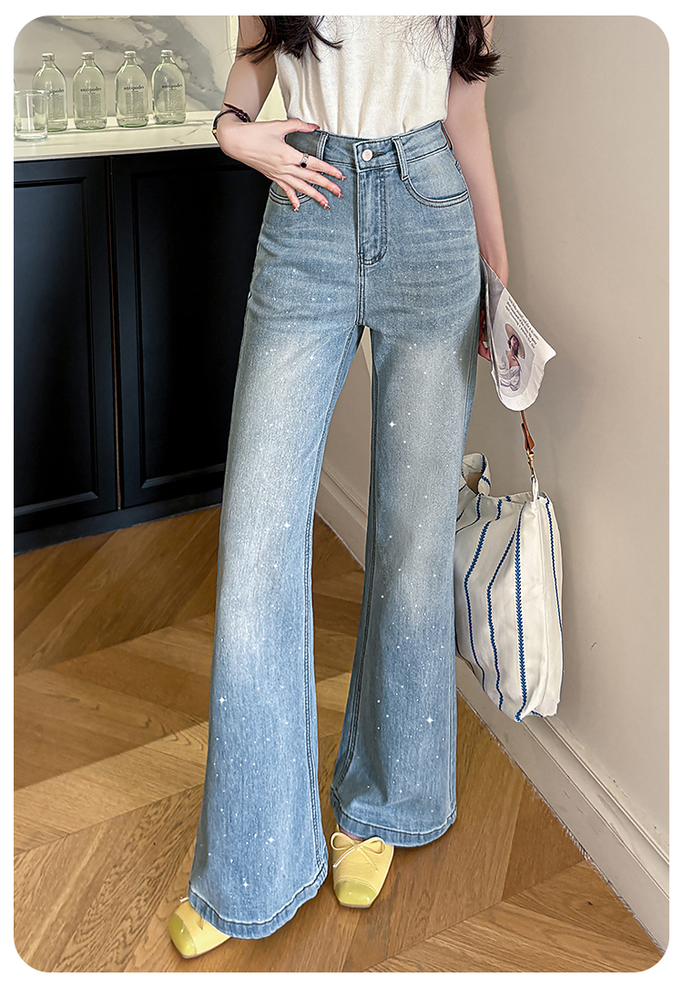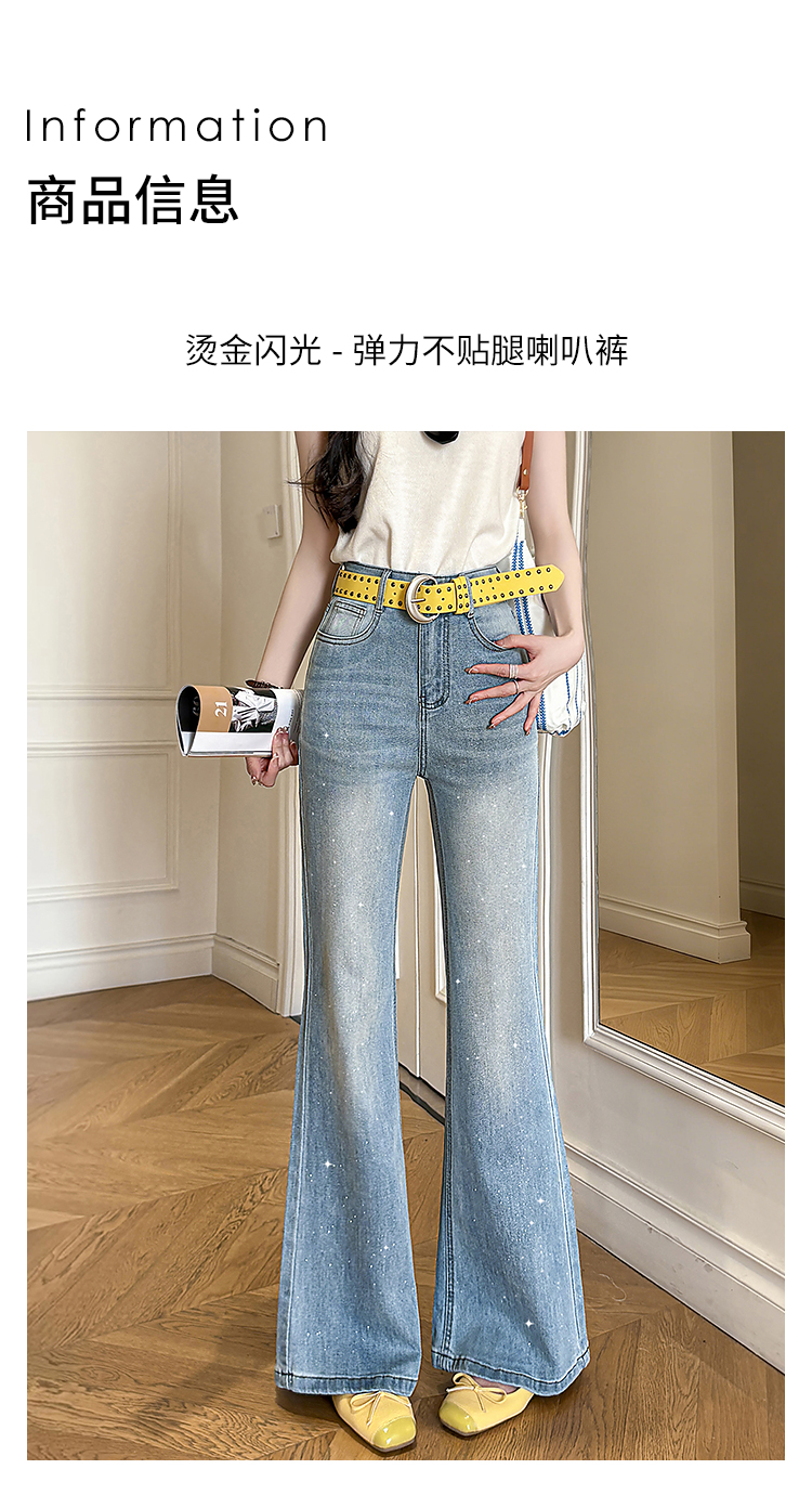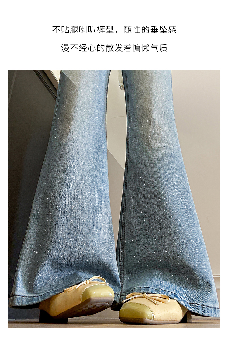RY3120# 实拍弹力闪烫钻牛仔裤女2026年春夏款韩版风休闲宽松不贴腿喇叭裤