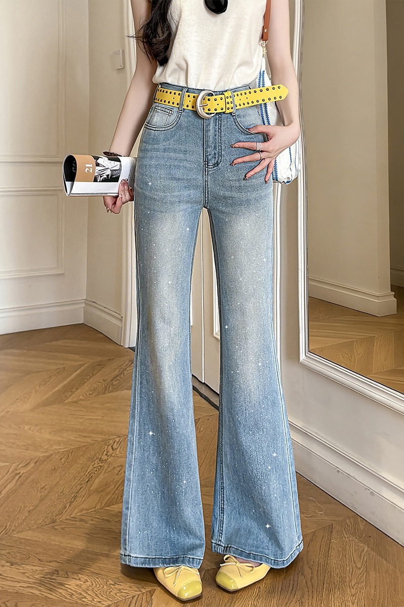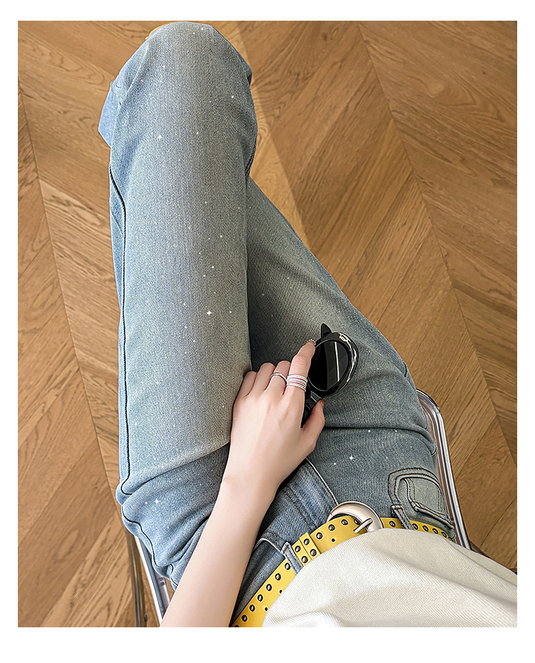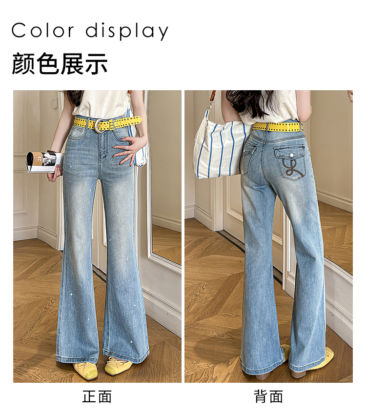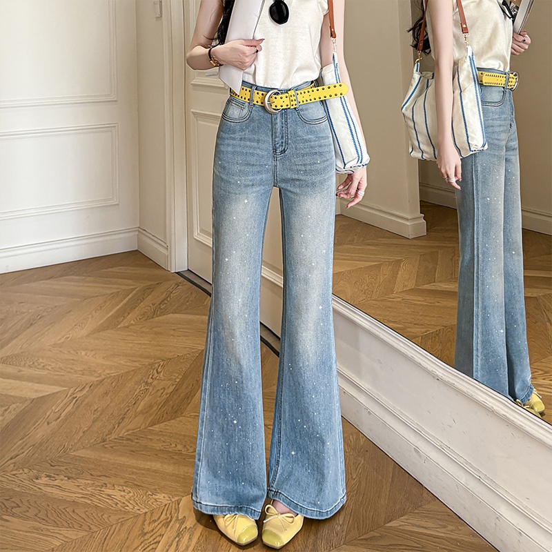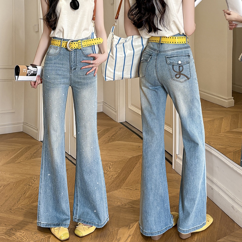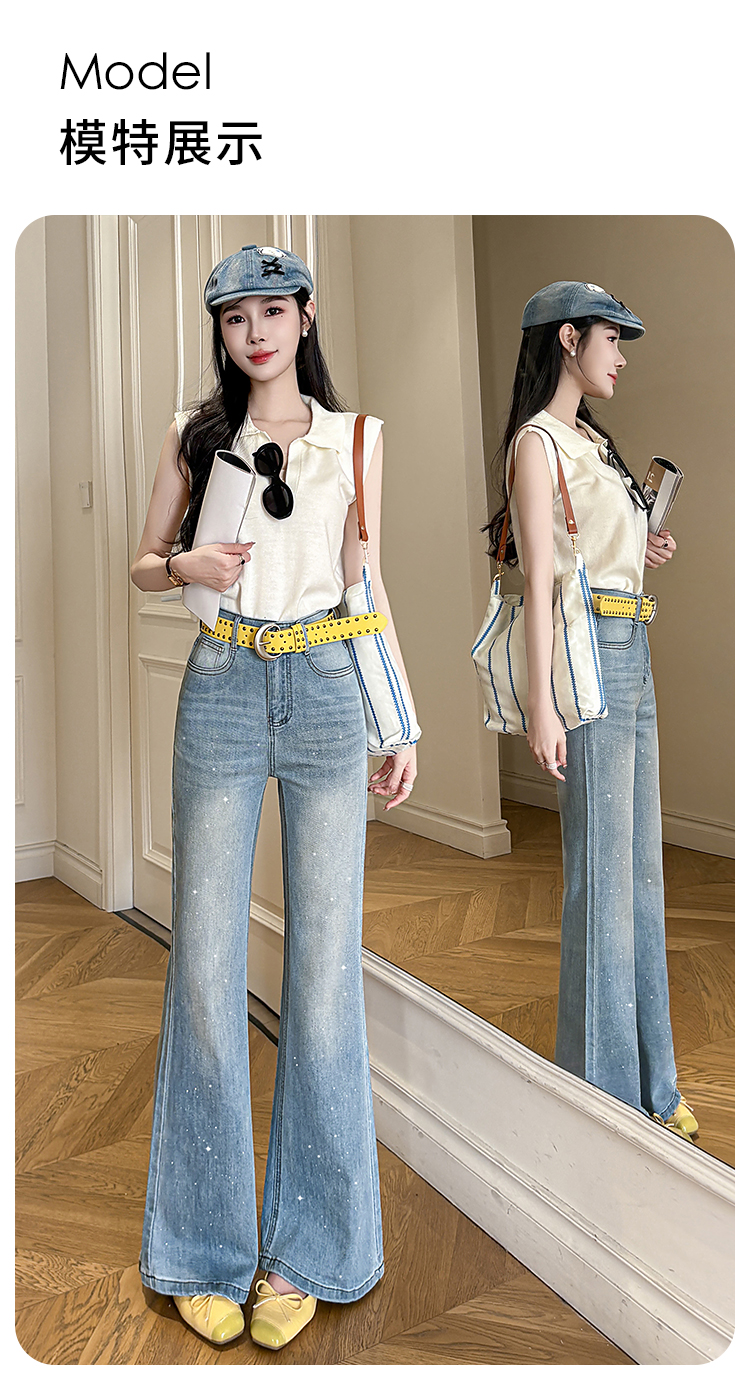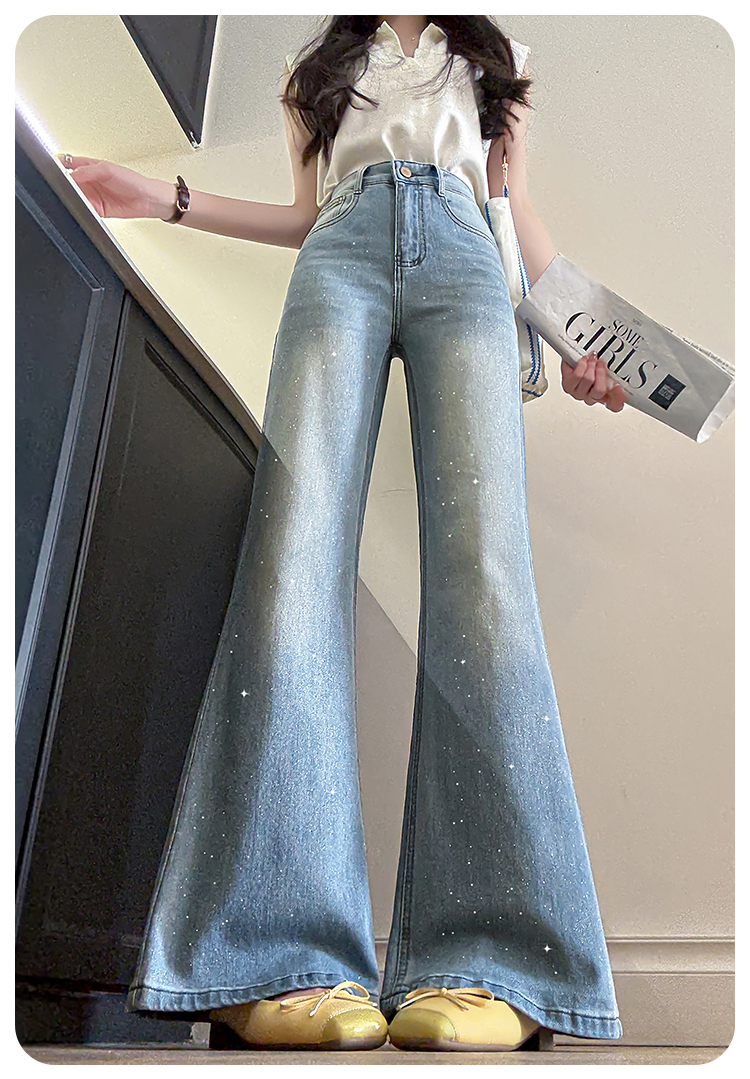 RY3120# 实拍弹力闪烫钻牛仔裤女2026年春夏款韩版风休闲宽松不贴腿喇叭裤
