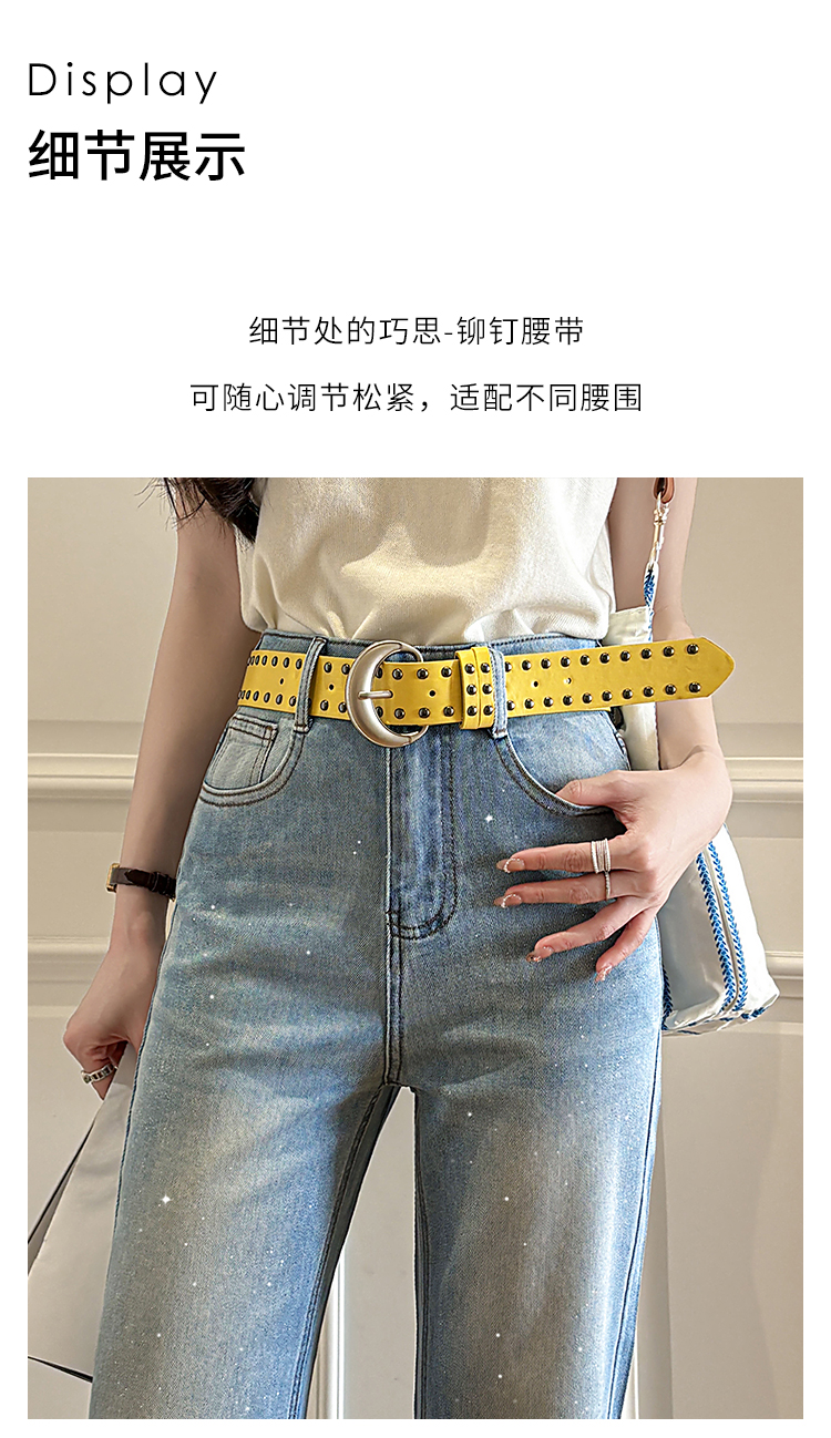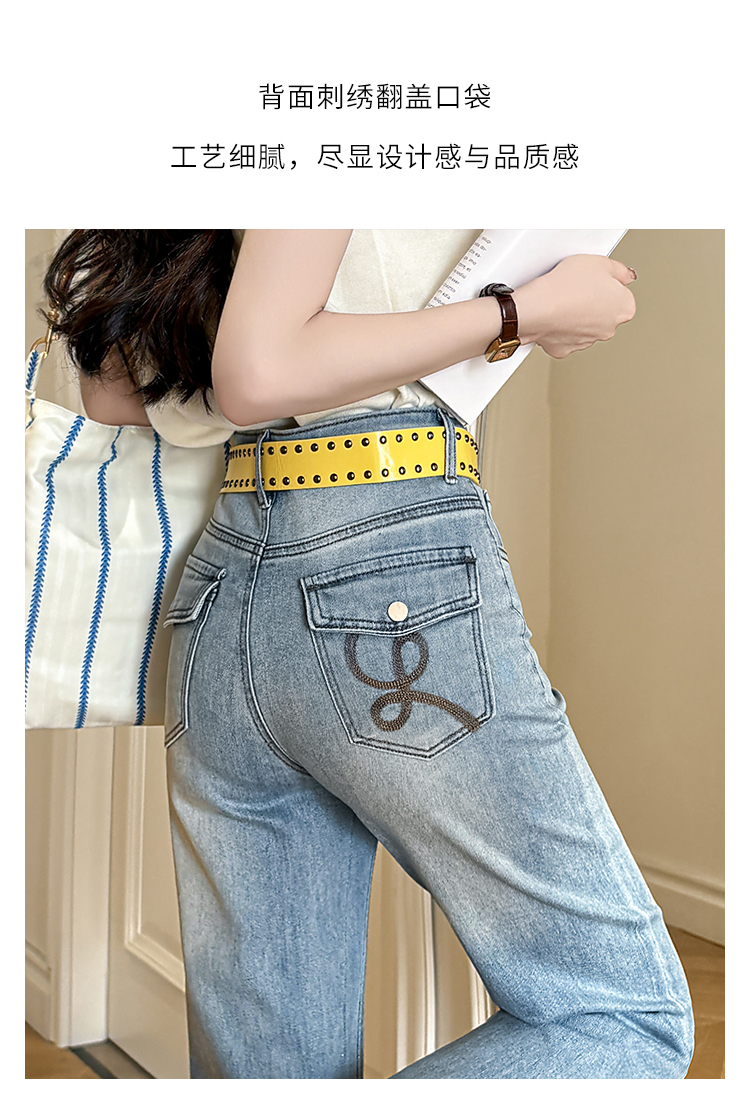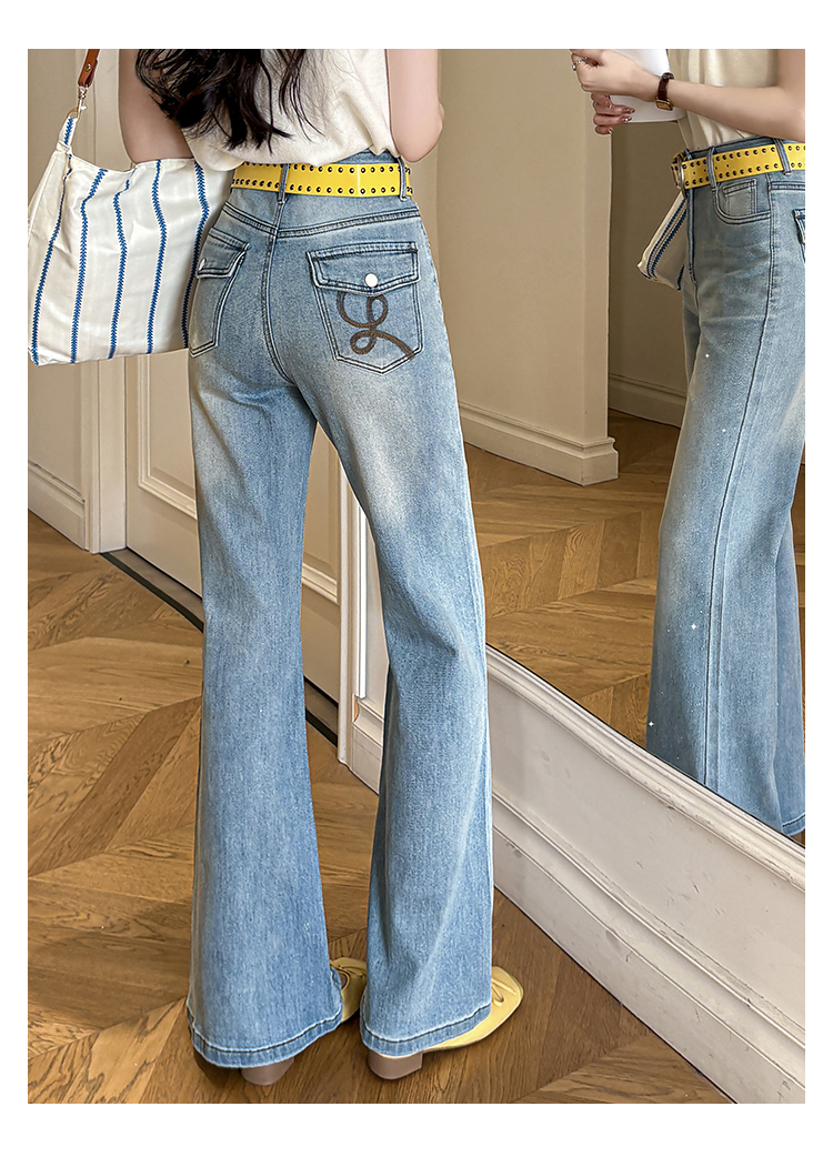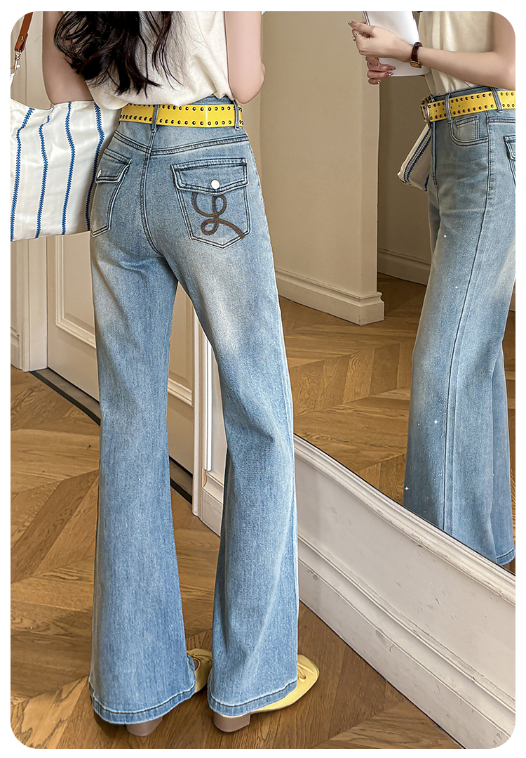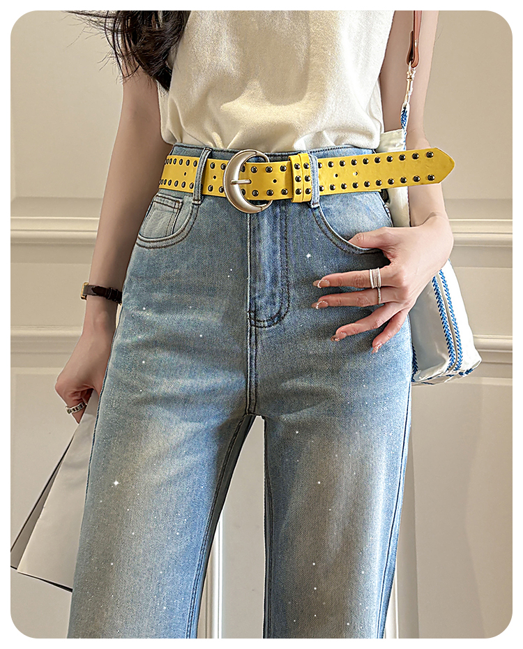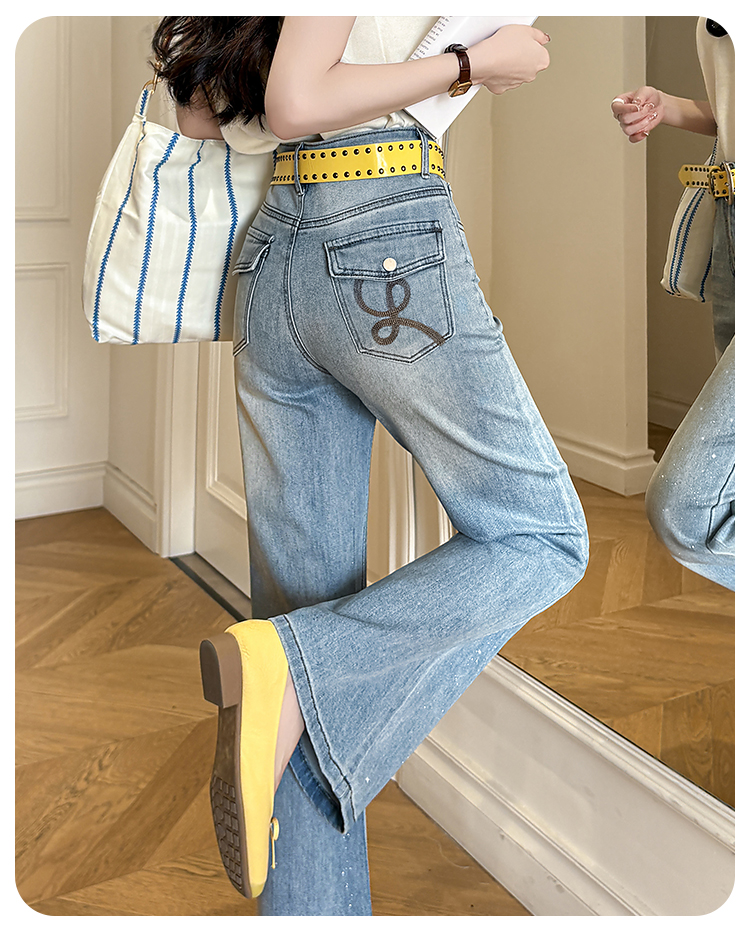RY3120# 实拍弹力闪烫钻牛仔裤女2026年春夏款韩版风休闲宽松不贴腿喇叭裤