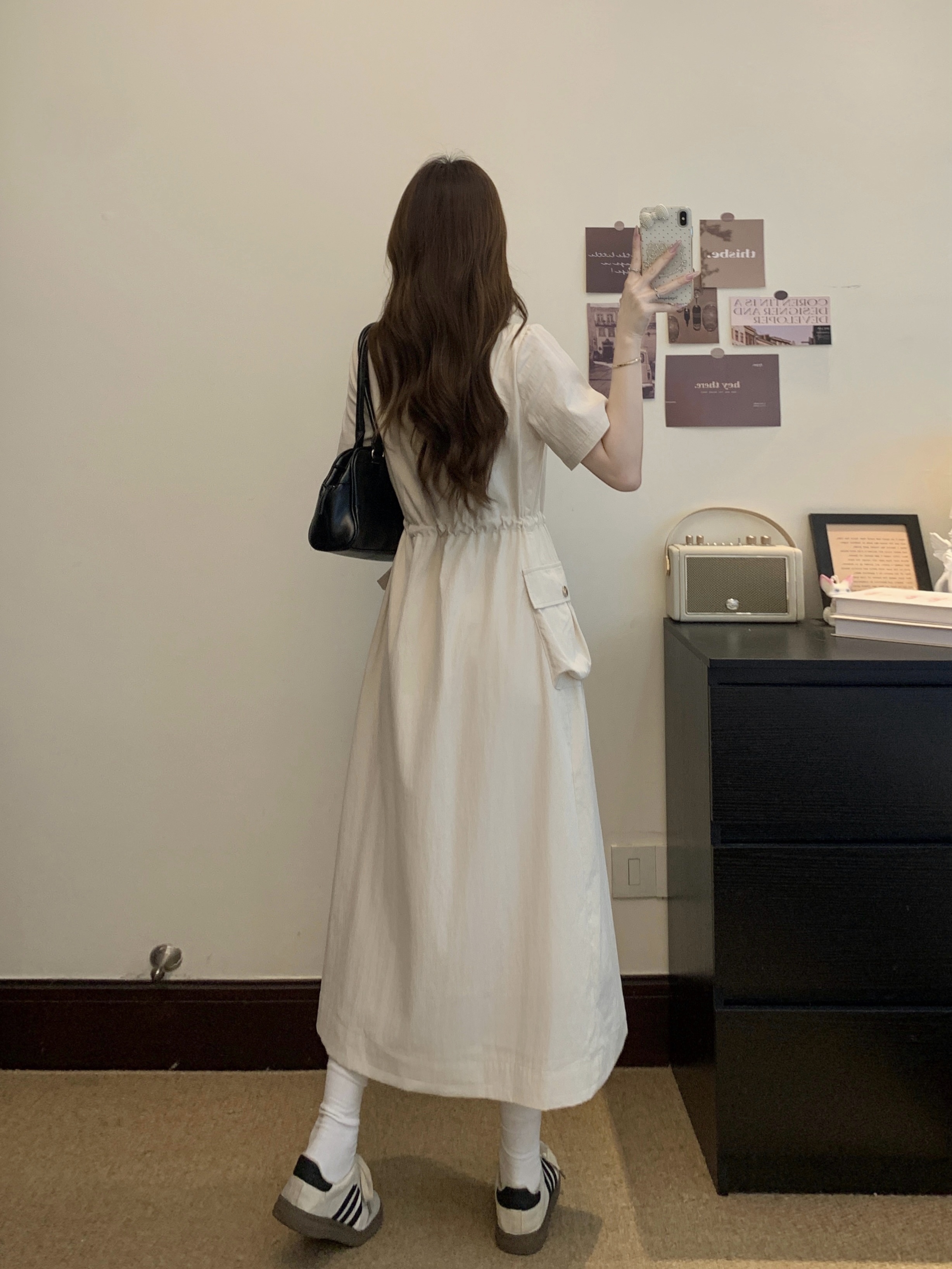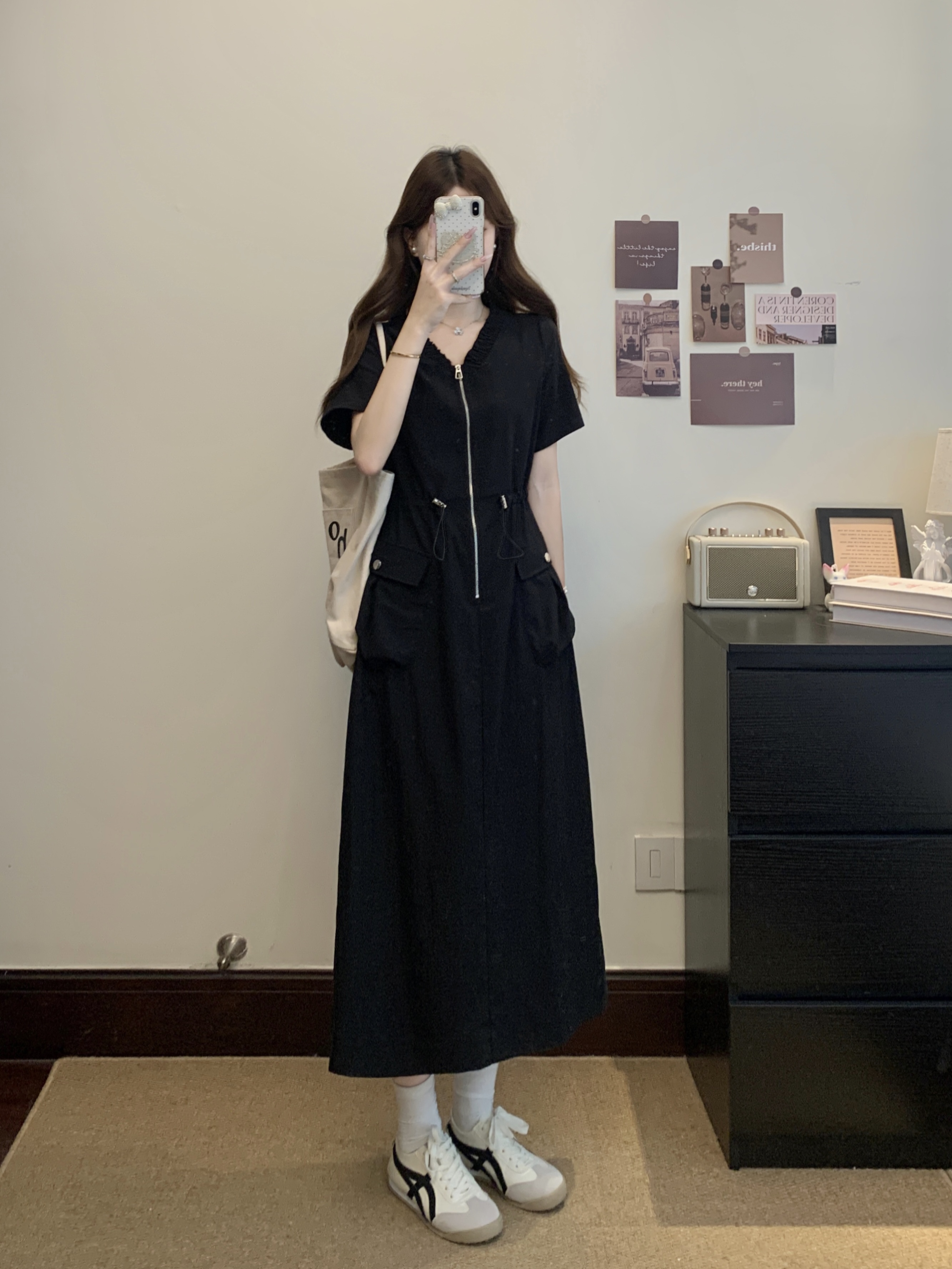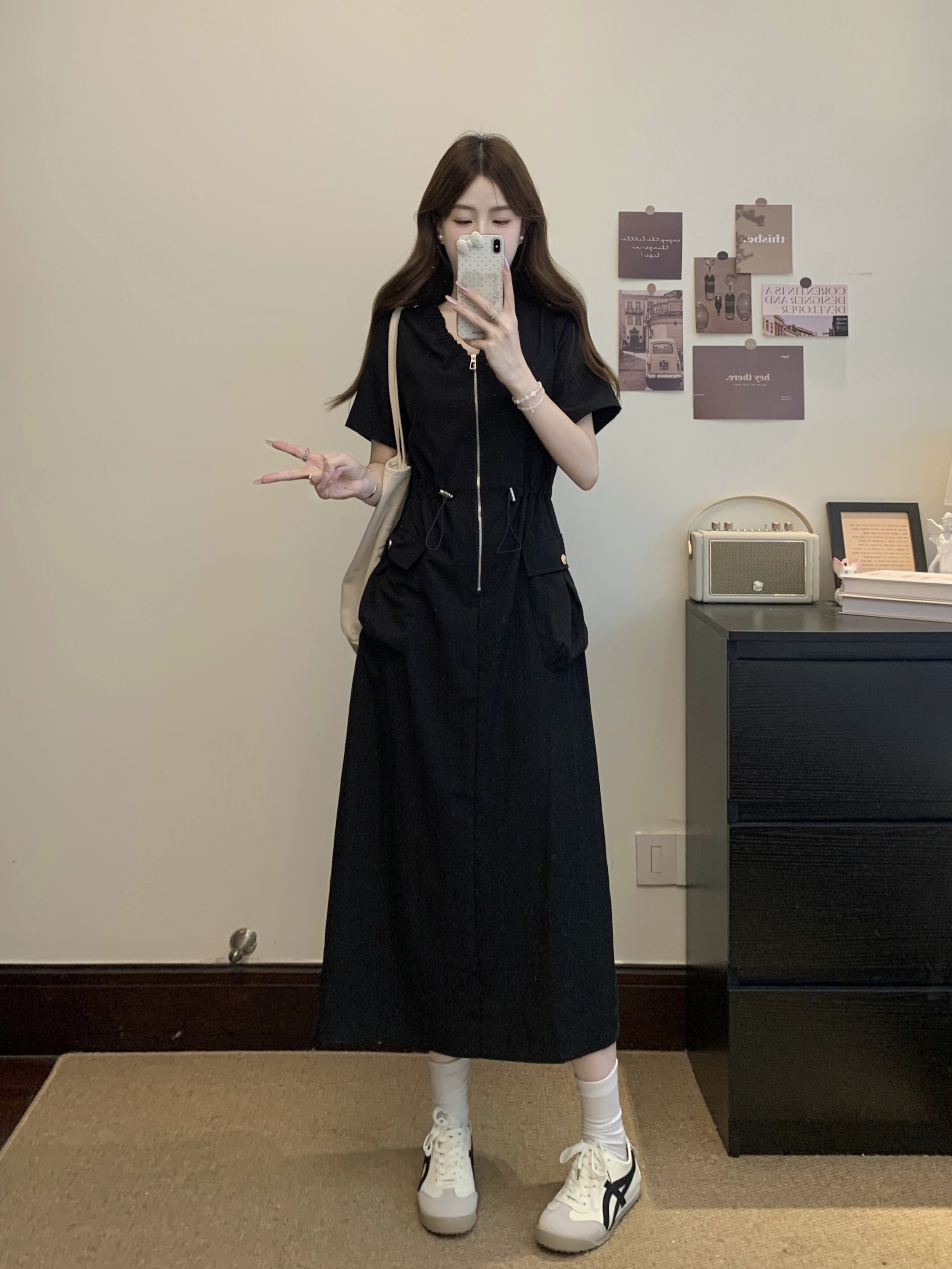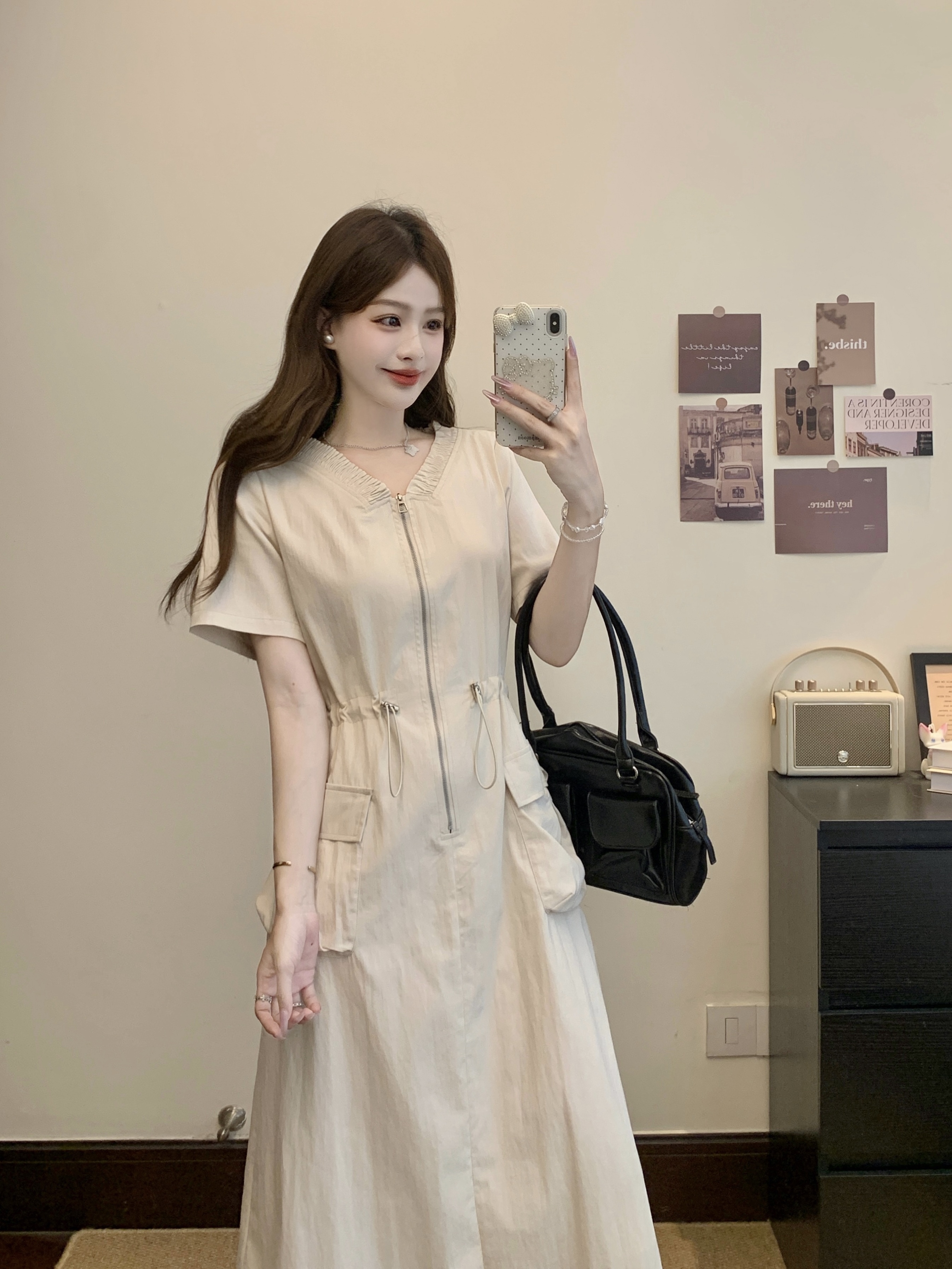 RY3126# 实拍 大码女装胖mm新款收腰显瘦工装连衣裙