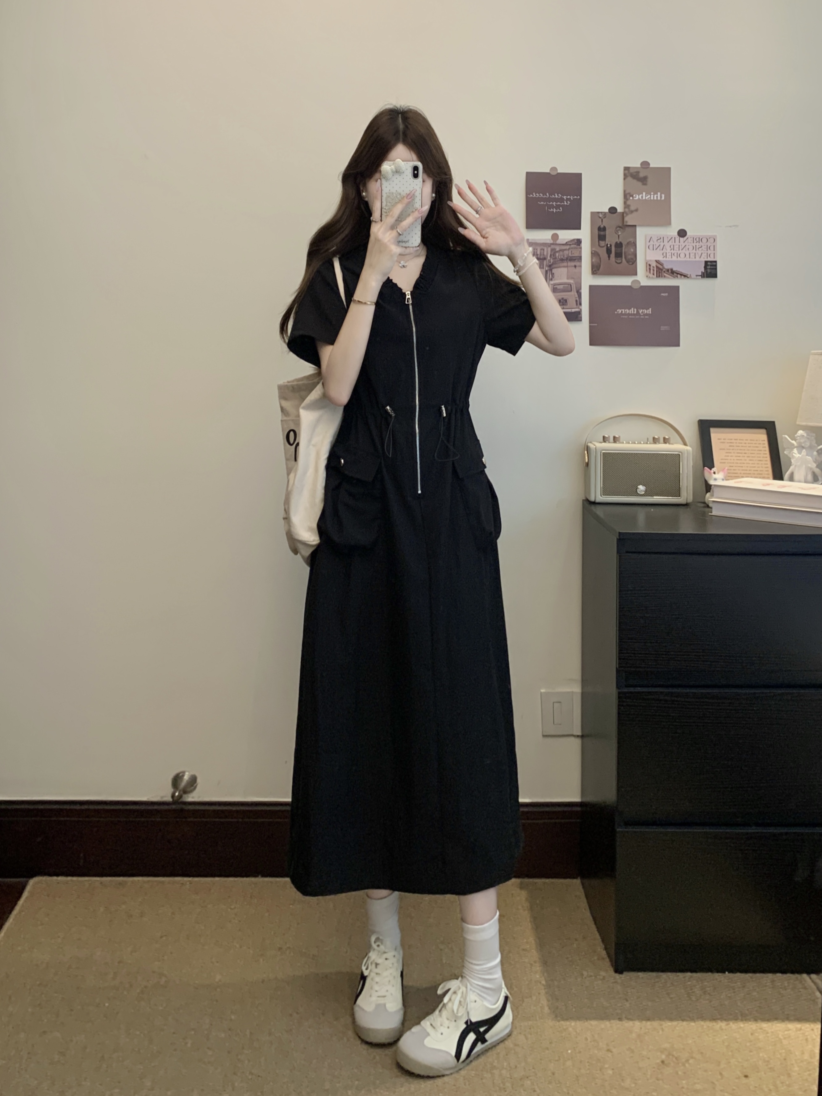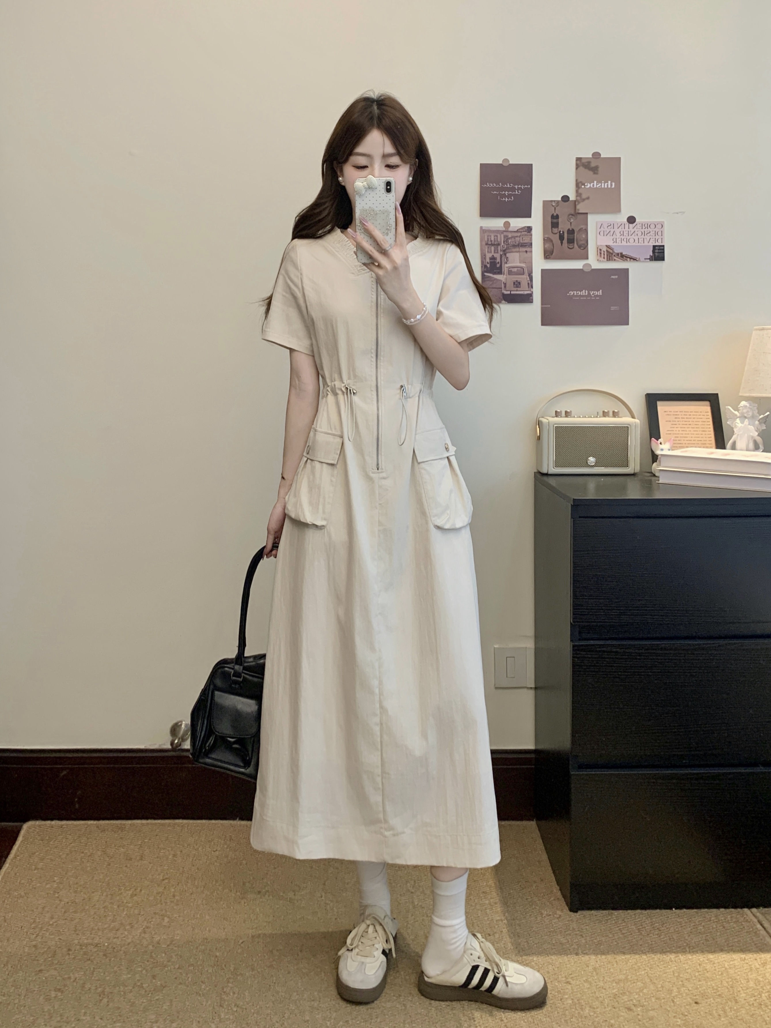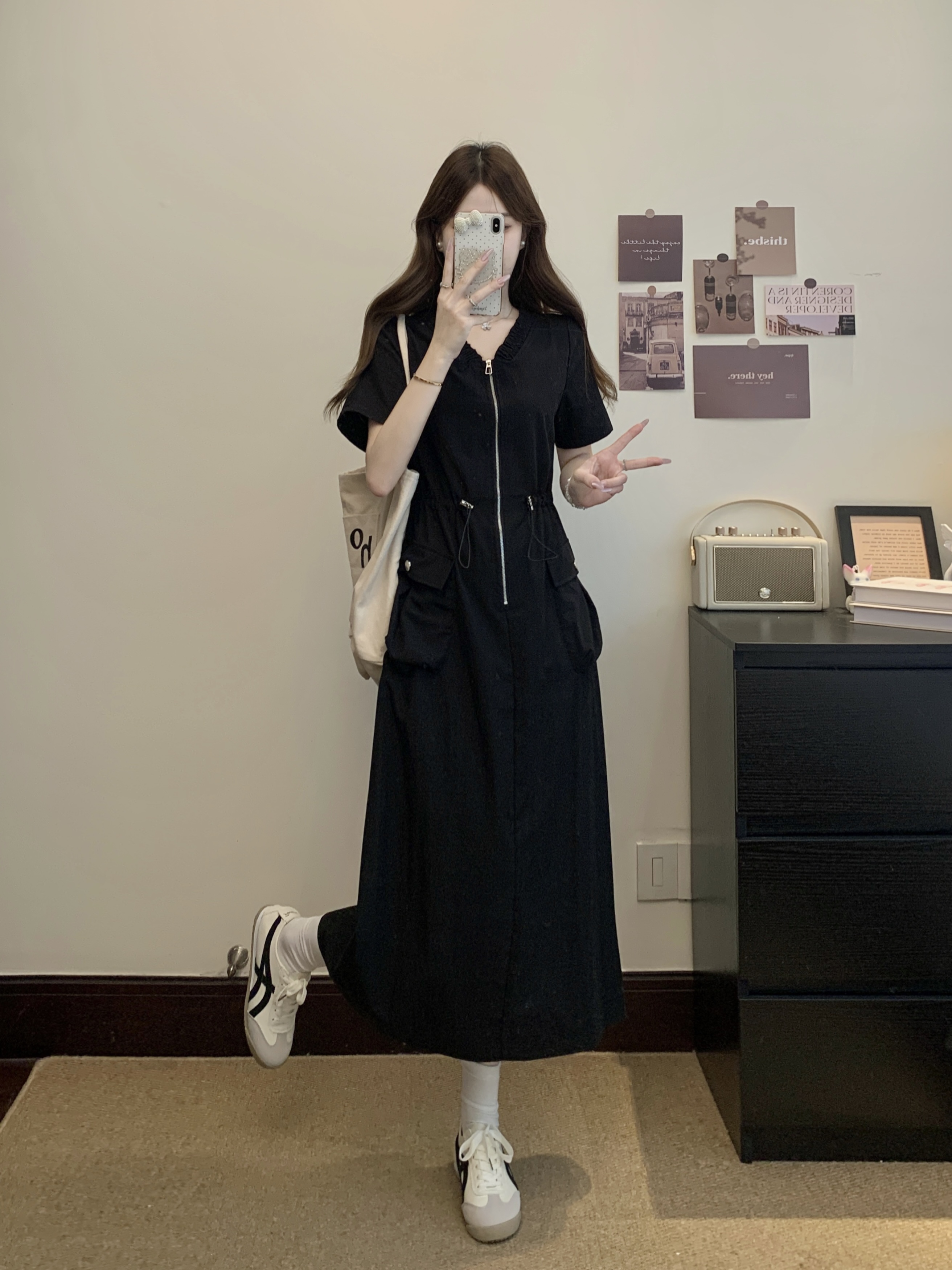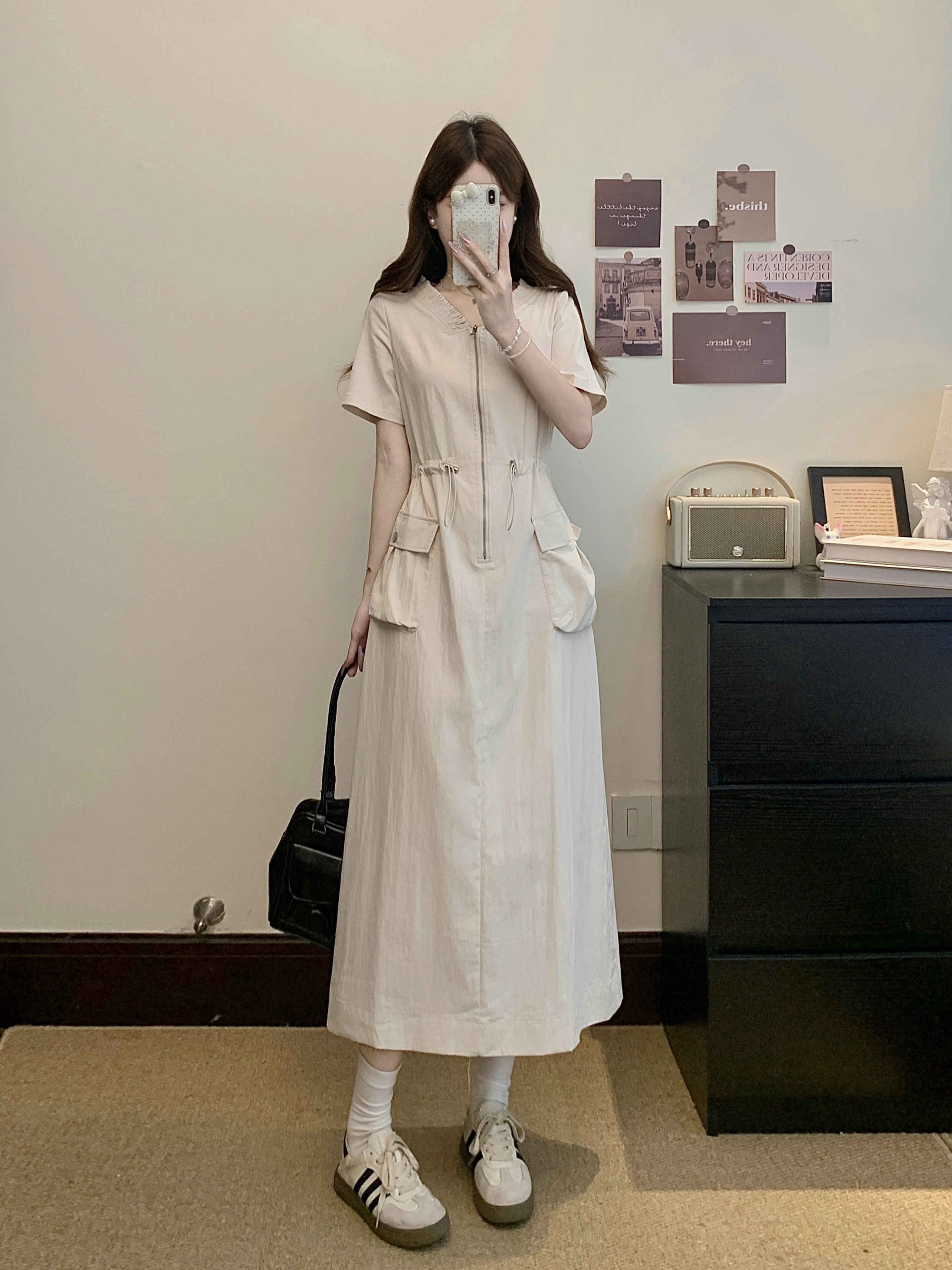 RY3126# 实拍 大码女装胖mm新款收腰显瘦工装连衣裙