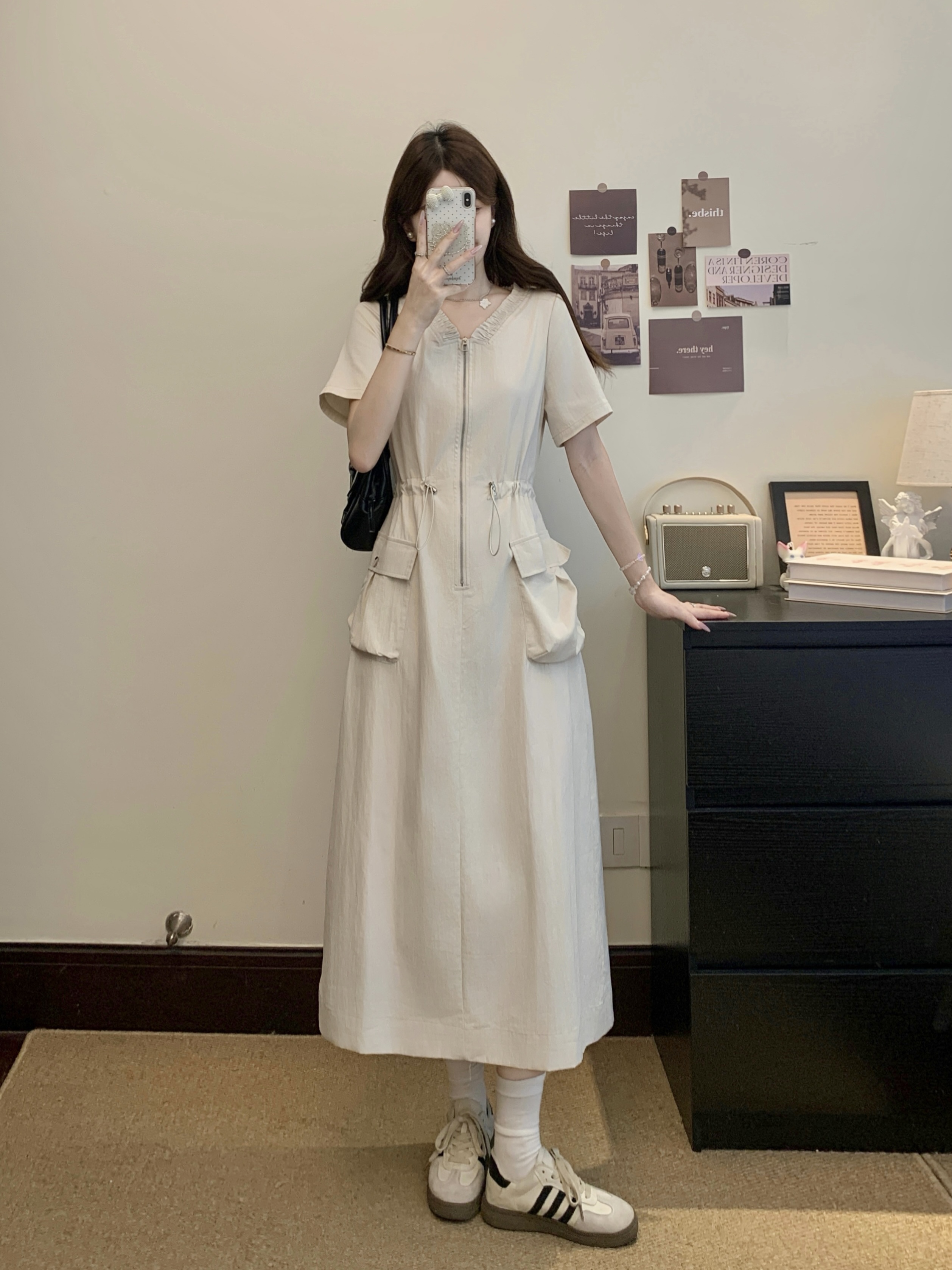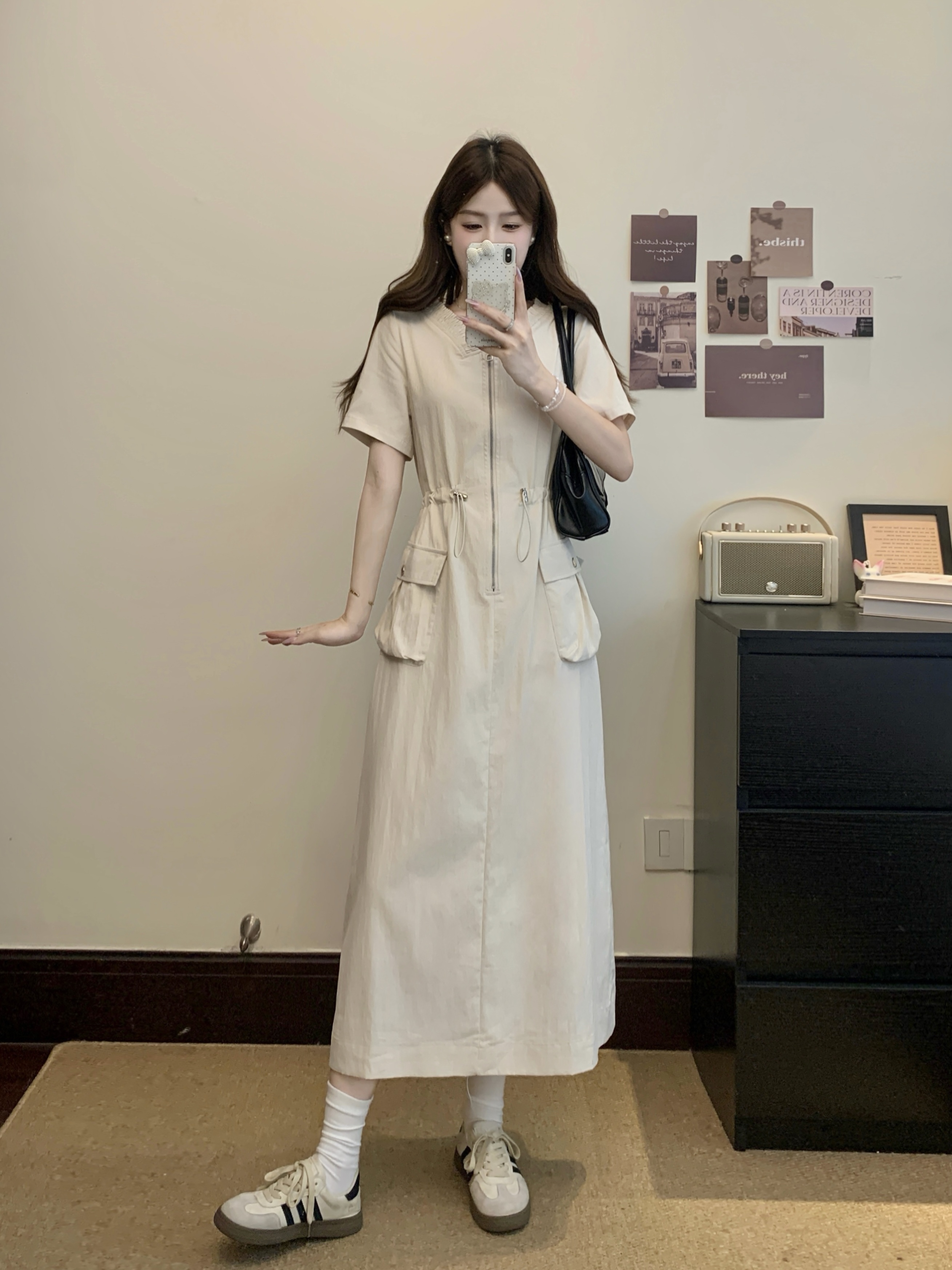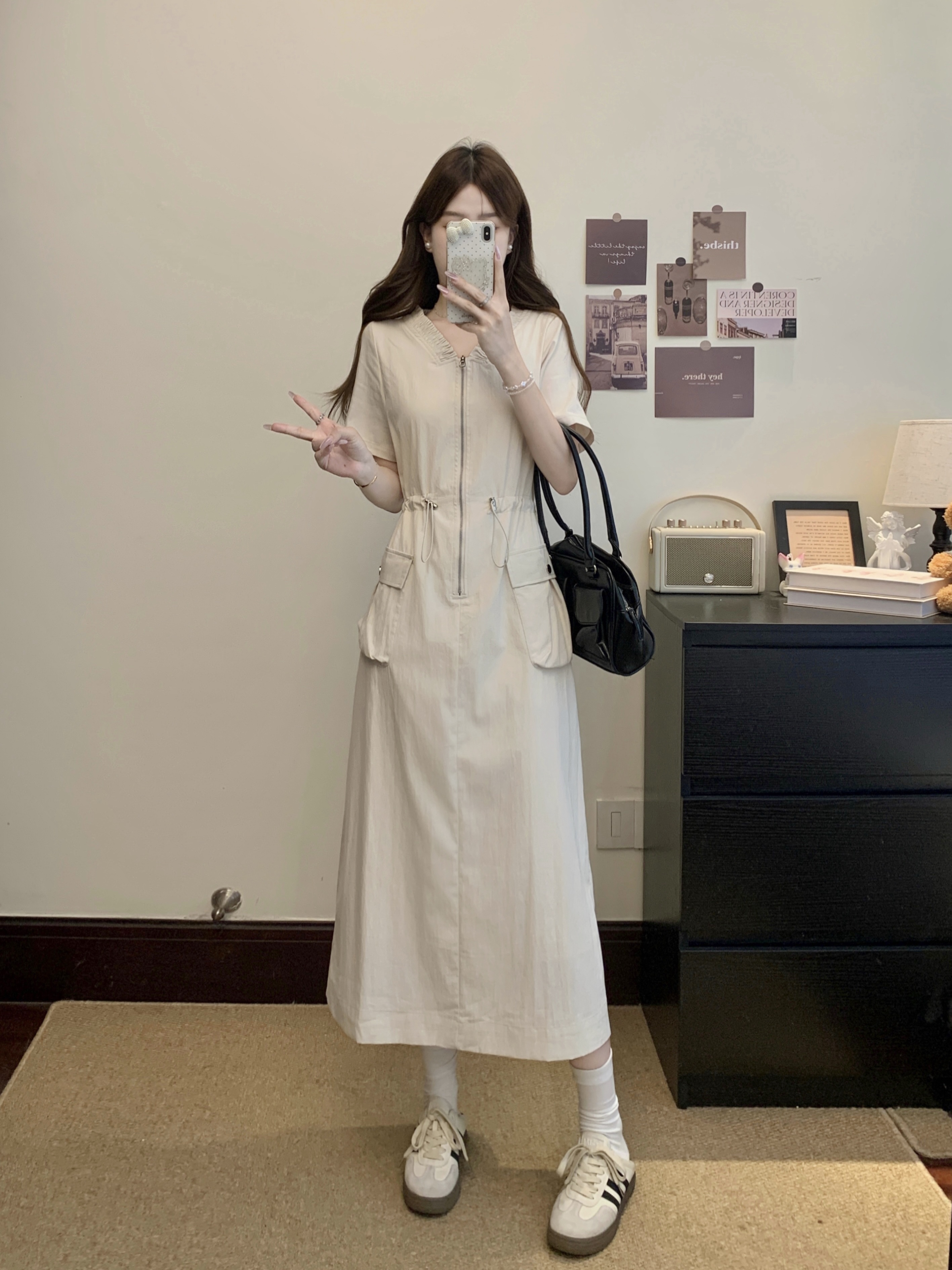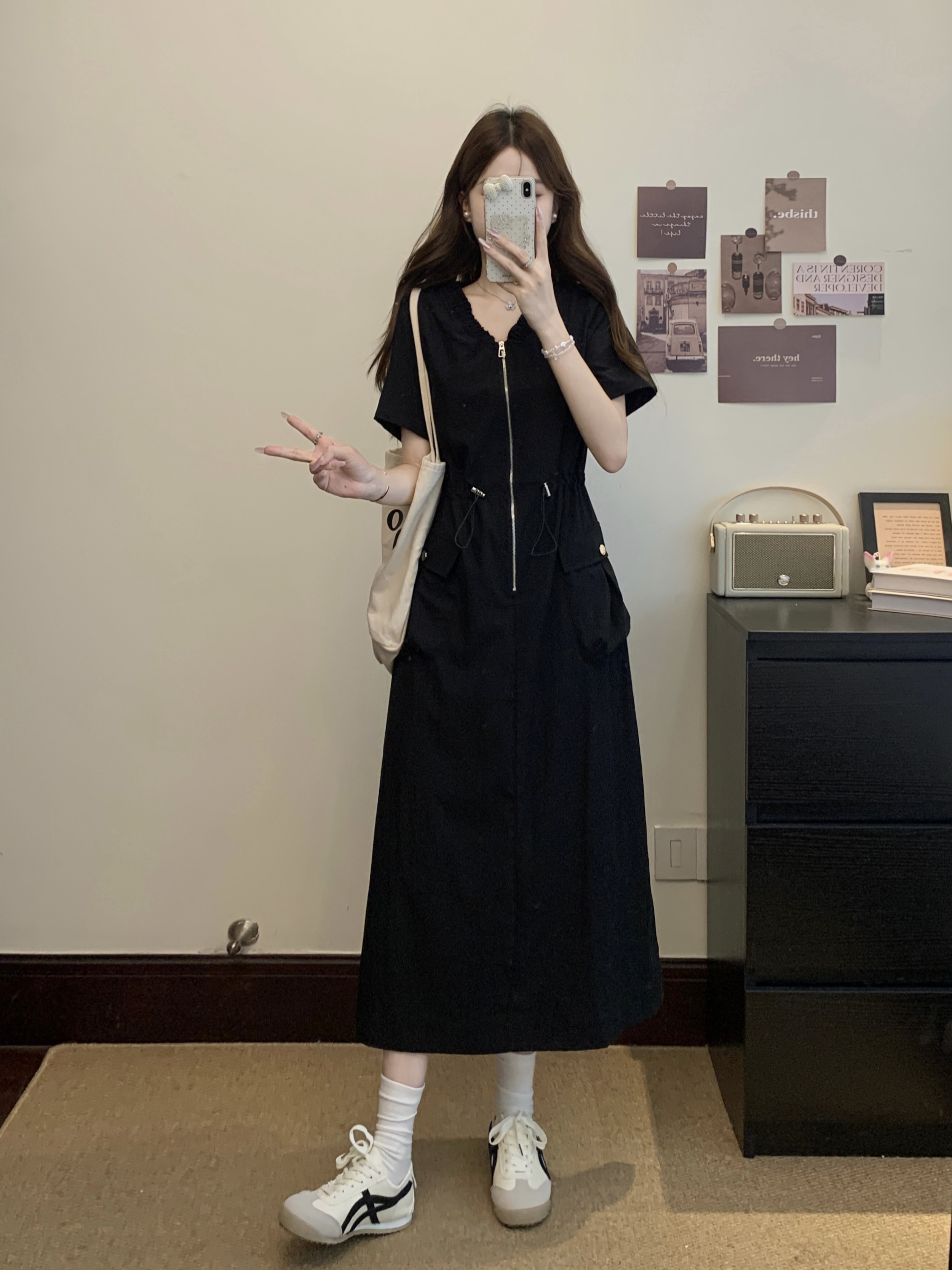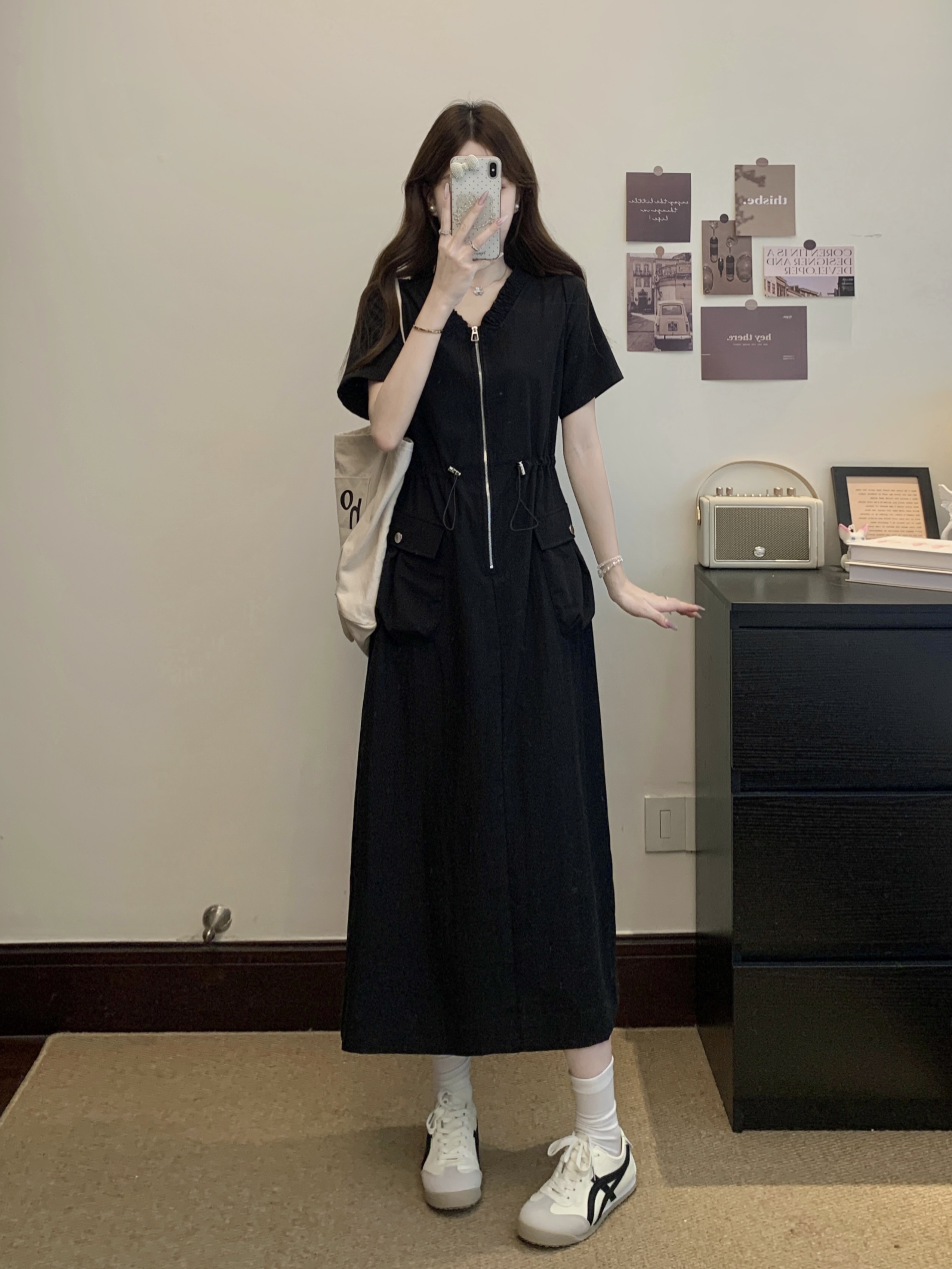 RY3126# 实拍 大码女装胖mm新款收腰显瘦工装连衣裙