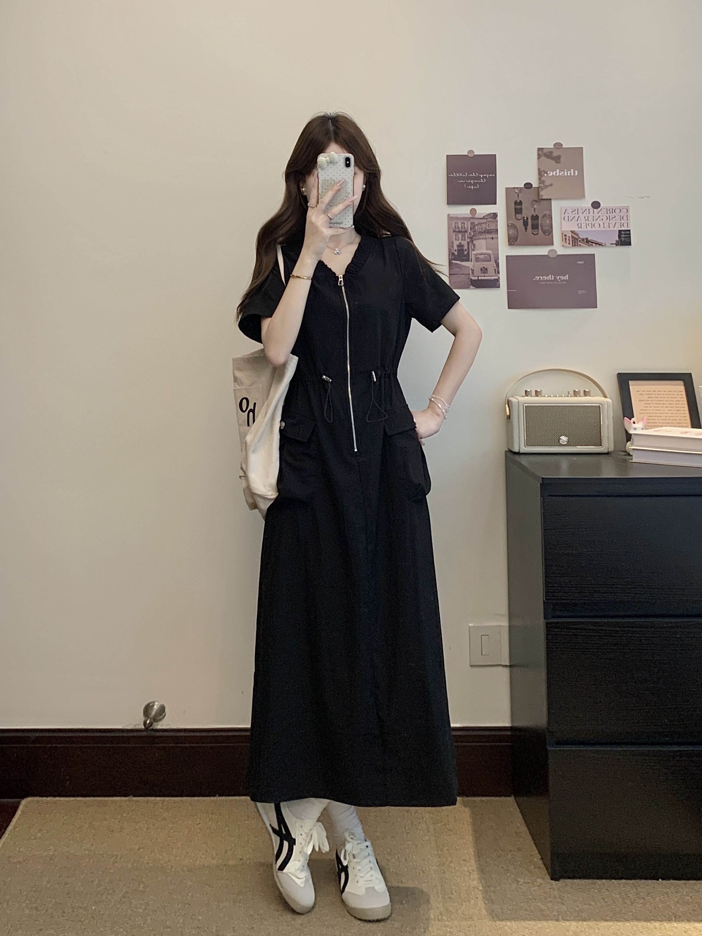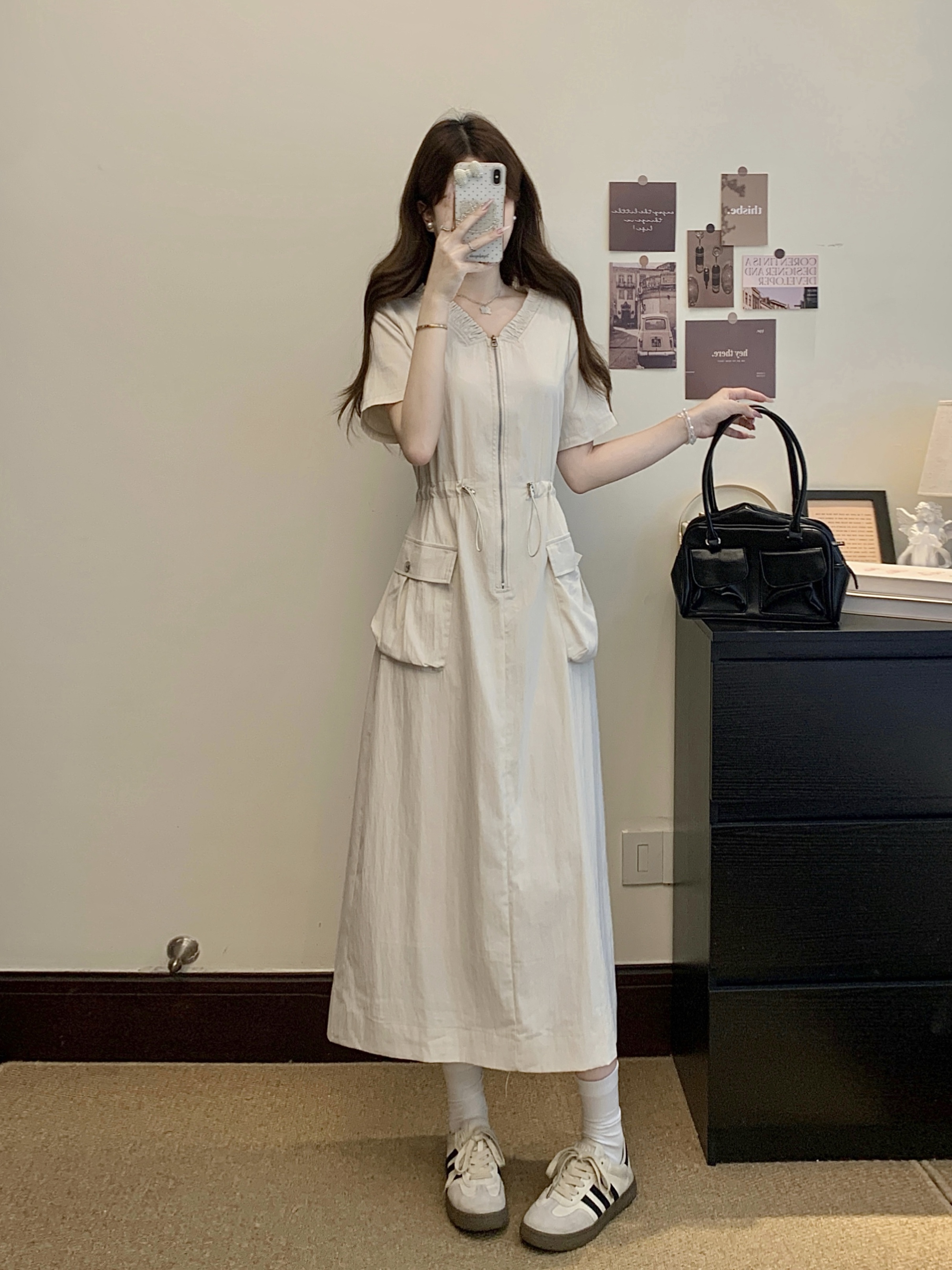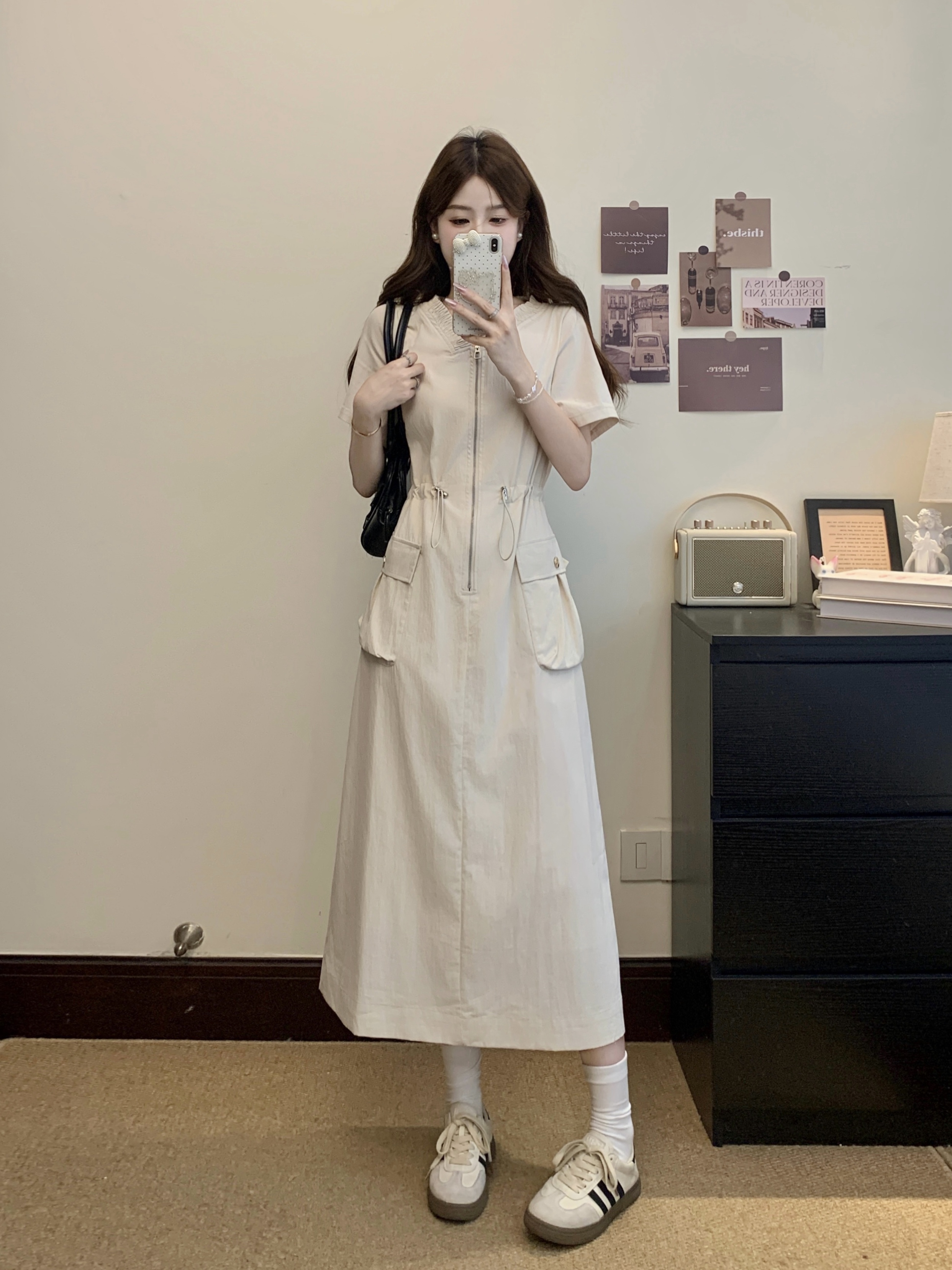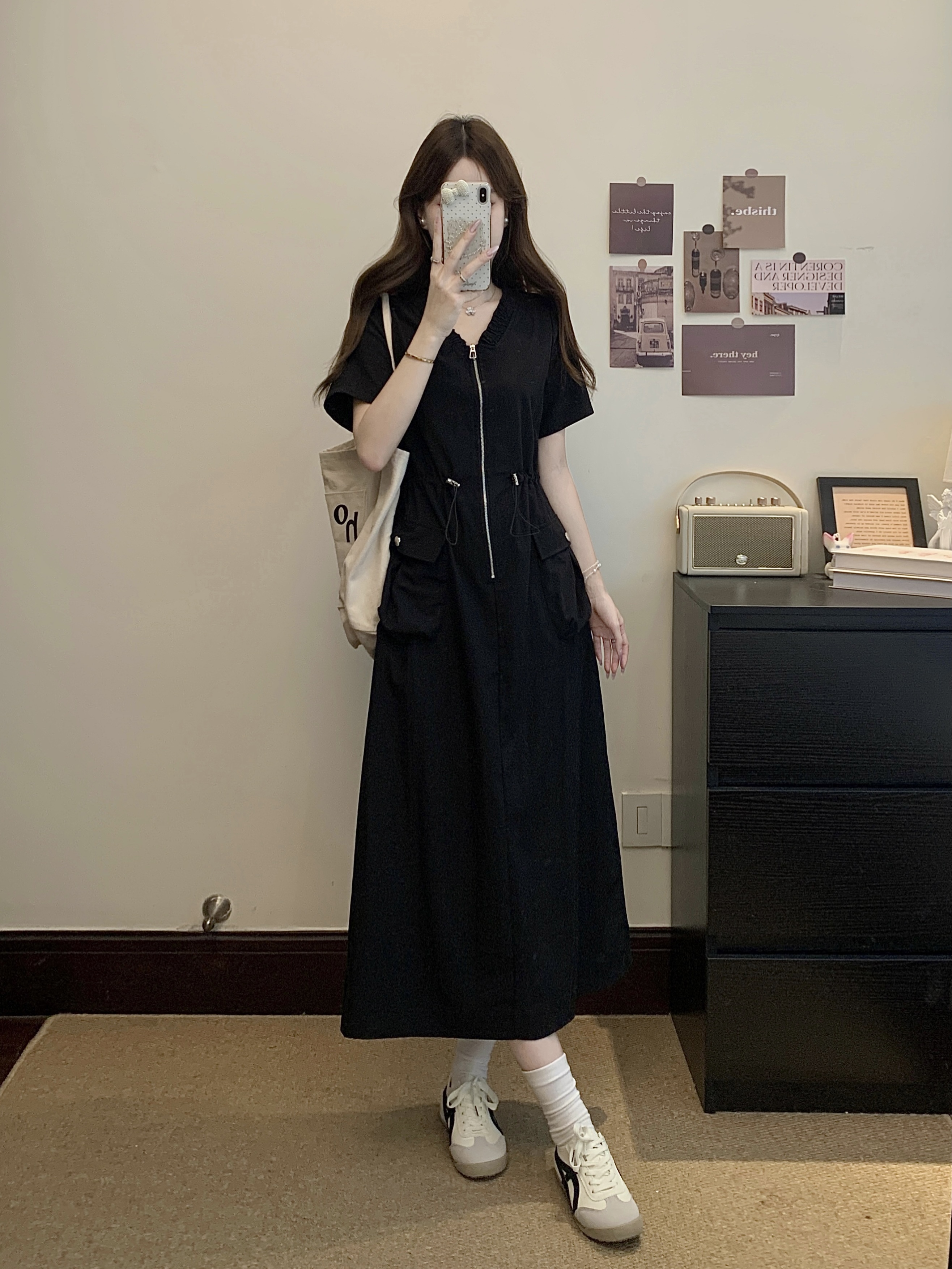 RY3126# 实拍 大码女装胖mm新款收腰显瘦工装连衣裙