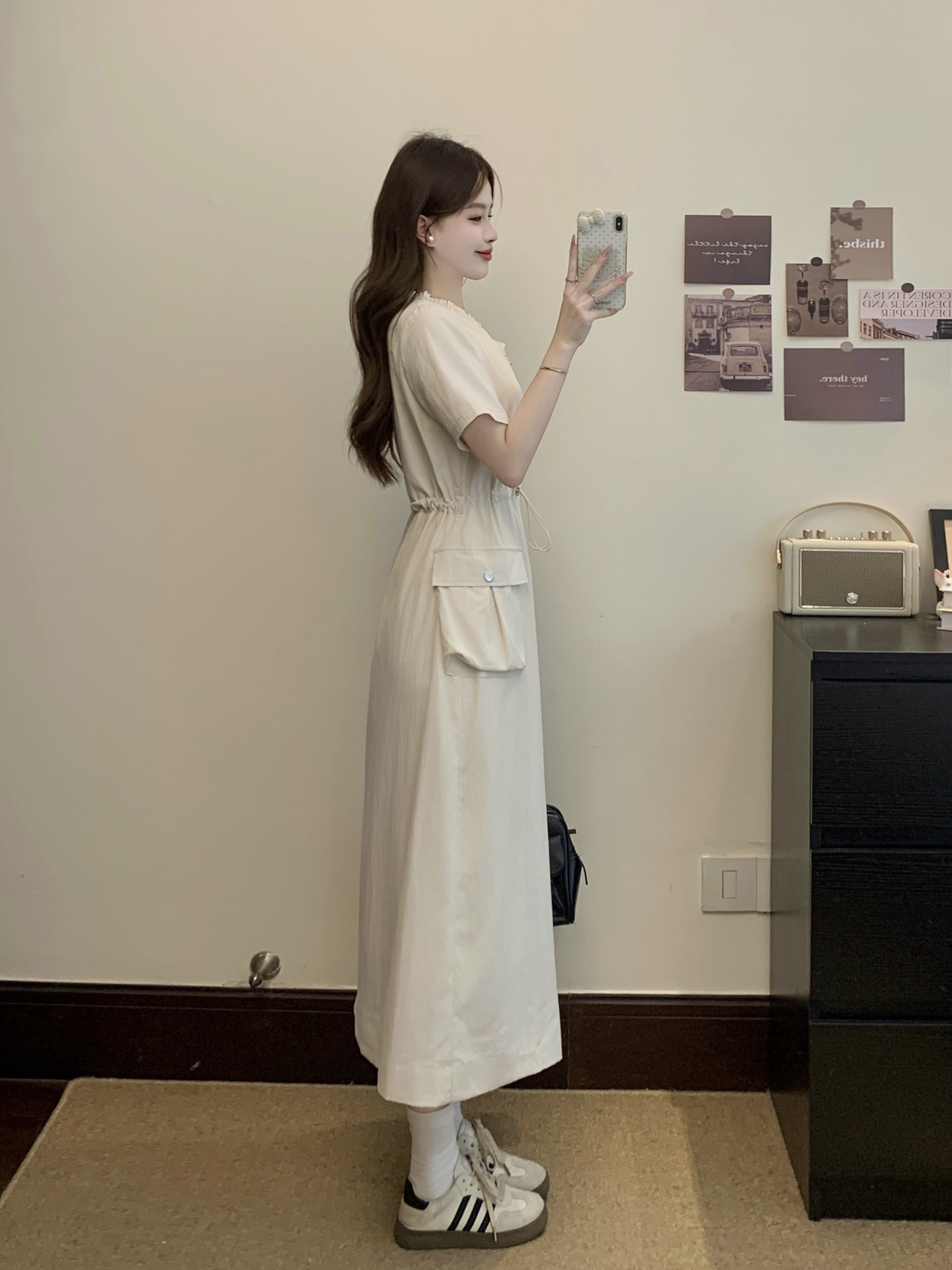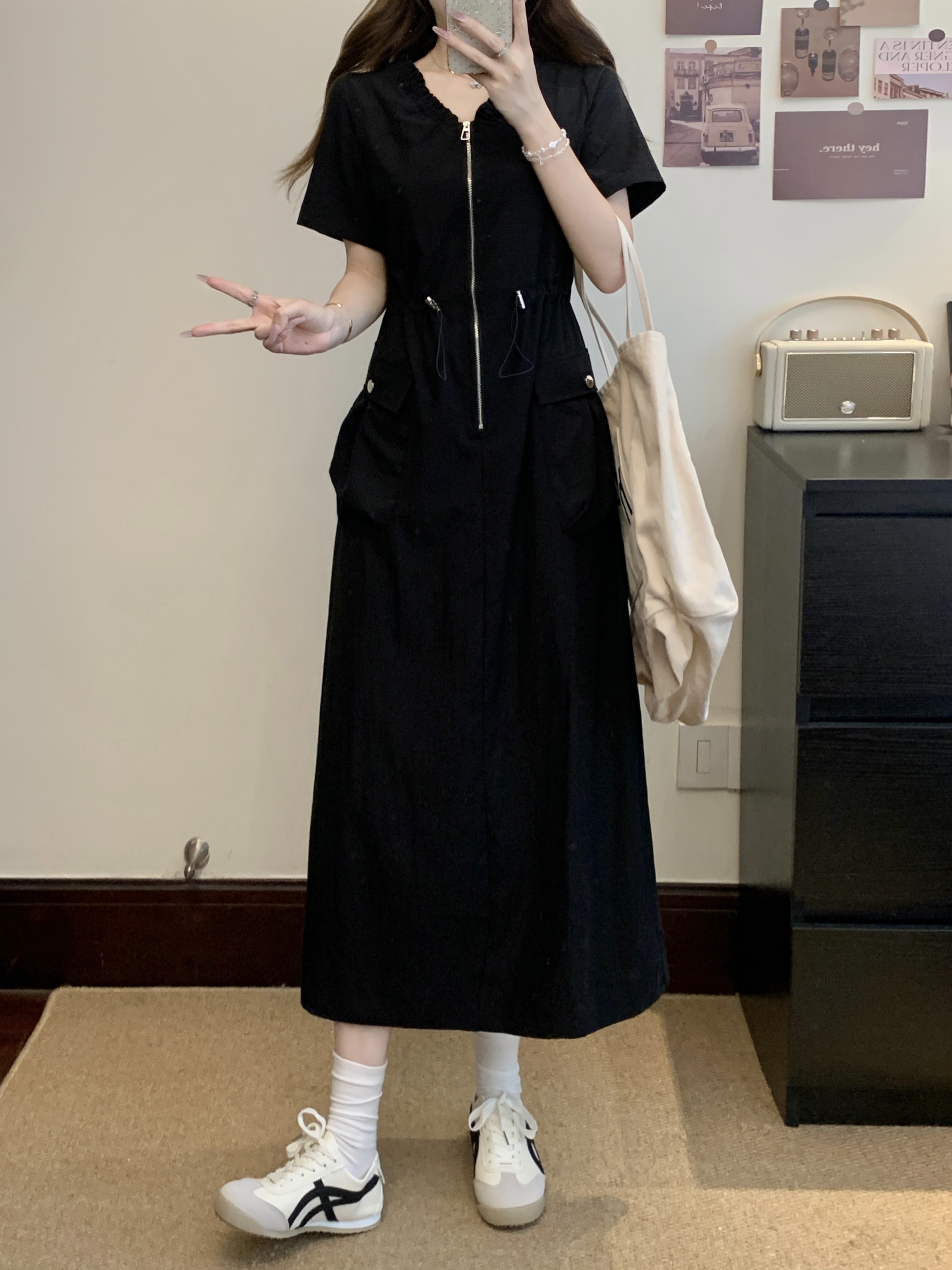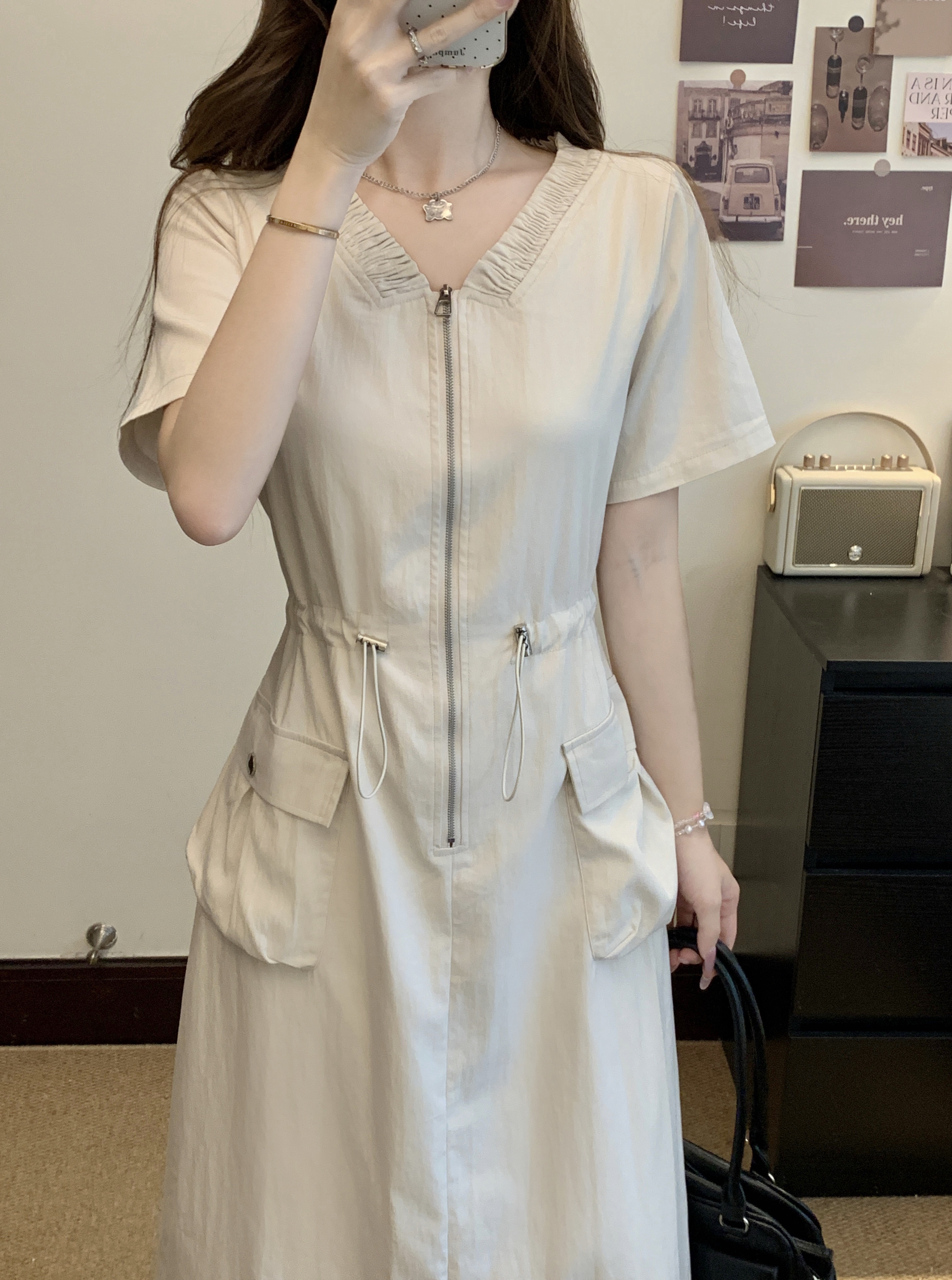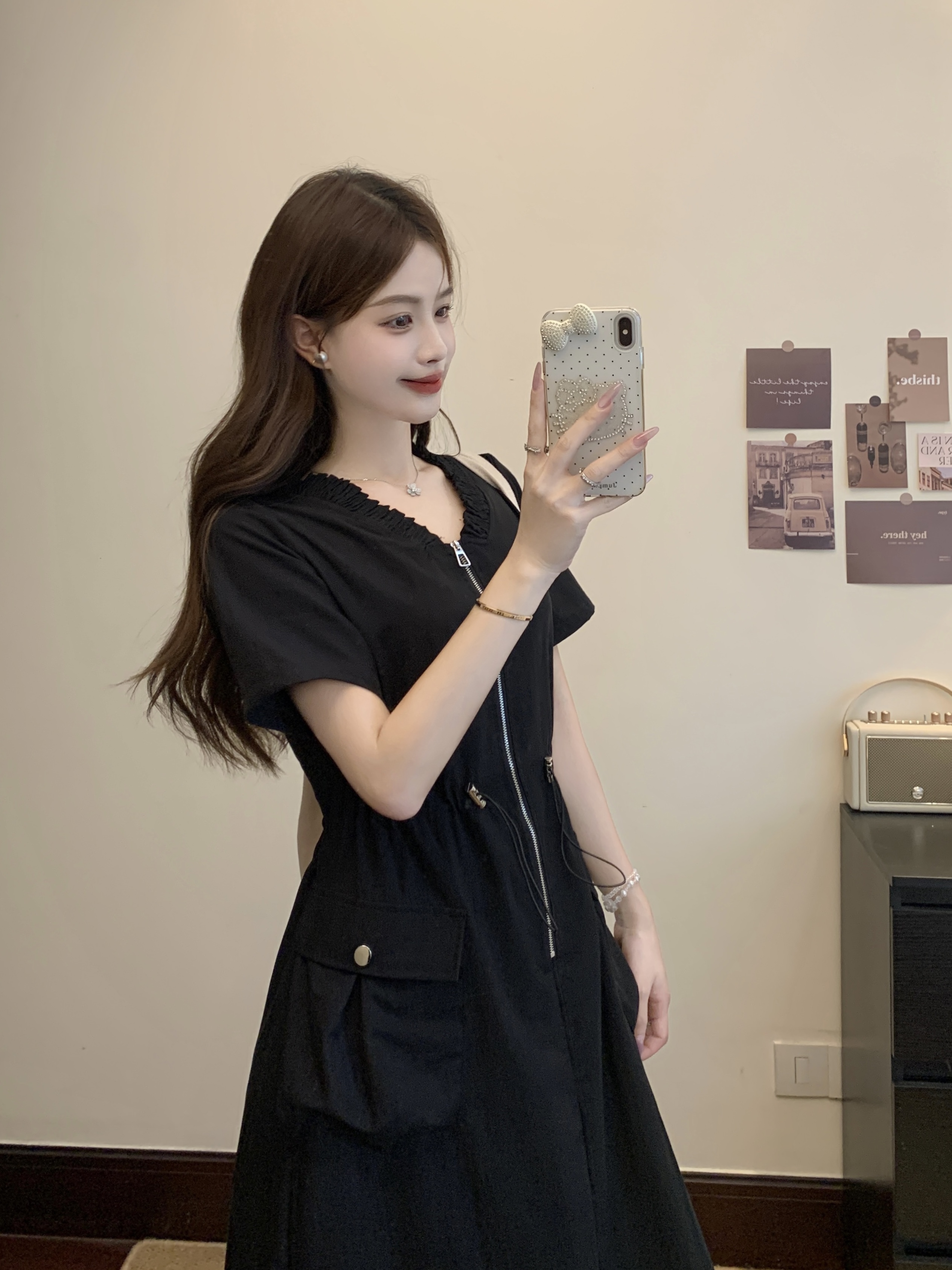 RY3126# 实拍 大码女装胖mm新款收腰显瘦工装连衣裙