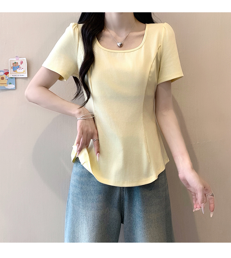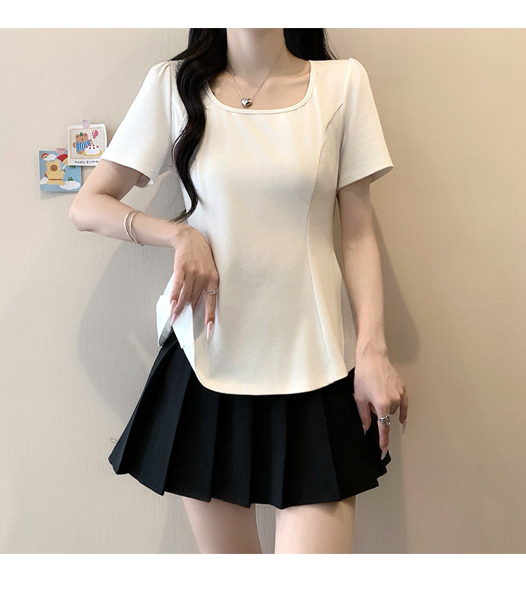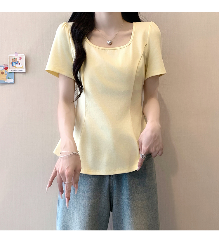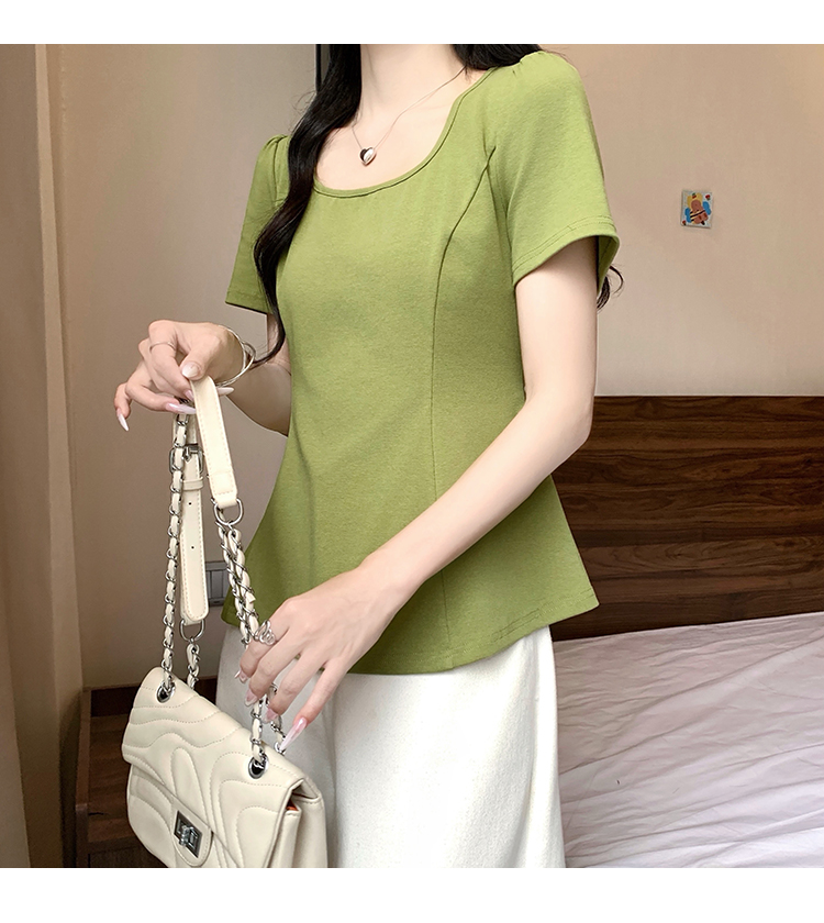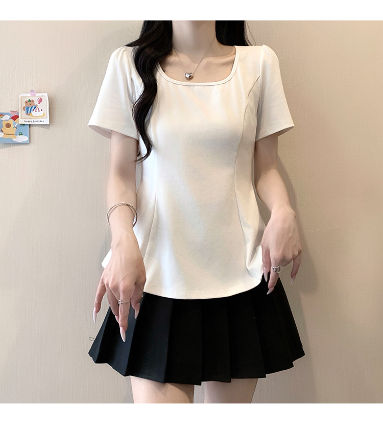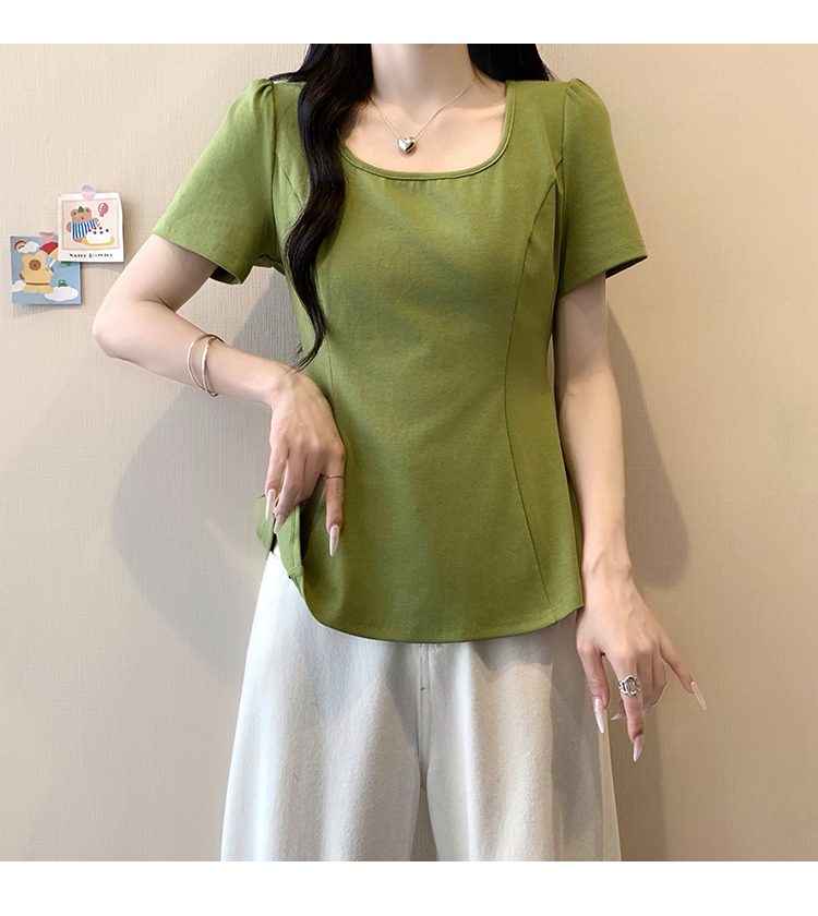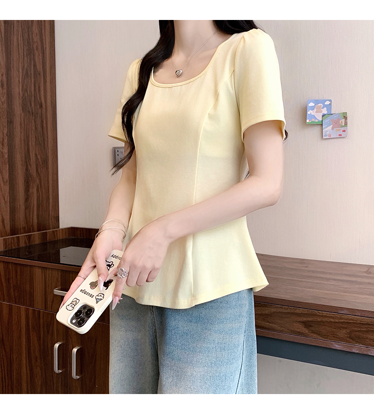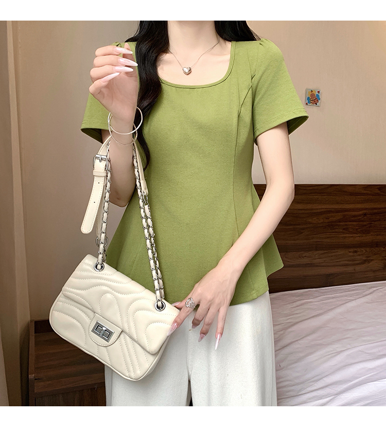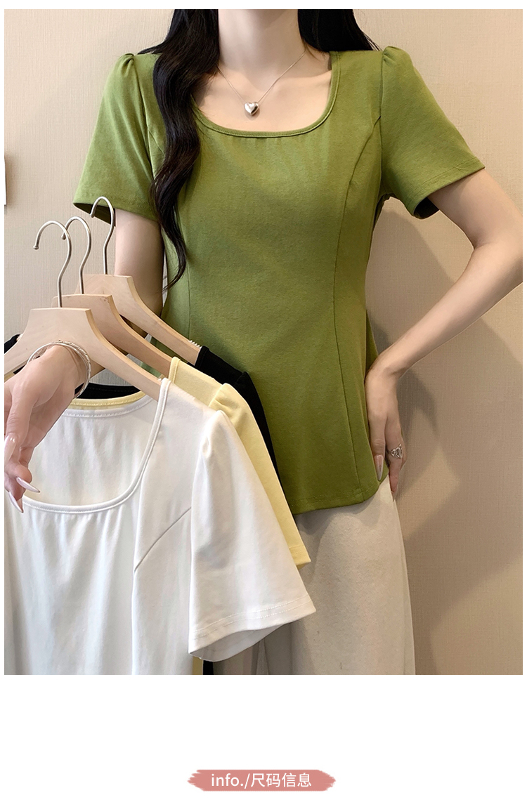 RY3130# 实价实拍2026夏装新款胖mm大码女时尚纯色设计感U领别致短袖T恤