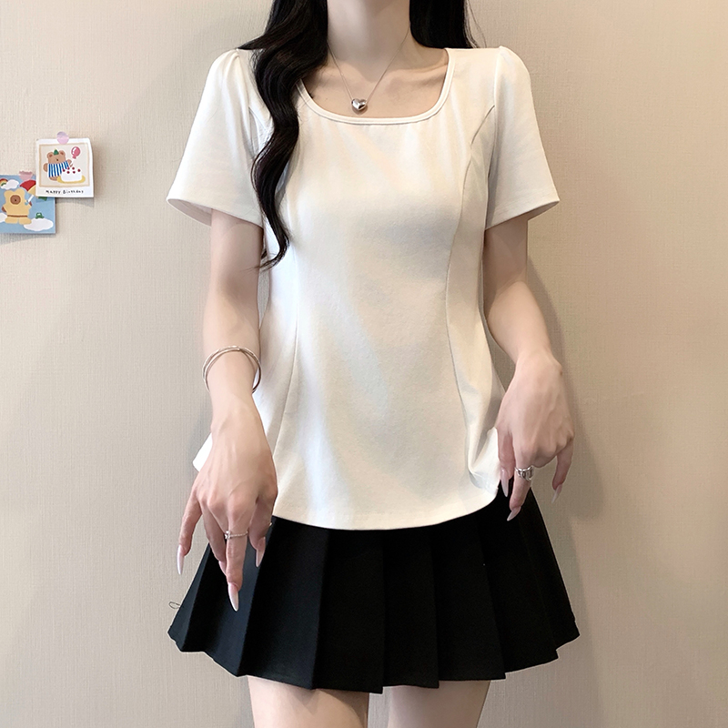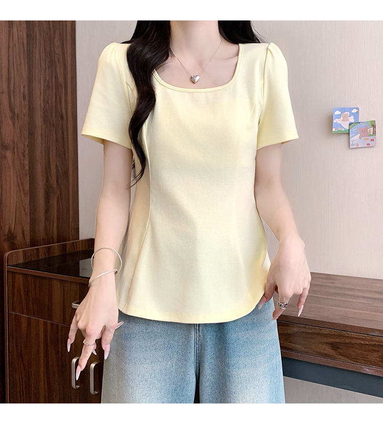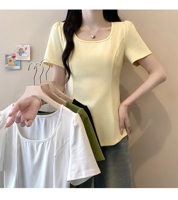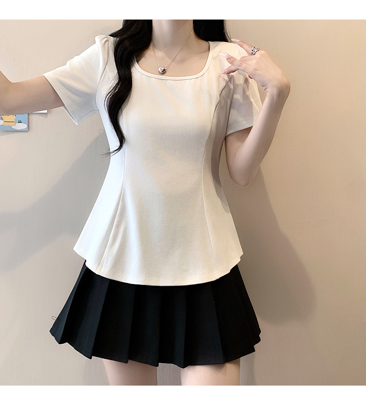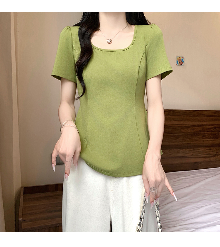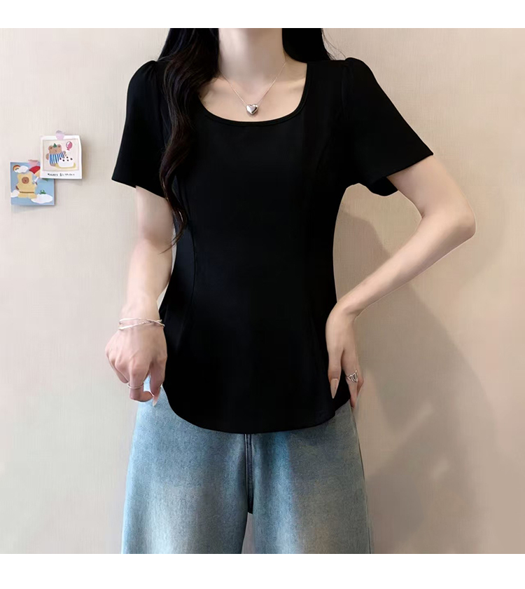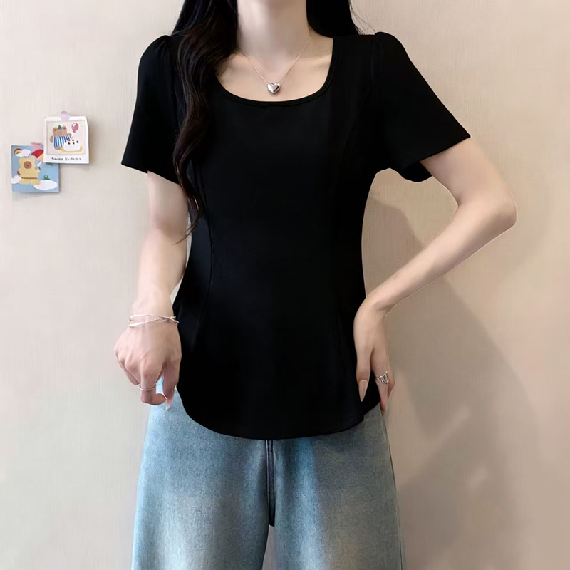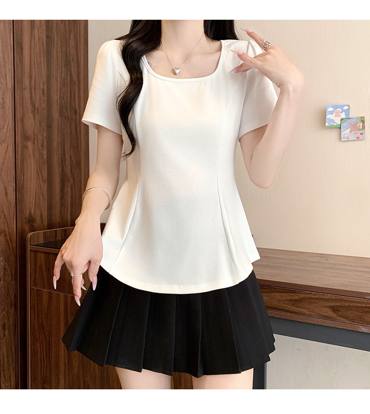 RY3130# 实价实拍2026夏装新款胖mm大码女时尚纯色设计感U领别致短袖T恤
