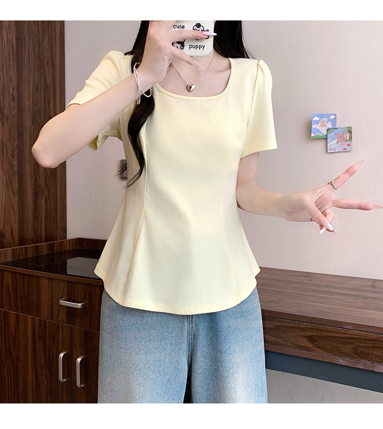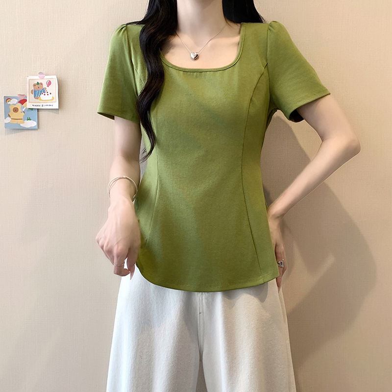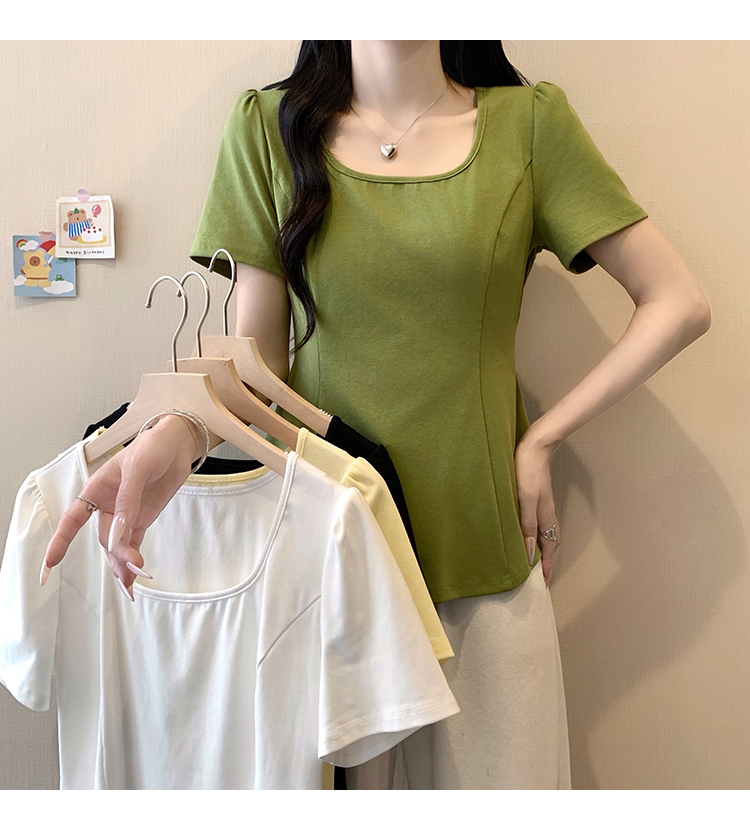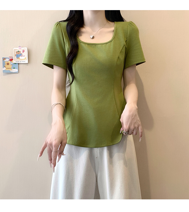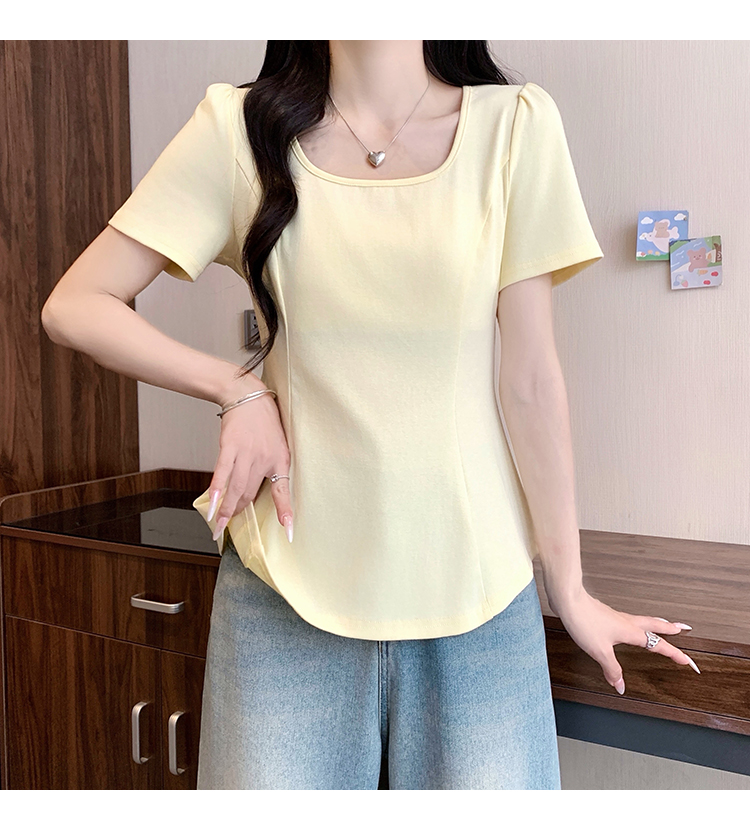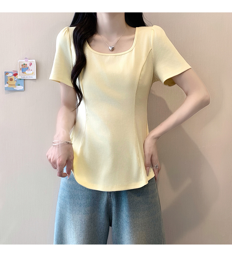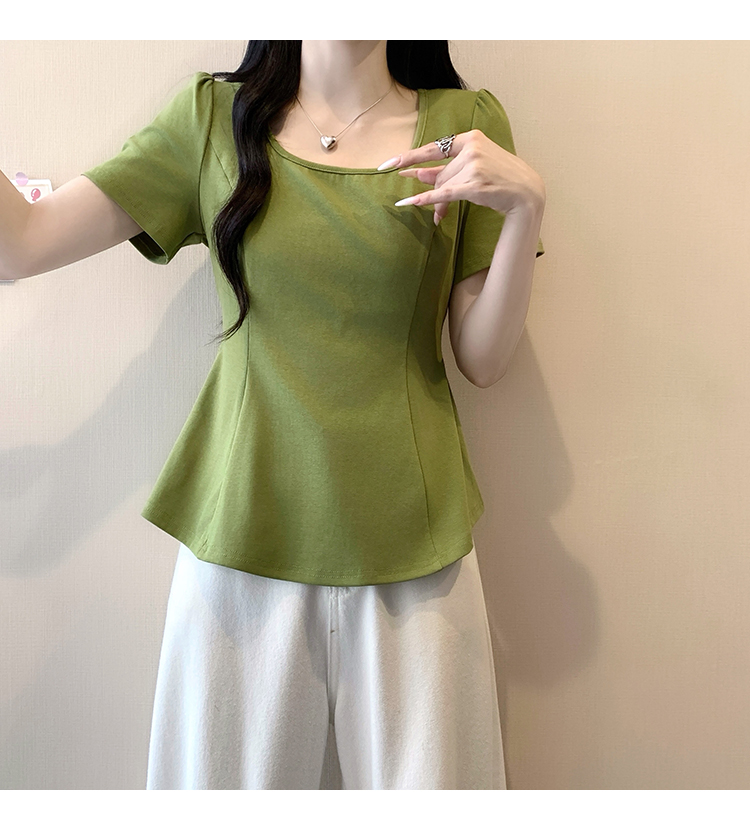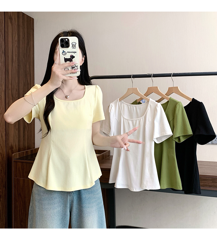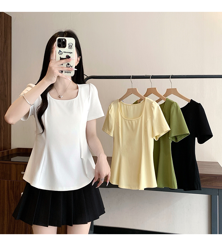 RY3130# 实价实拍2026夏装新款胖mm大码女时尚纯色设计感U领别致短袖T恤