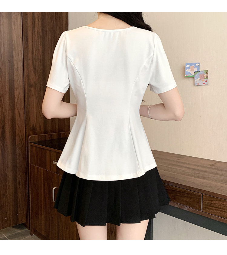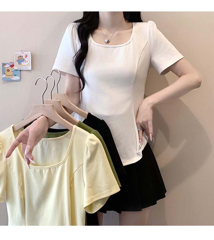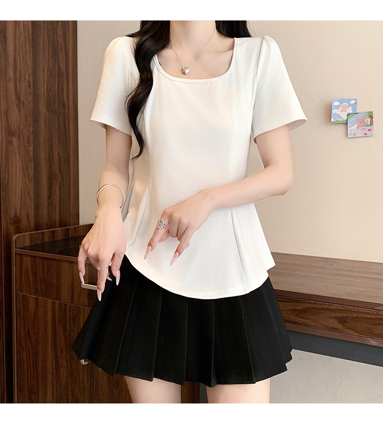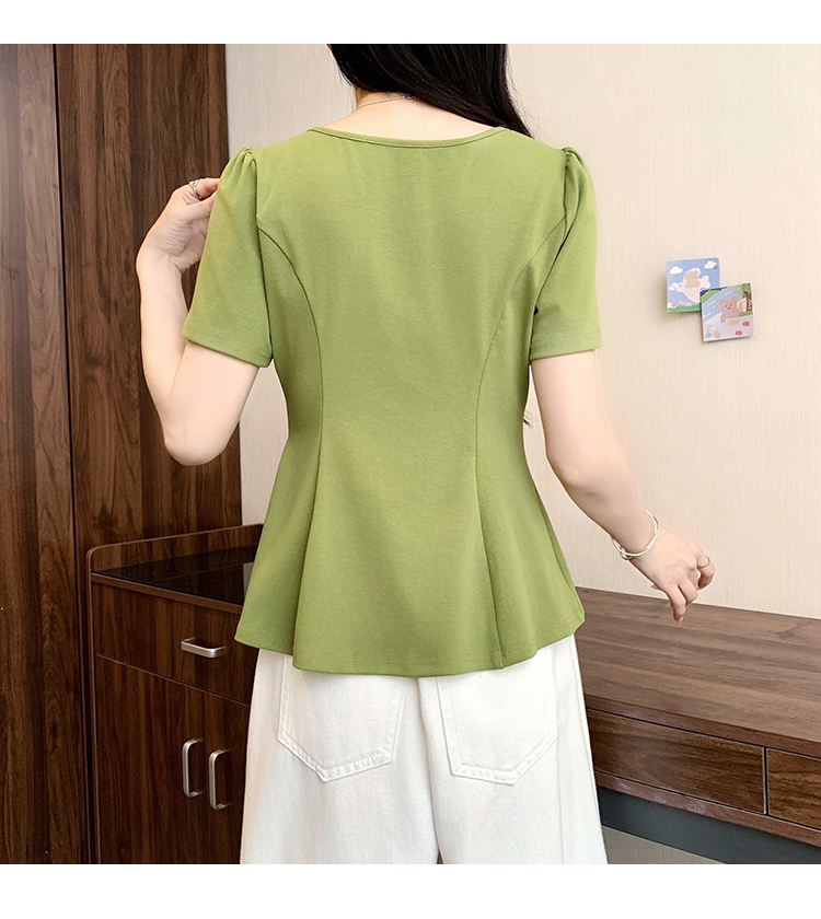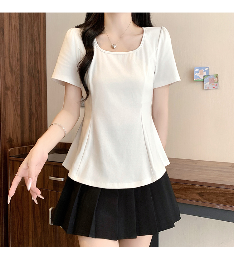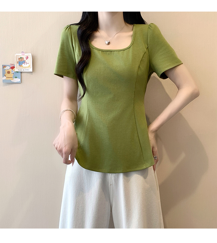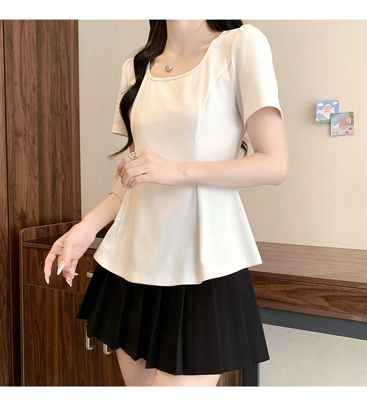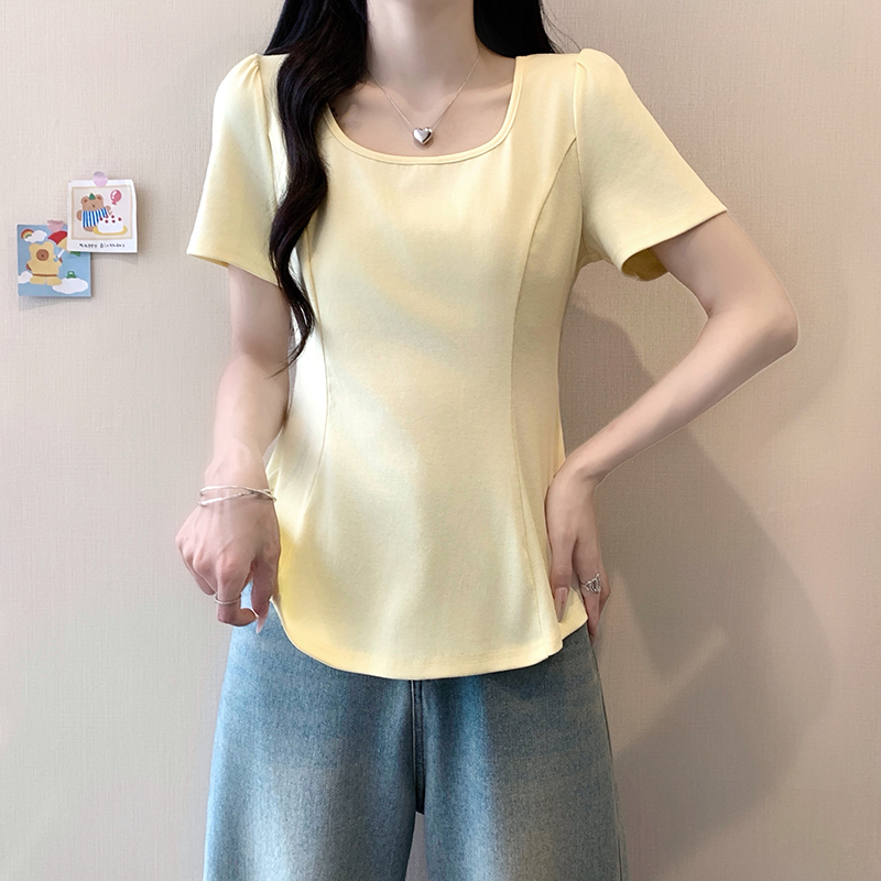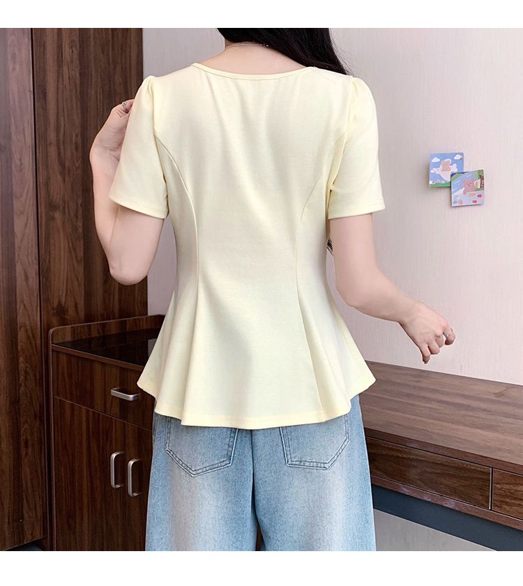 RY3130# 实价实拍2026夏装新款胖mm大码女时尚纯色设计感U领别致短袖T恤
