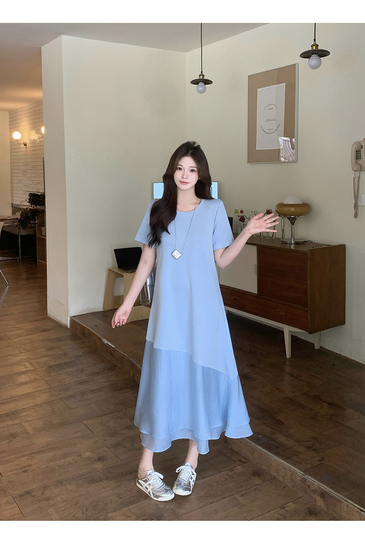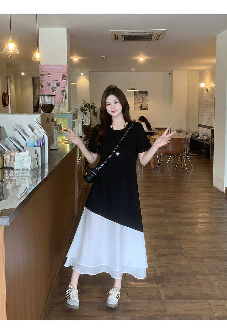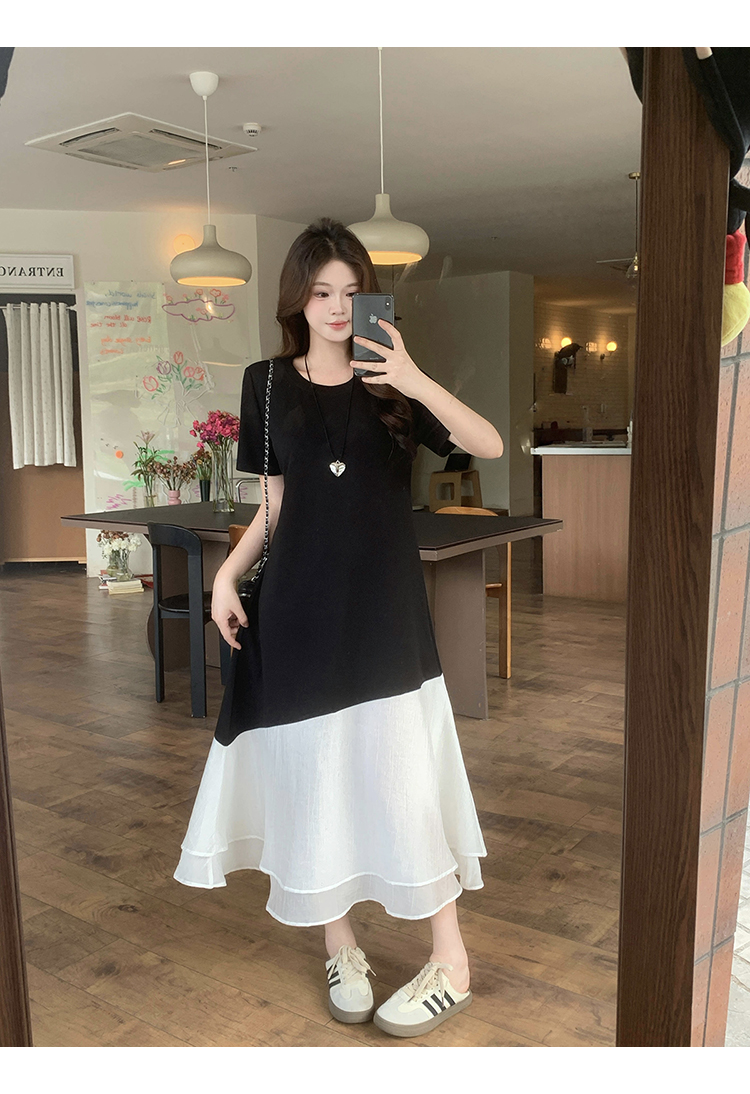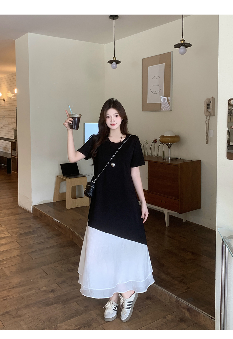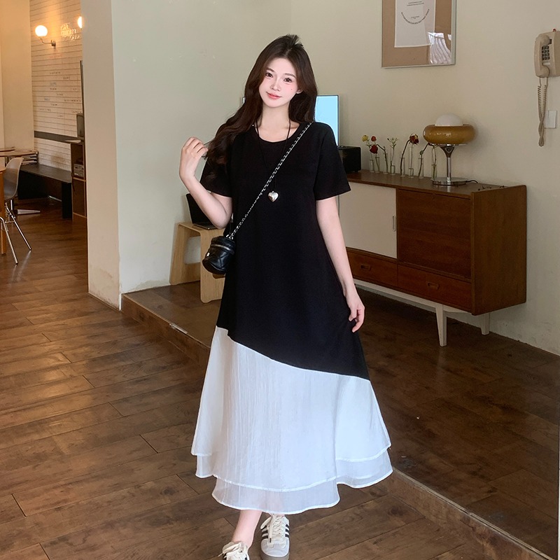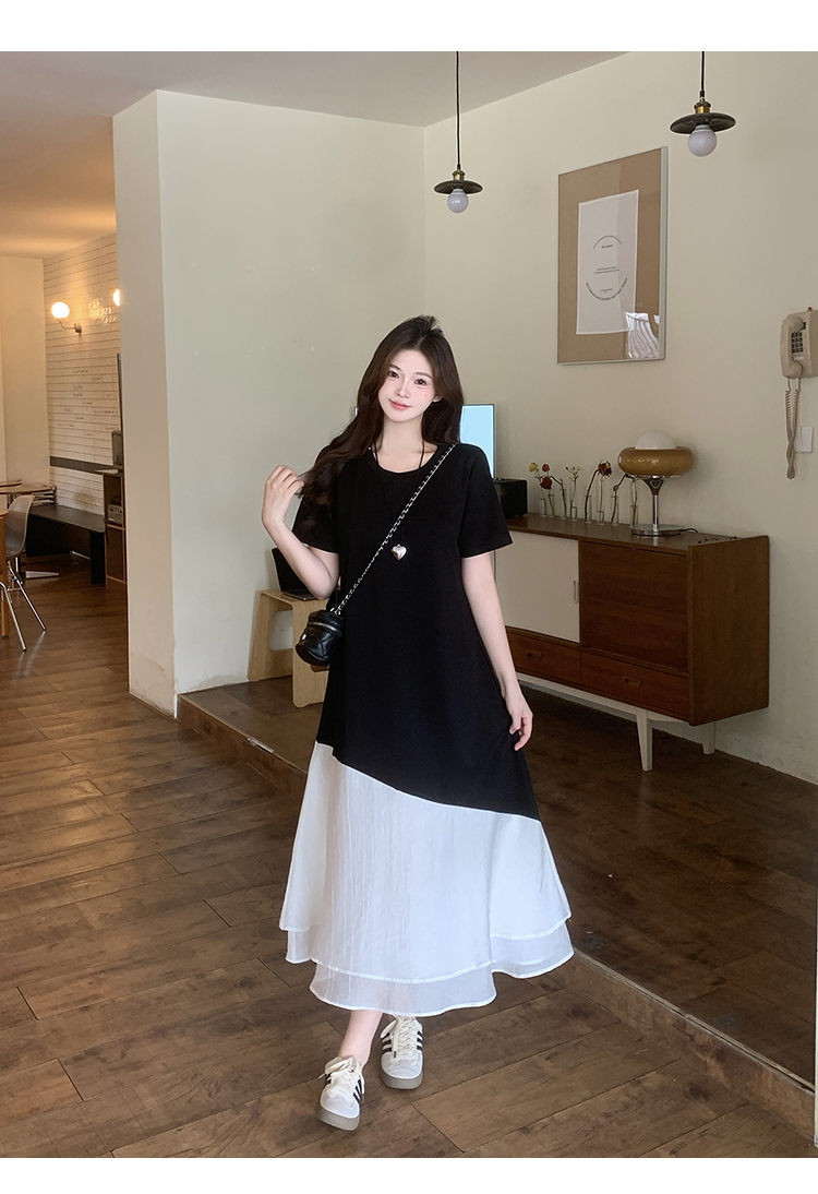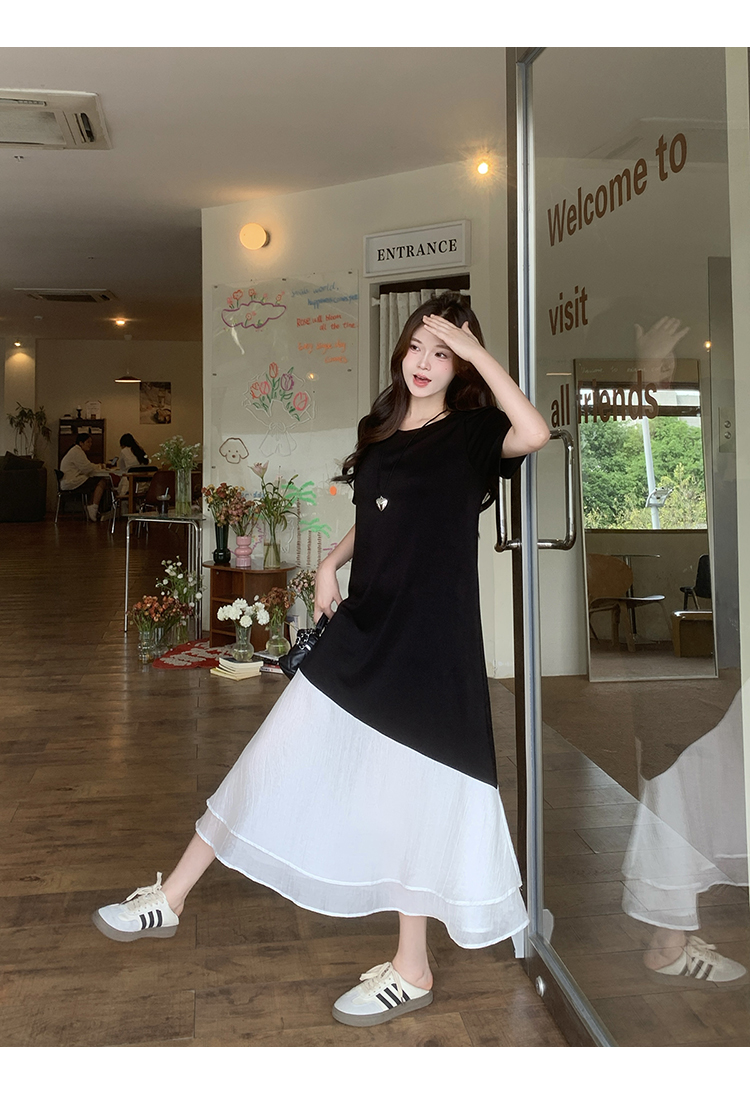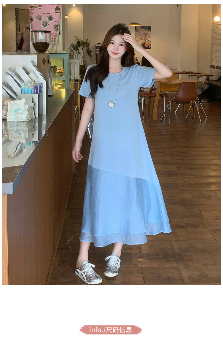 RY3136# 实拍2026夏装新款胖mm大码女慵懒风别致拼接宽松气质显瘦连衣裙