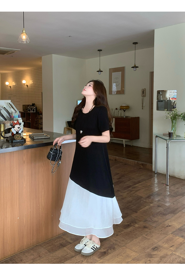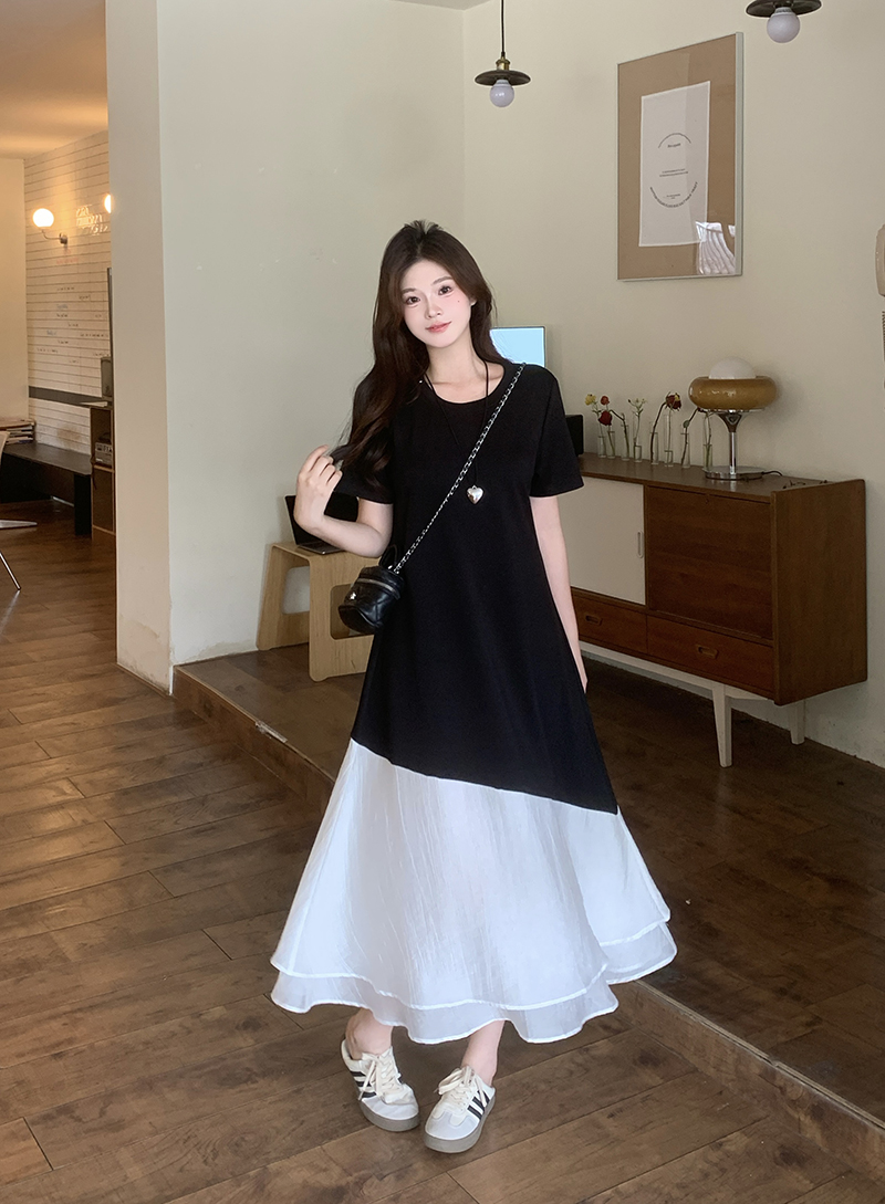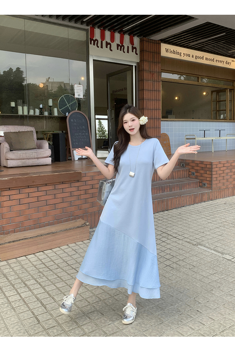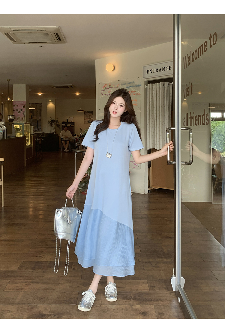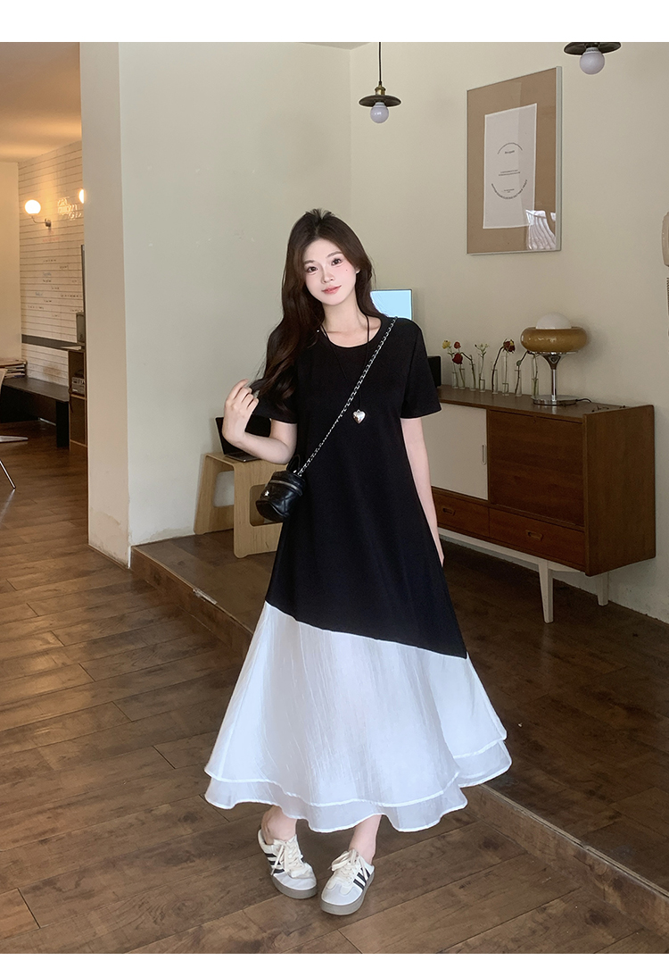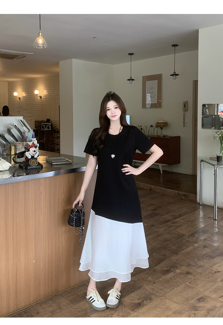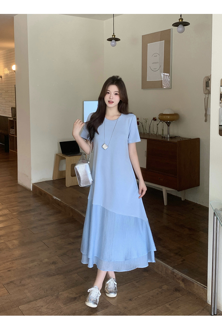 RY3136# 实拍2026夏装新款胖mm大码女慵懒风别致拼接宽松气质显瘦连衣裙