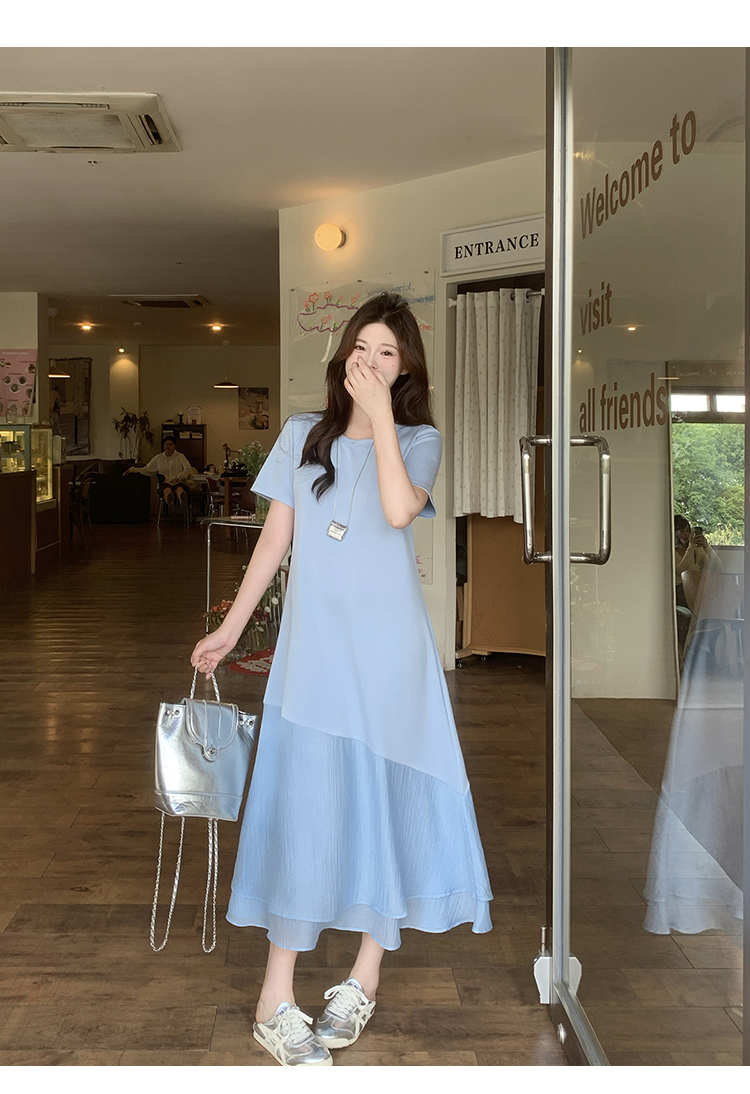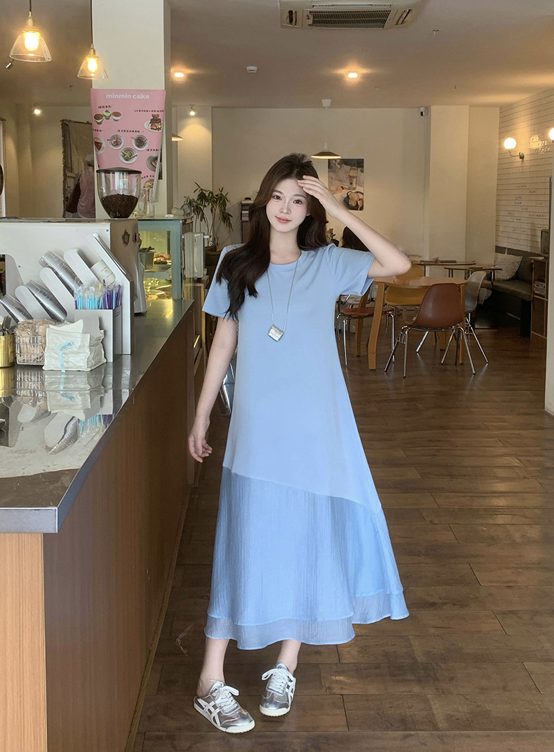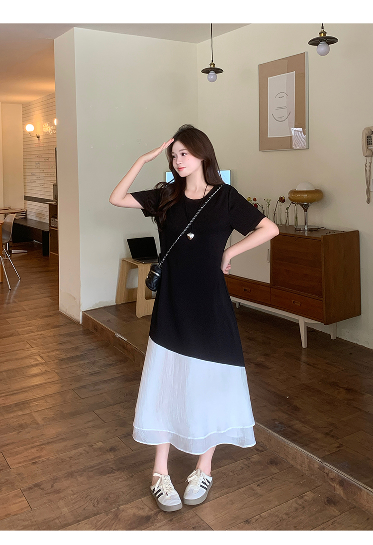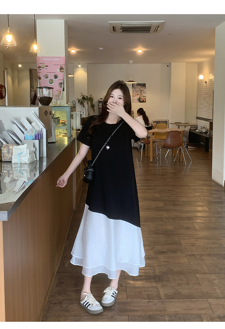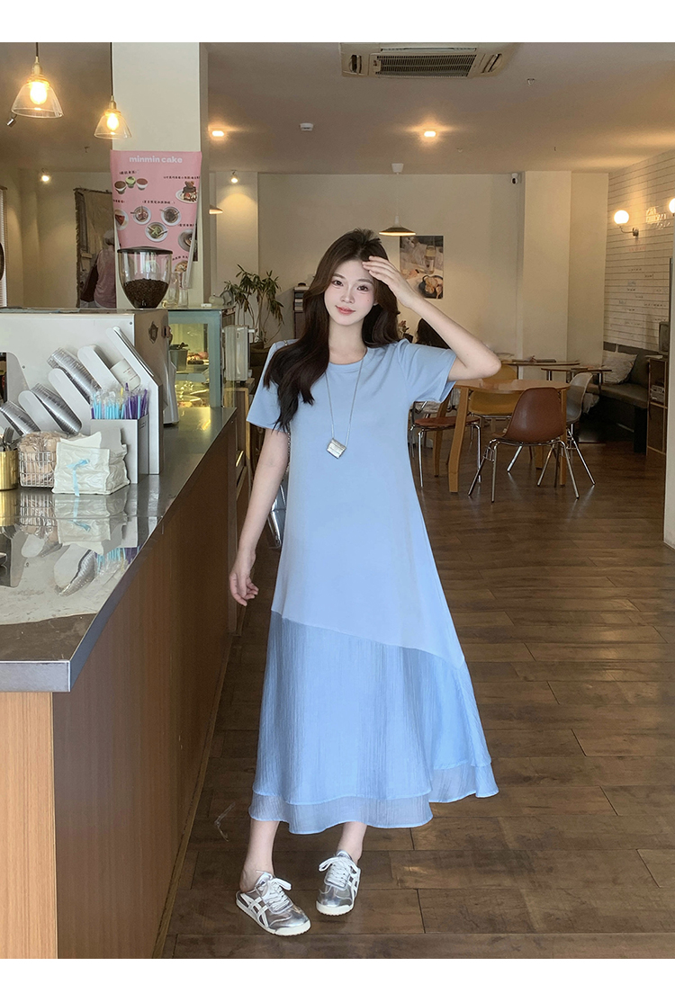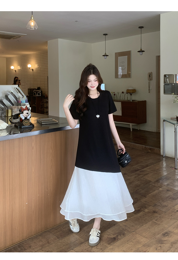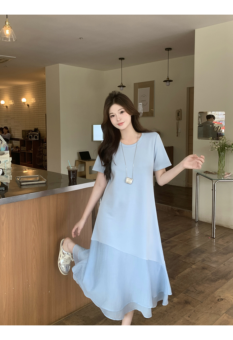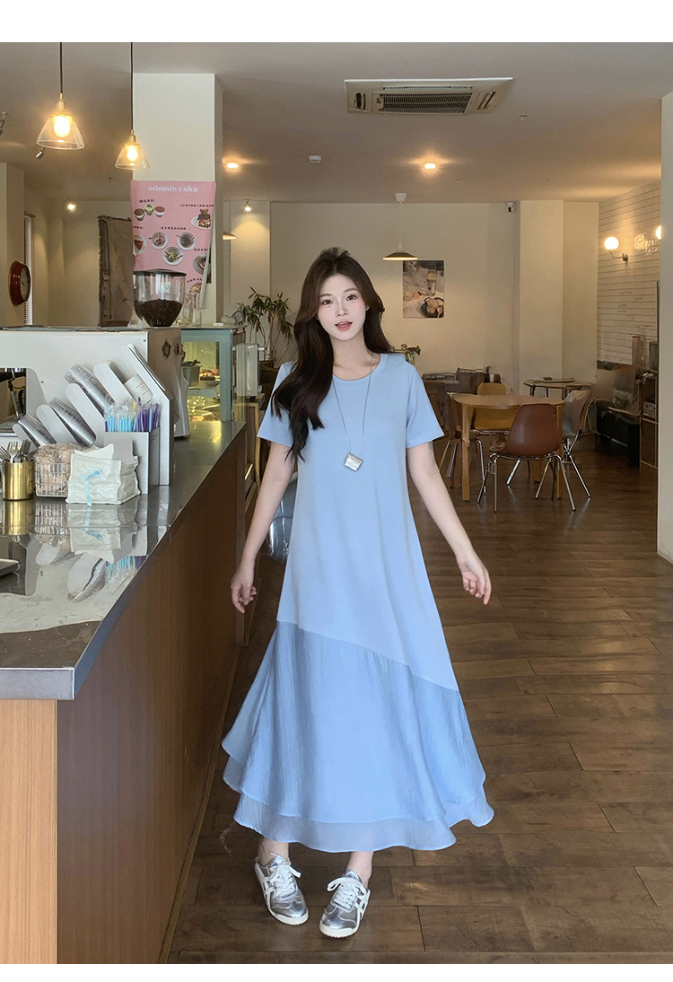 RY3136# 实拍2026夏装新款胖mm大码女慵懒风别致拼接宽松气质显瘦连衣裙