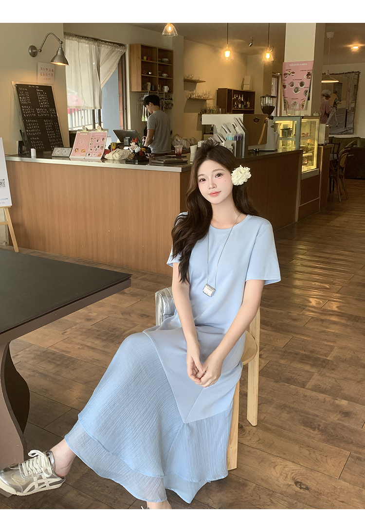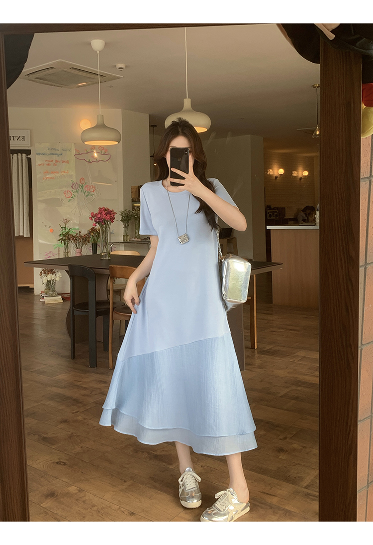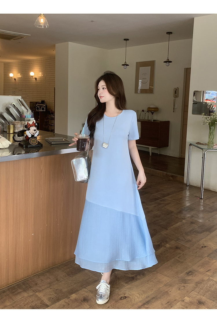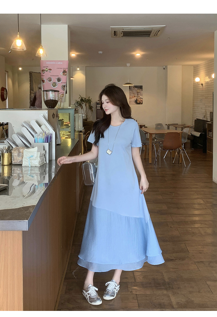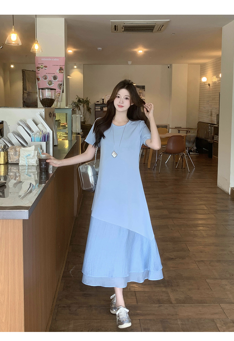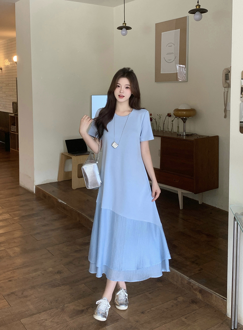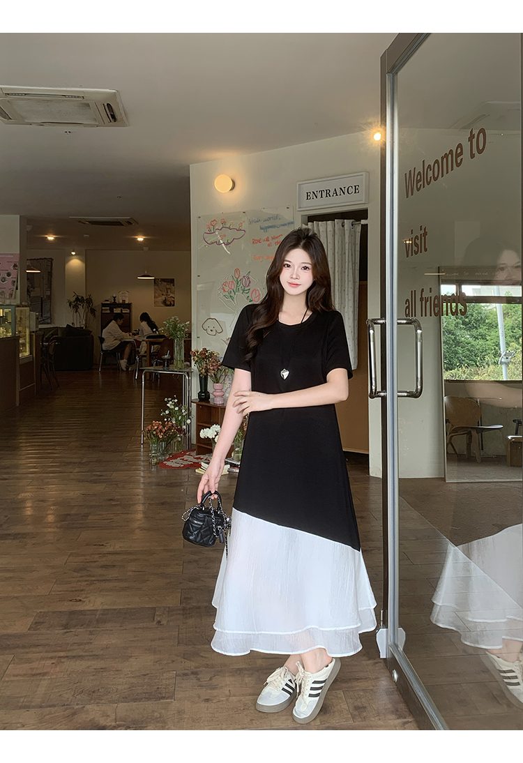 RY3136# 实拍2026夏装新款胖mm大码女慵懒风别致拼接宽松气质显瘦连衣裙