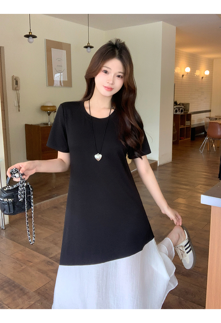 RY3137# 实拍2026夏装新款胖mm大码女韩系休闲撞色拼接短袖T恤+...