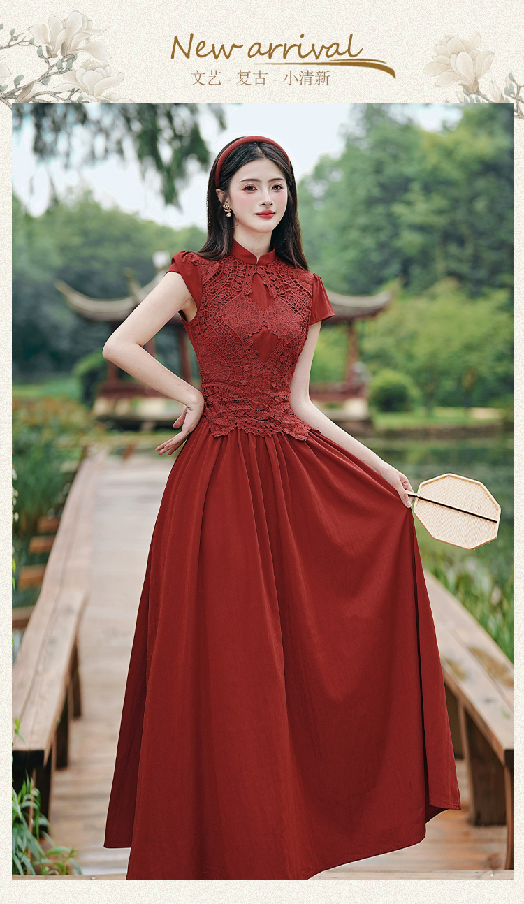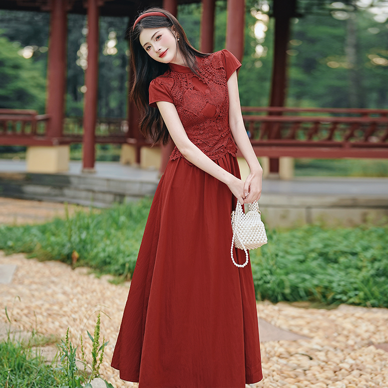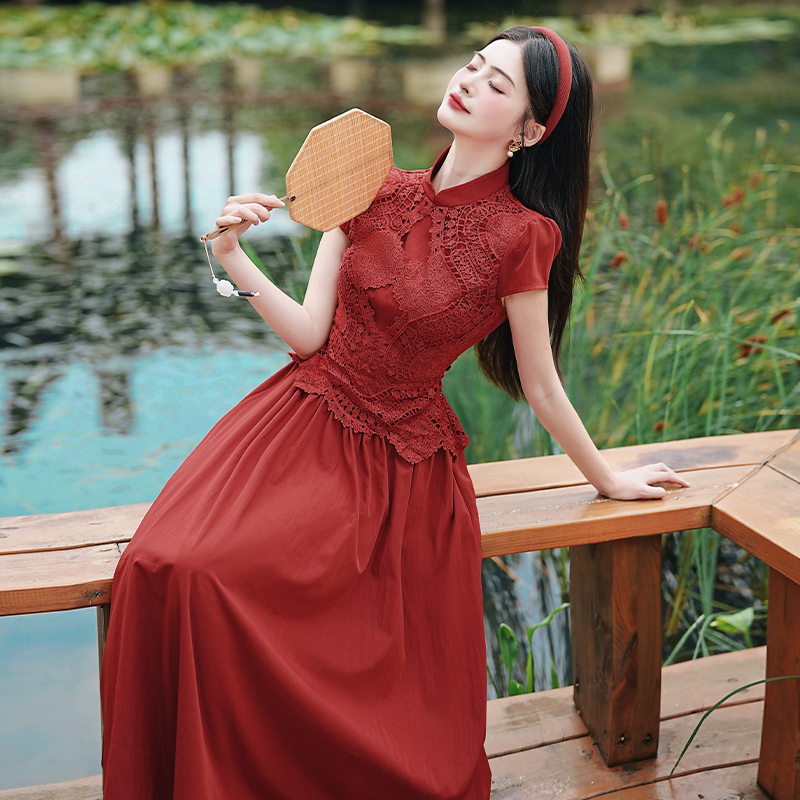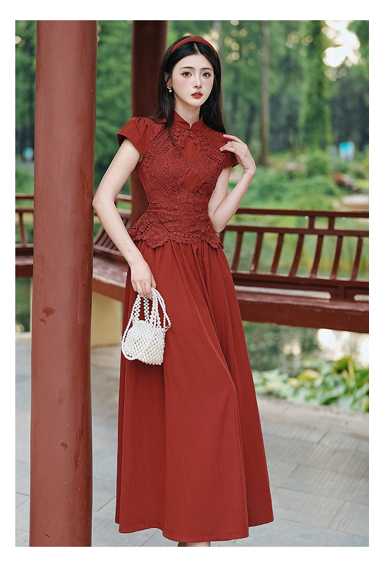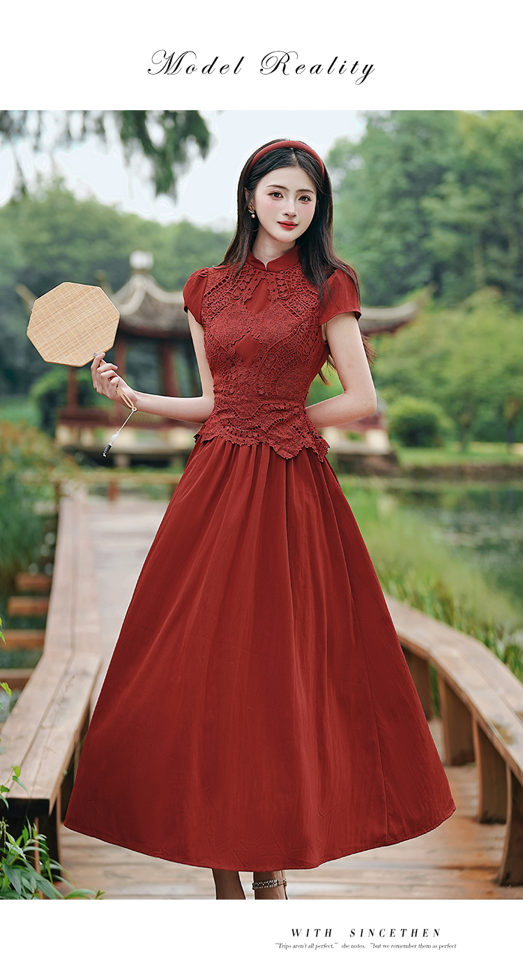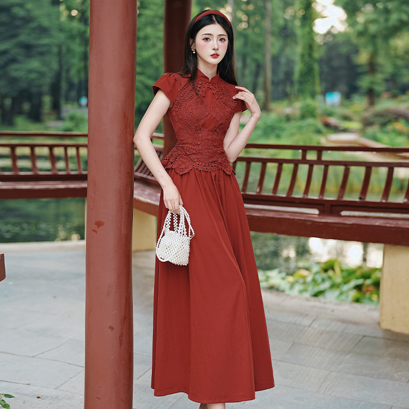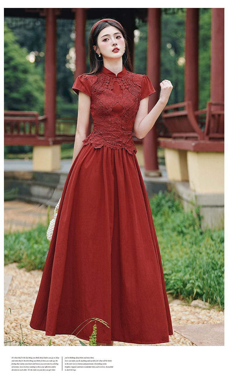 RY3138# 新款实拍 新中式国风连衣裙订婚红色礼服蕾丝拼接敬酒服