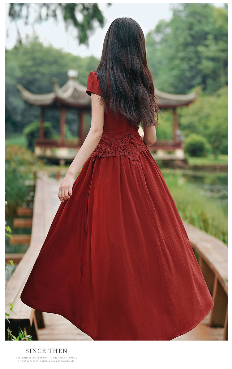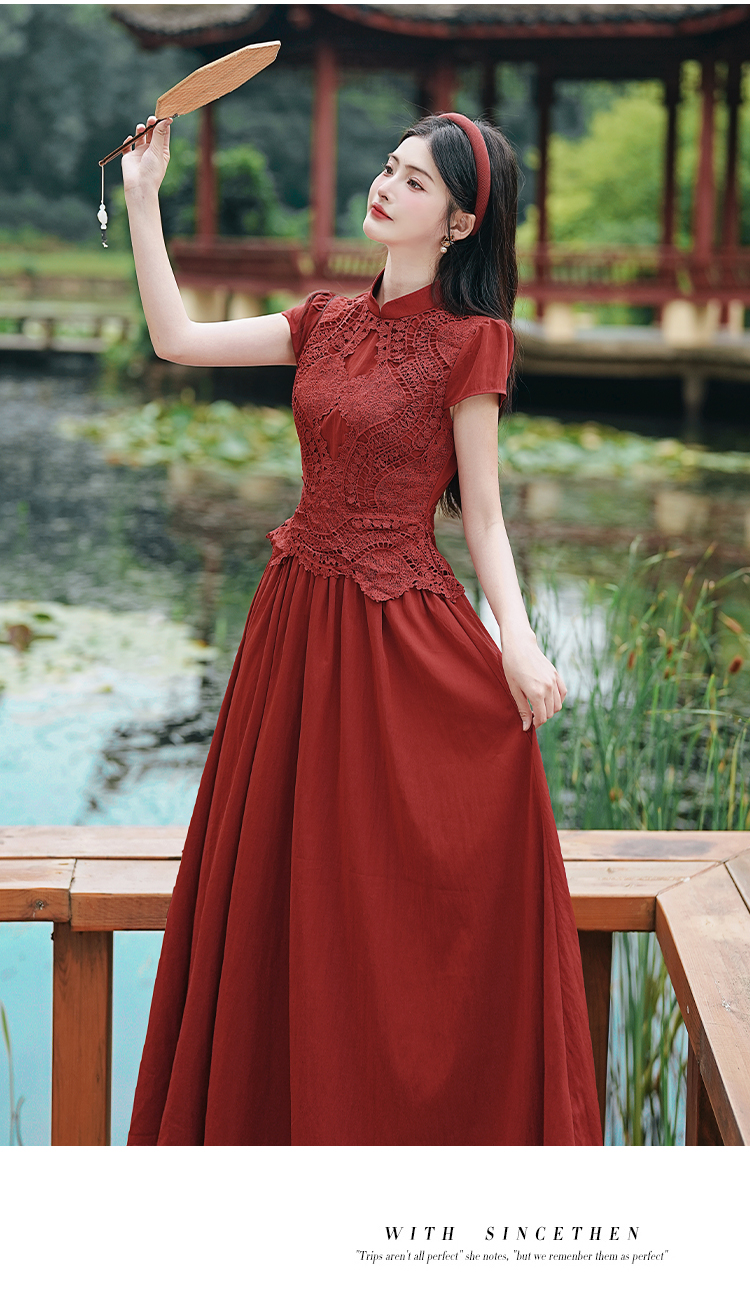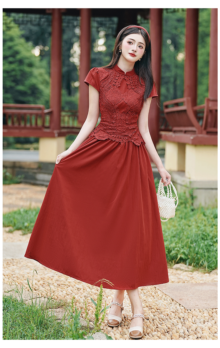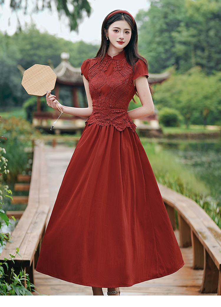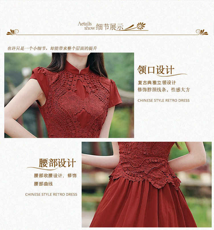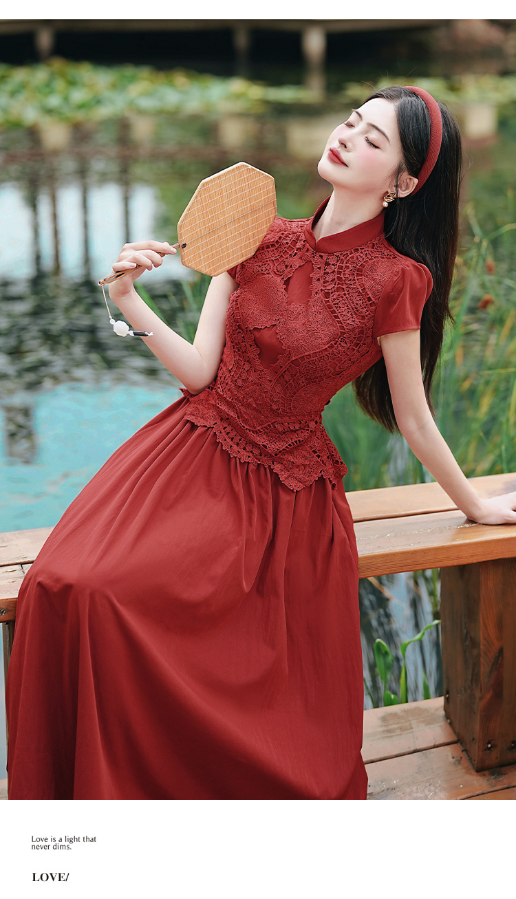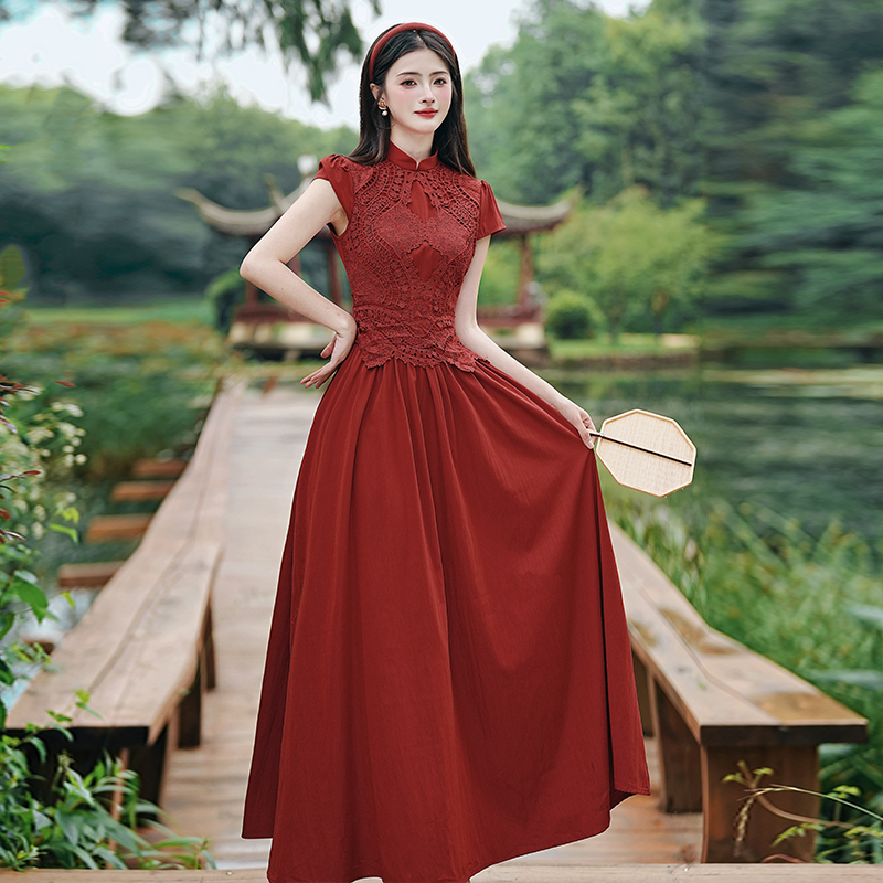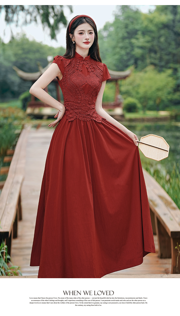 RY3138# 新款实拍 新中式国风连衣裙订婚红色礼服蕾丝拼接敬酒服