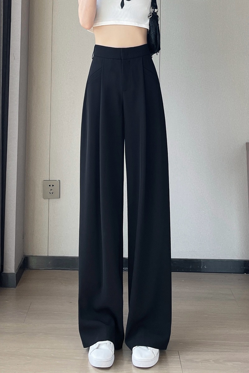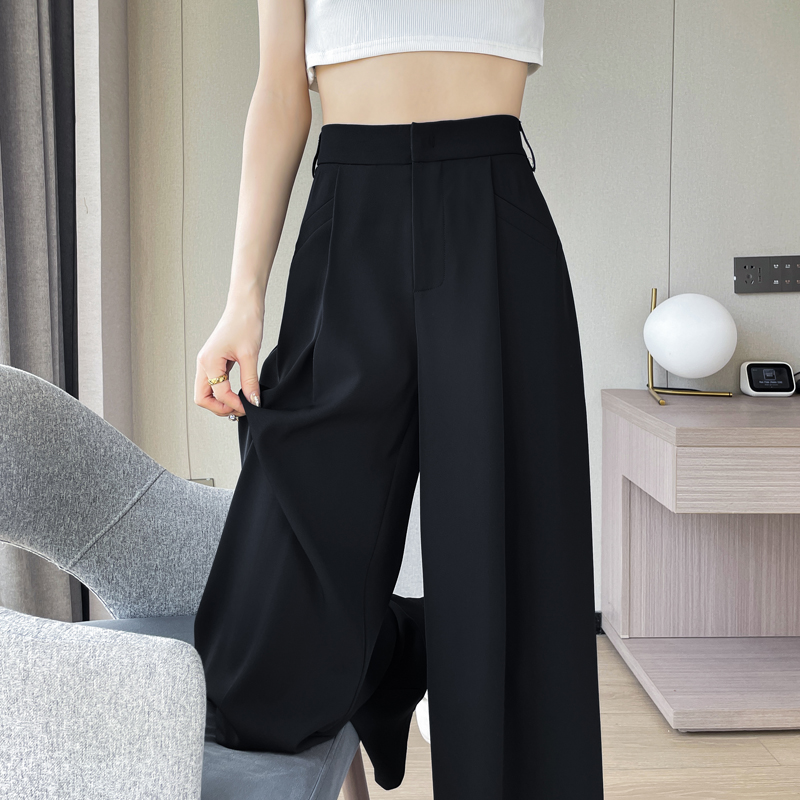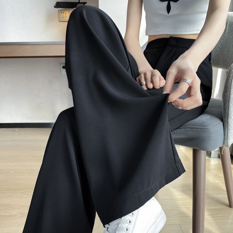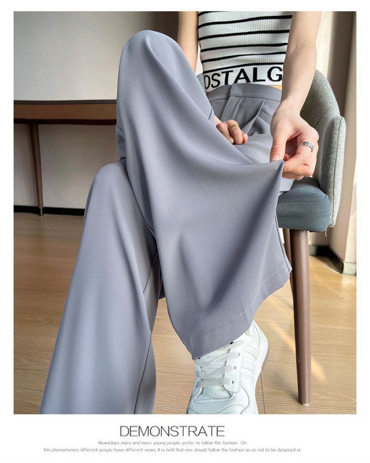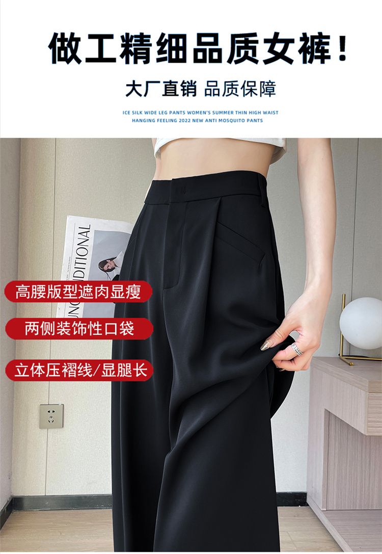 RY3142# 实拍2026夏季冰丝西装裤高腰窄版阔腿裤直筒薄款休闲拖地裤女