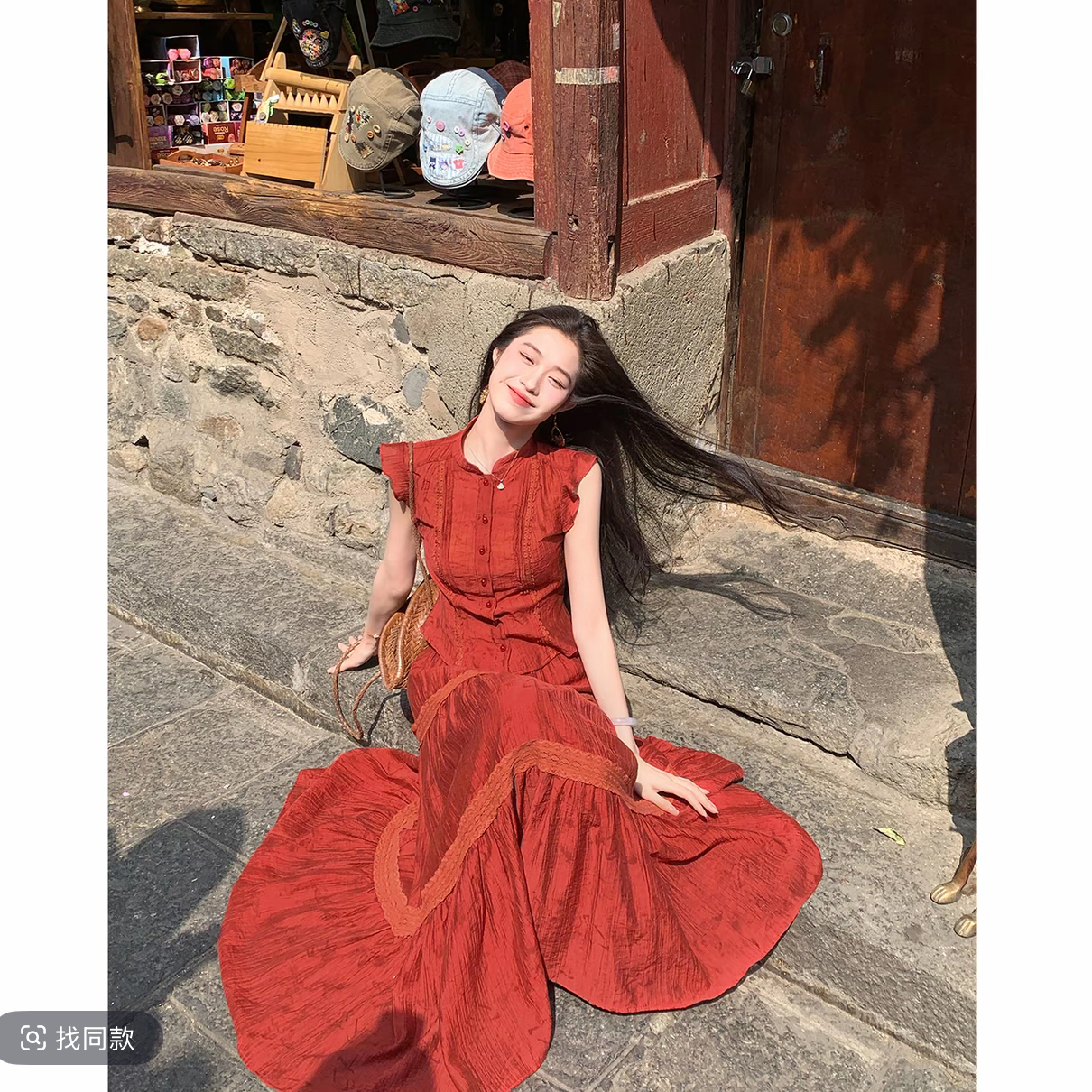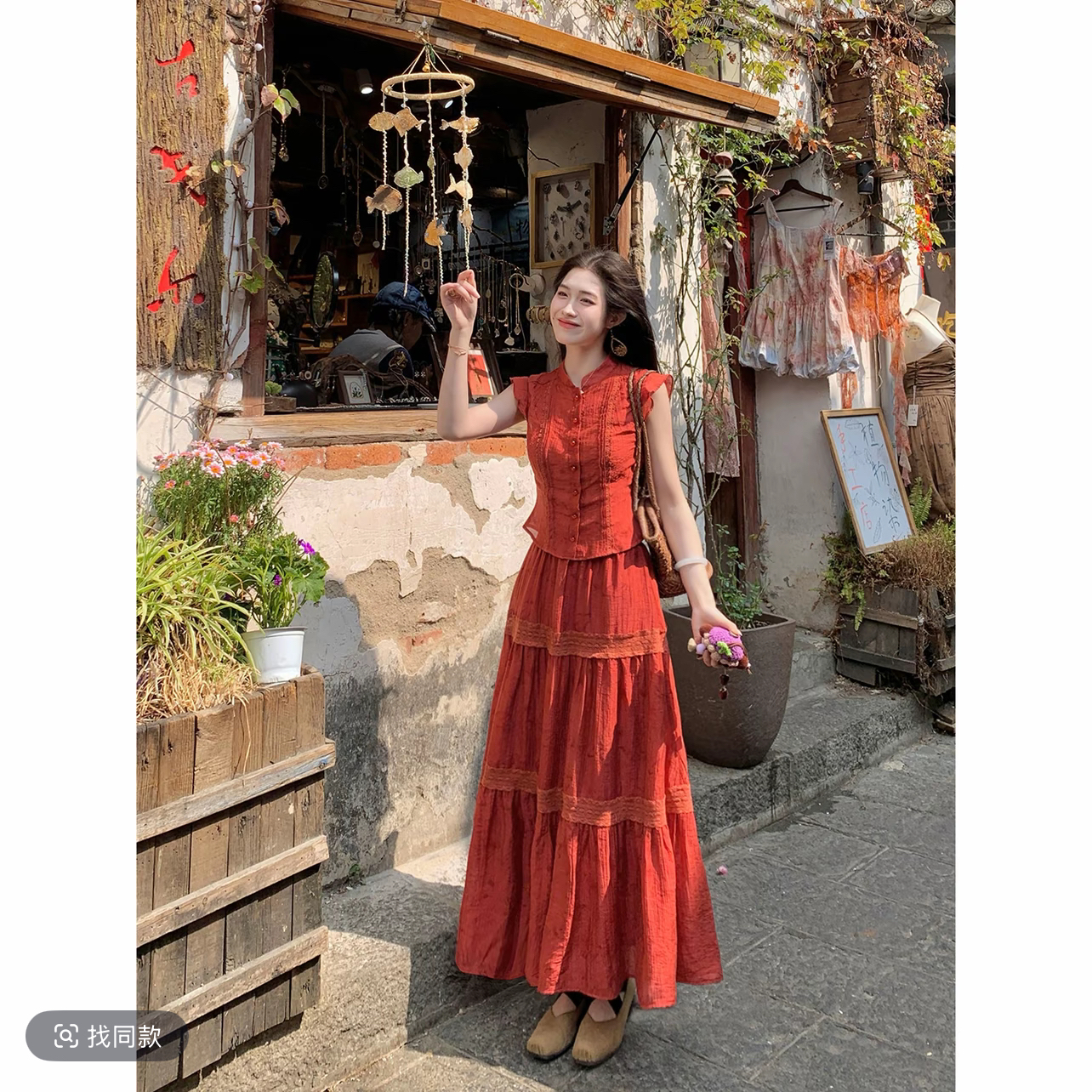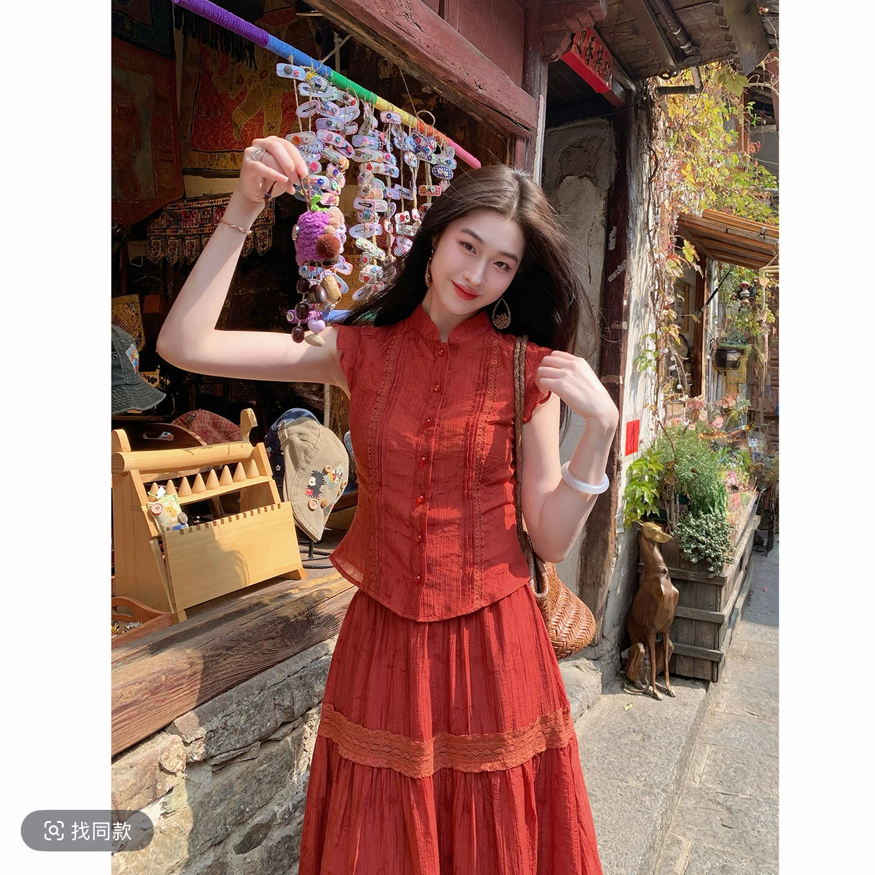 RY3160# 凌茜恣禾南枝红国风新中式短款上衣长款高腰大A摆半身裙套装裙
