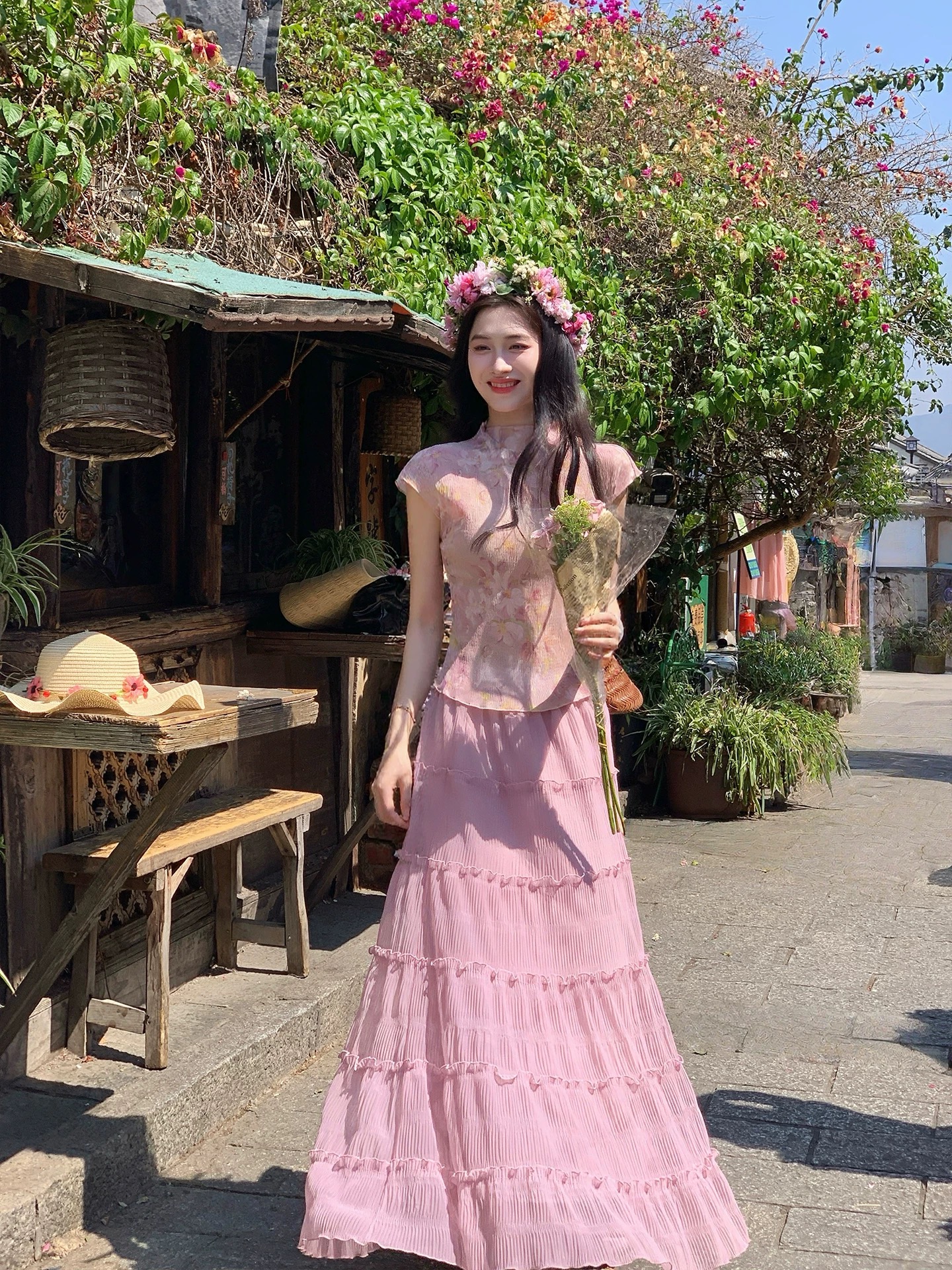 粉色上衣+裙子套装