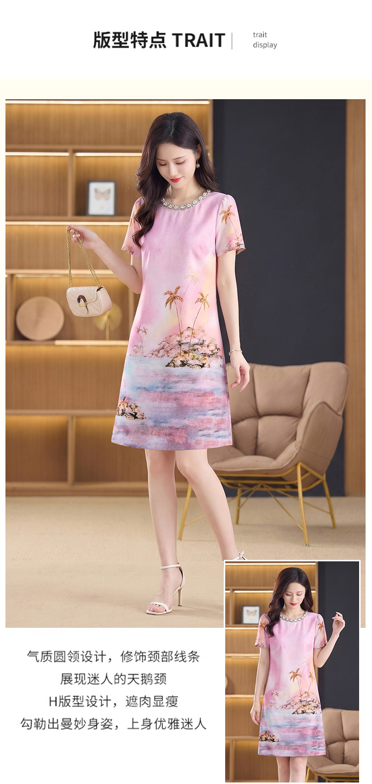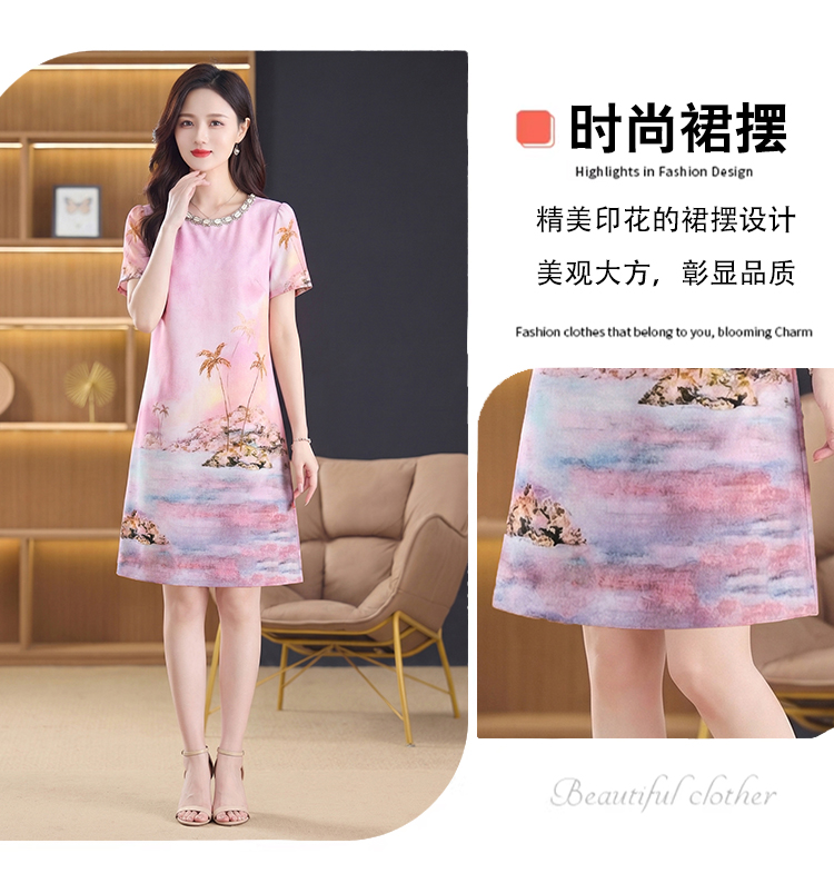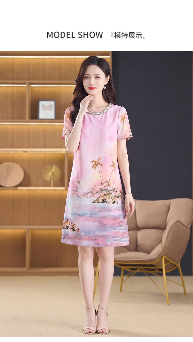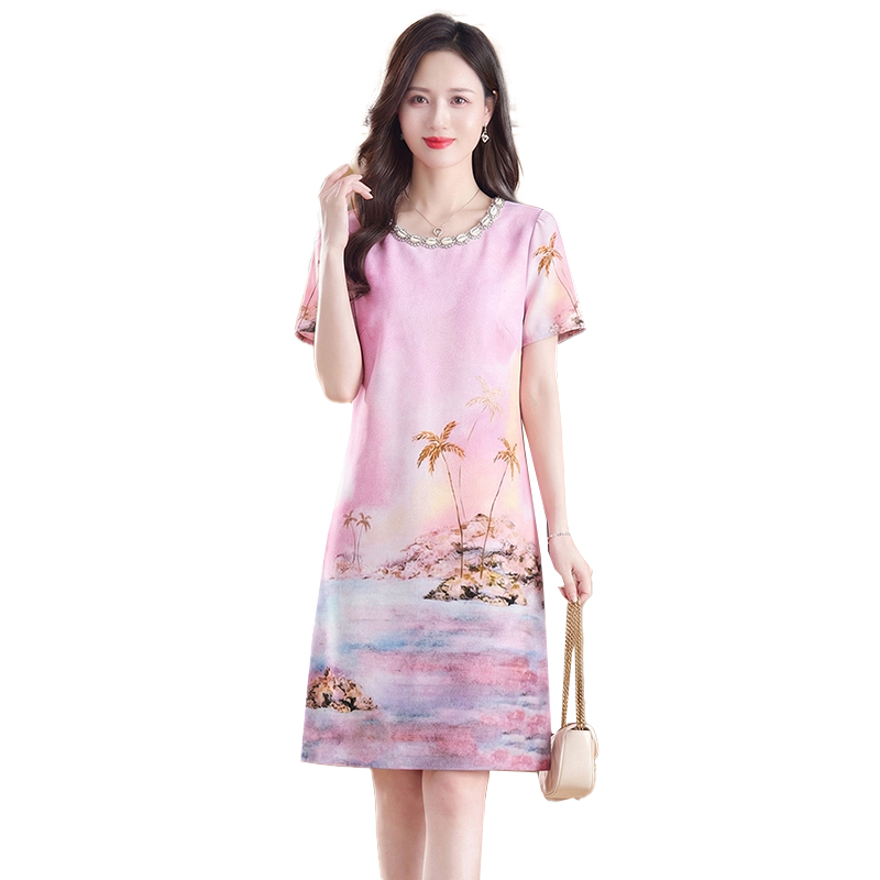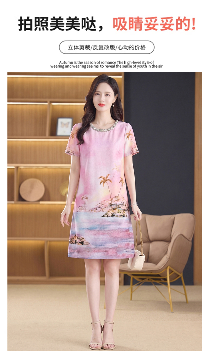 RY3164# 2026新款波嬉风烫钻贝壳圆领短袖热门穿搭海边度假小个子连衣裙