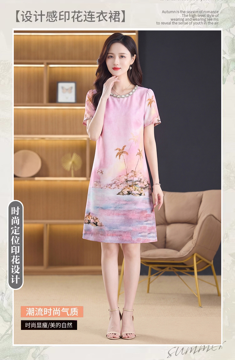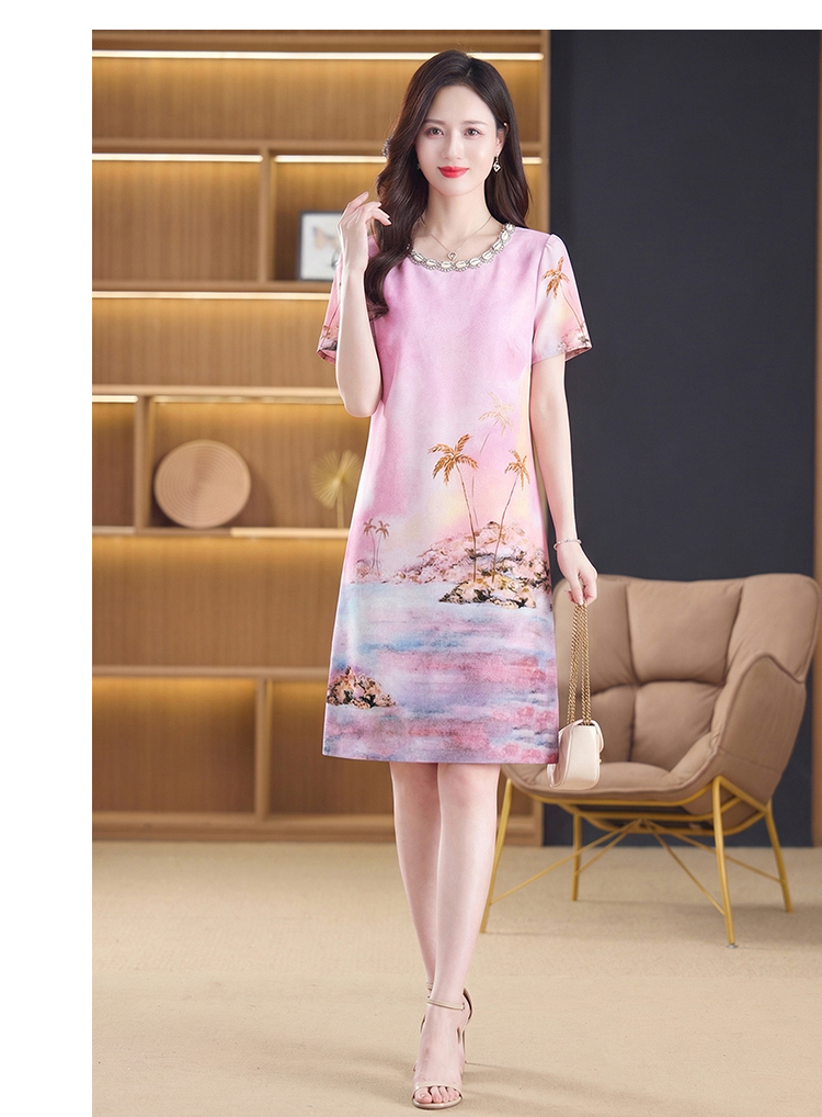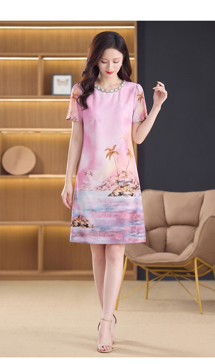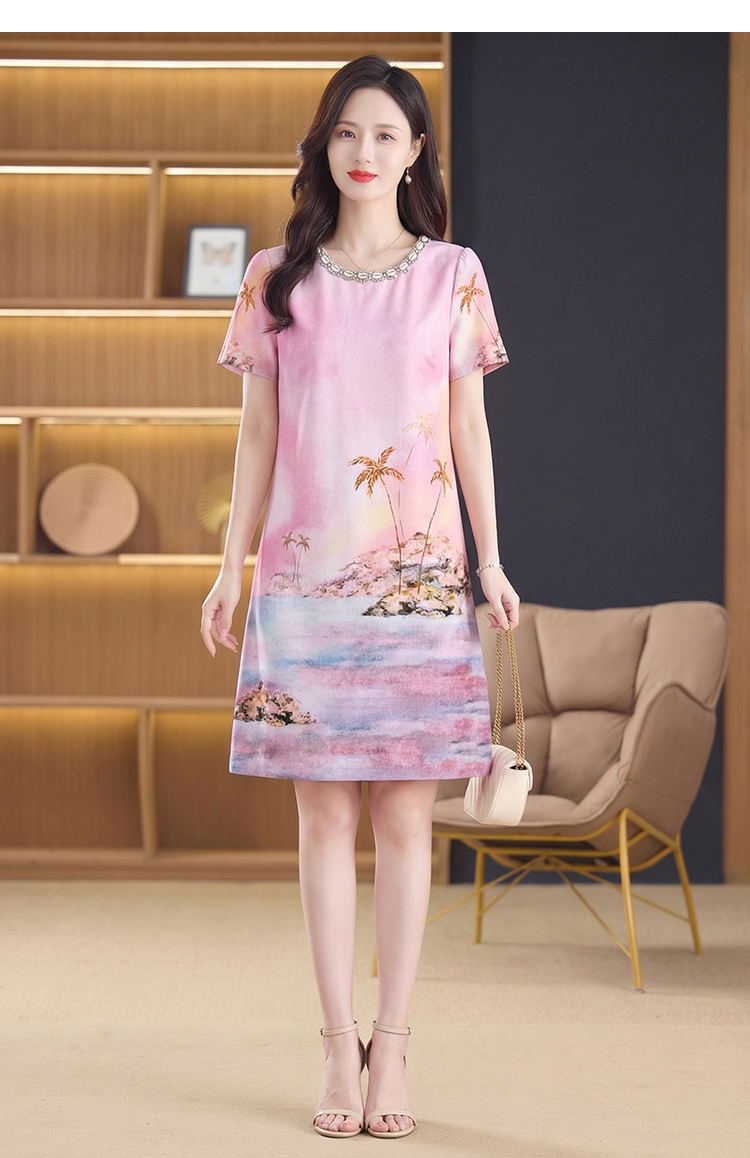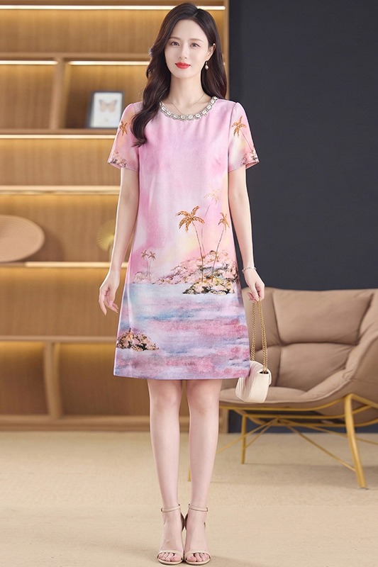 RY3164# 2026新款波嬉风烫钻贝壳圆领短袖热门穿搭海边度假小个子连衣裙