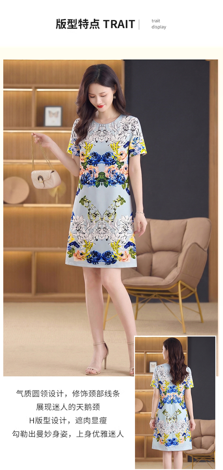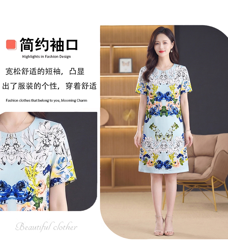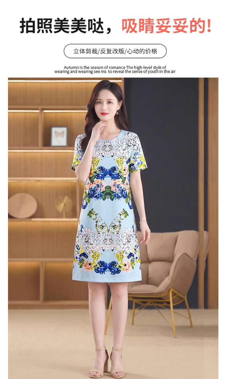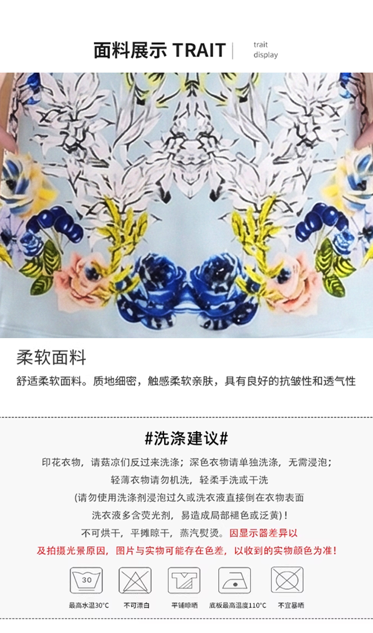 RY3166# 唯美风时尚蓝色玫瑰定位印花裙2026夏季女装高级感舒适钉珠连衣裙