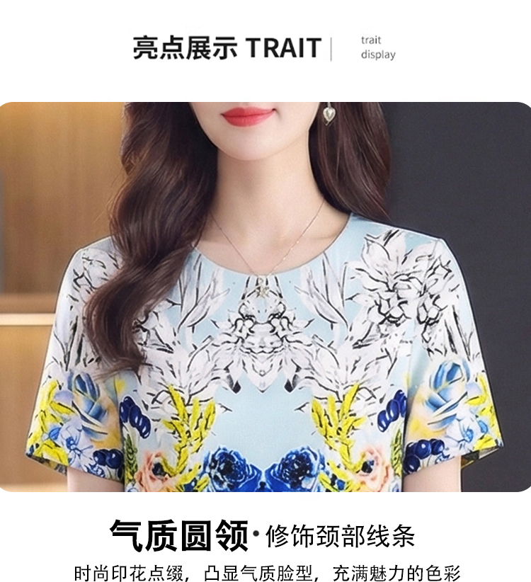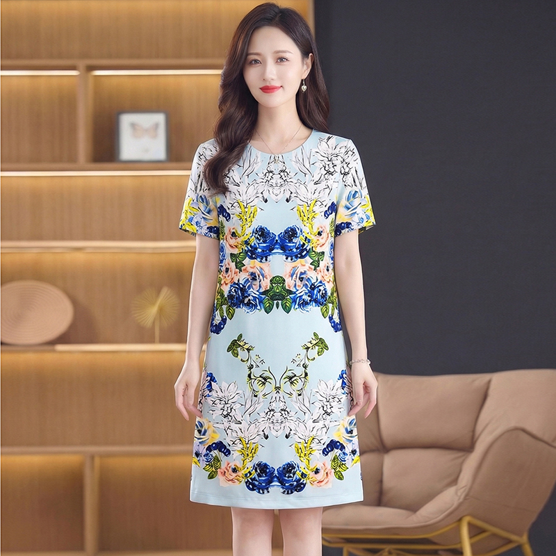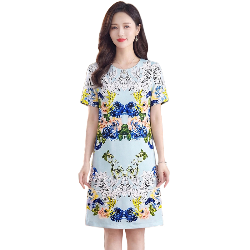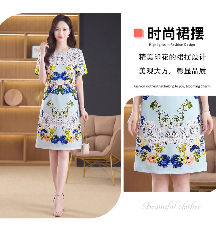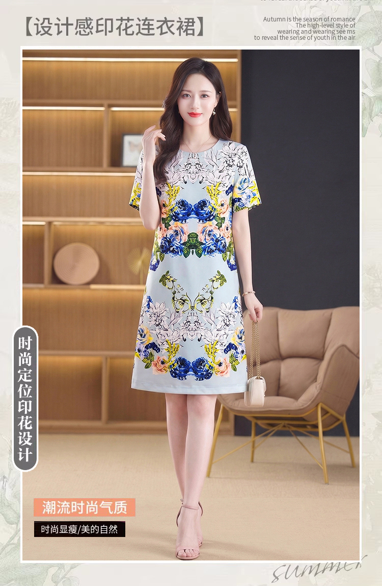 RY3166# 唯美风时尚蓝色玫瑰定位印花裙2026夏季女装高级感舒适钉珠连衣裙