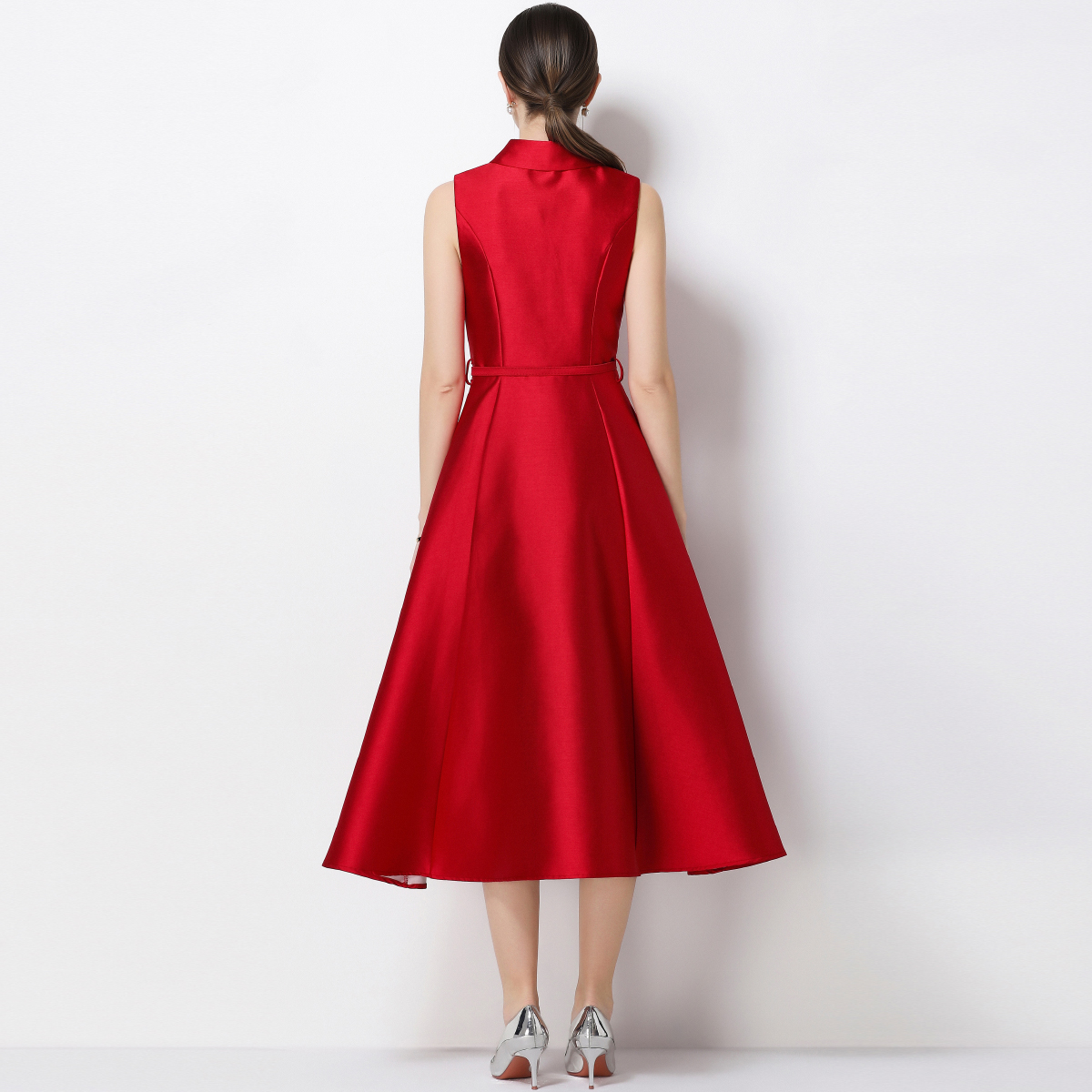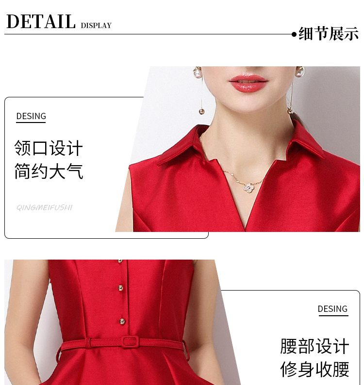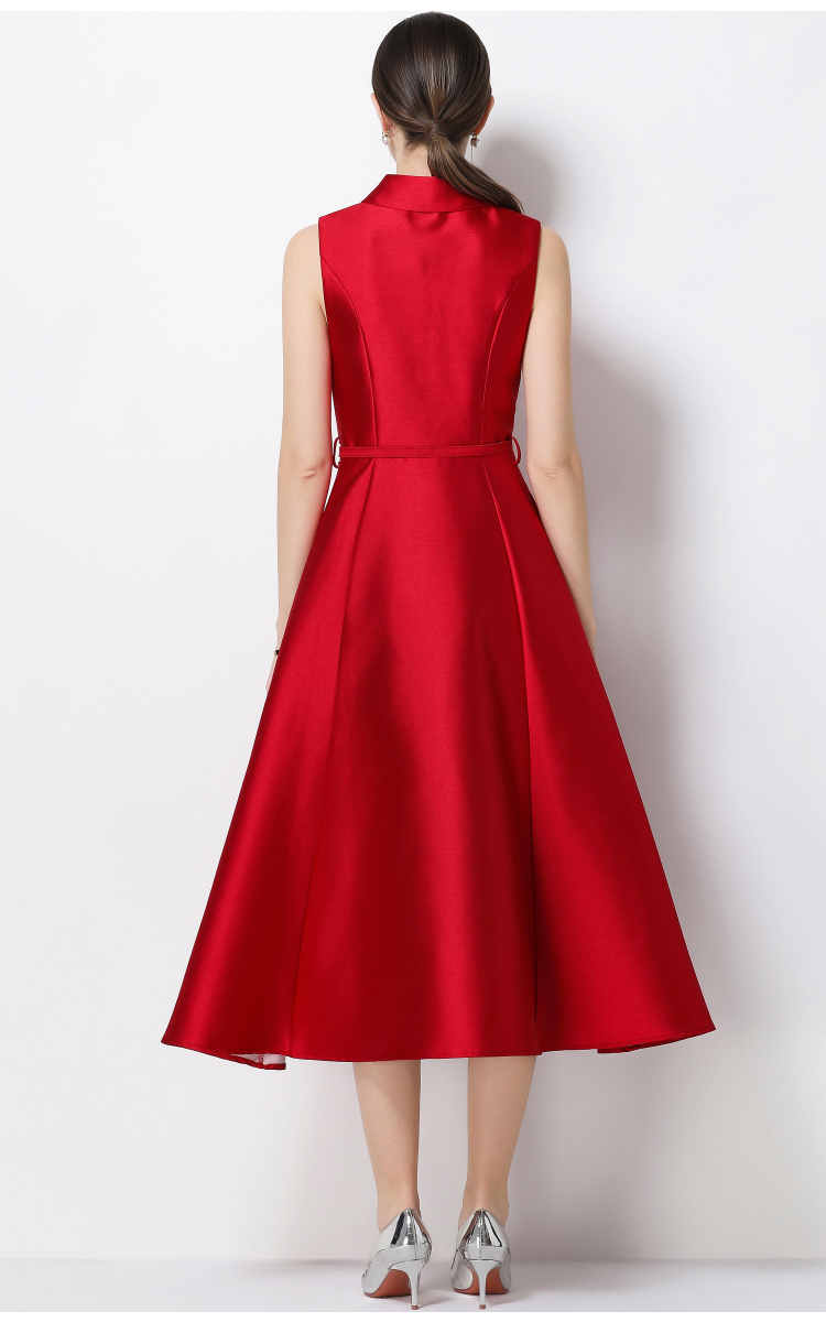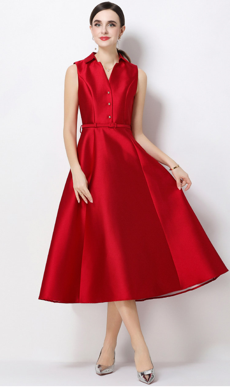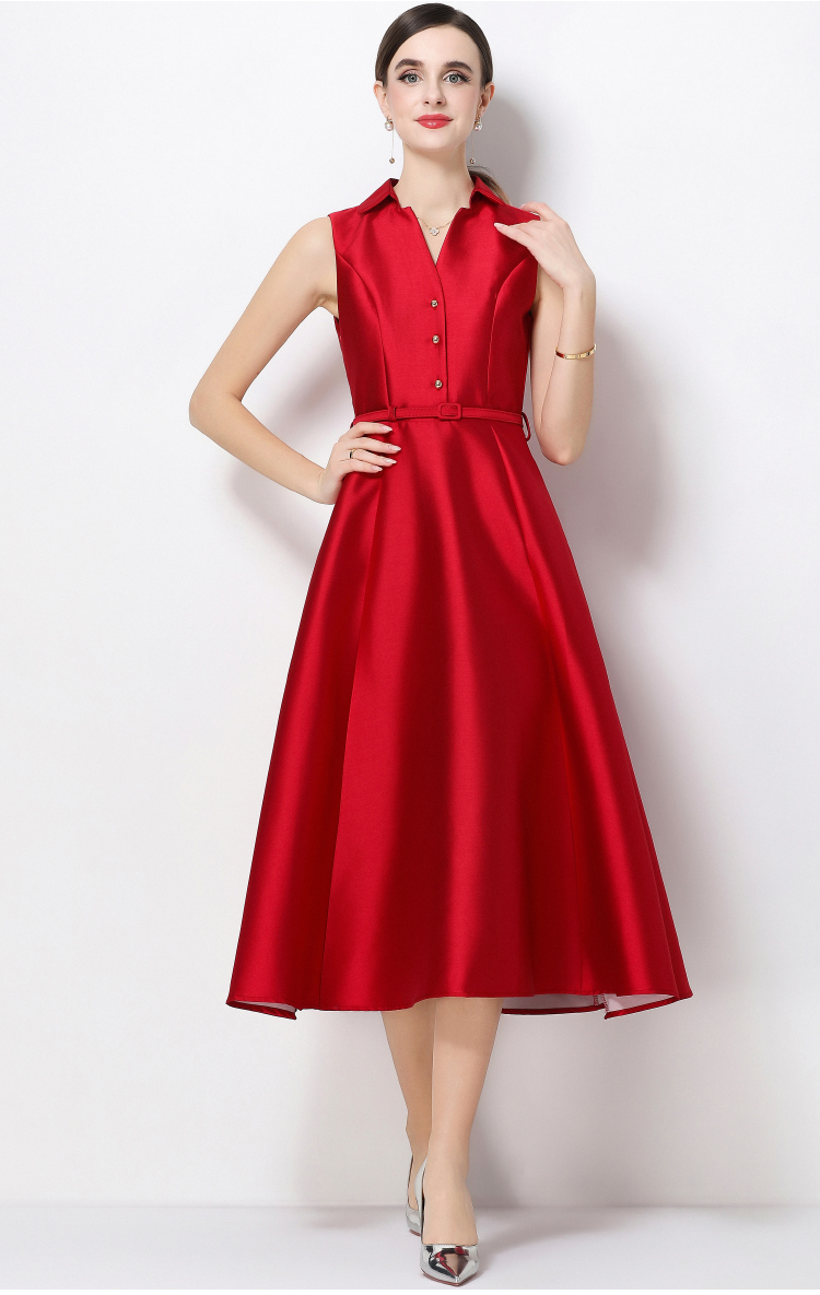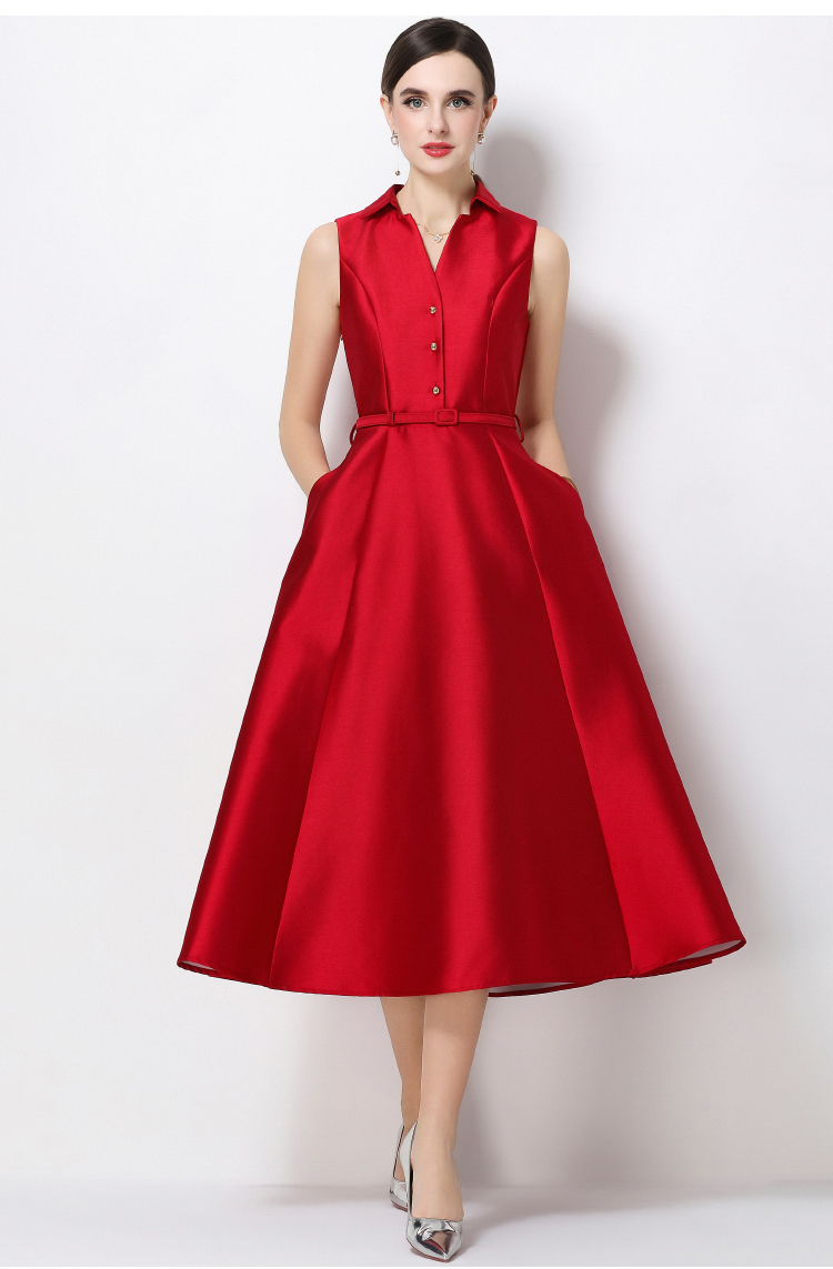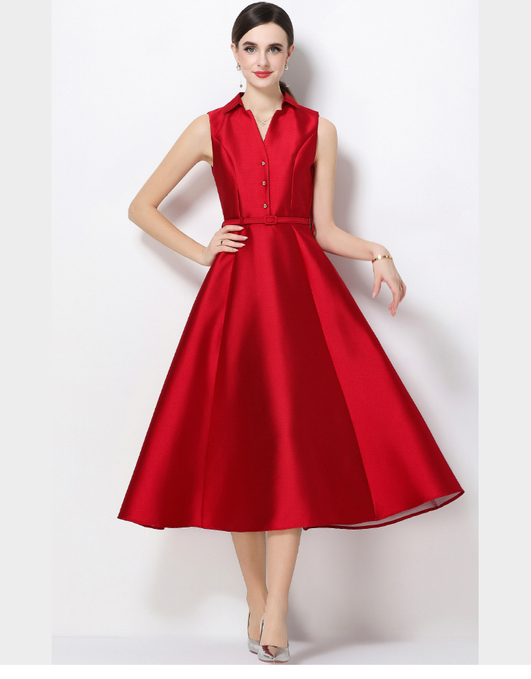 RY3207# 实拍千金风无袖翻领收腰连衣裙高腰A字裙通勤气质修身裙子配腰带