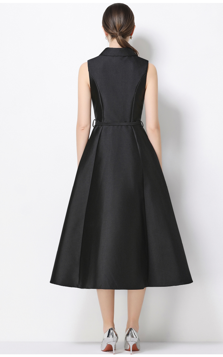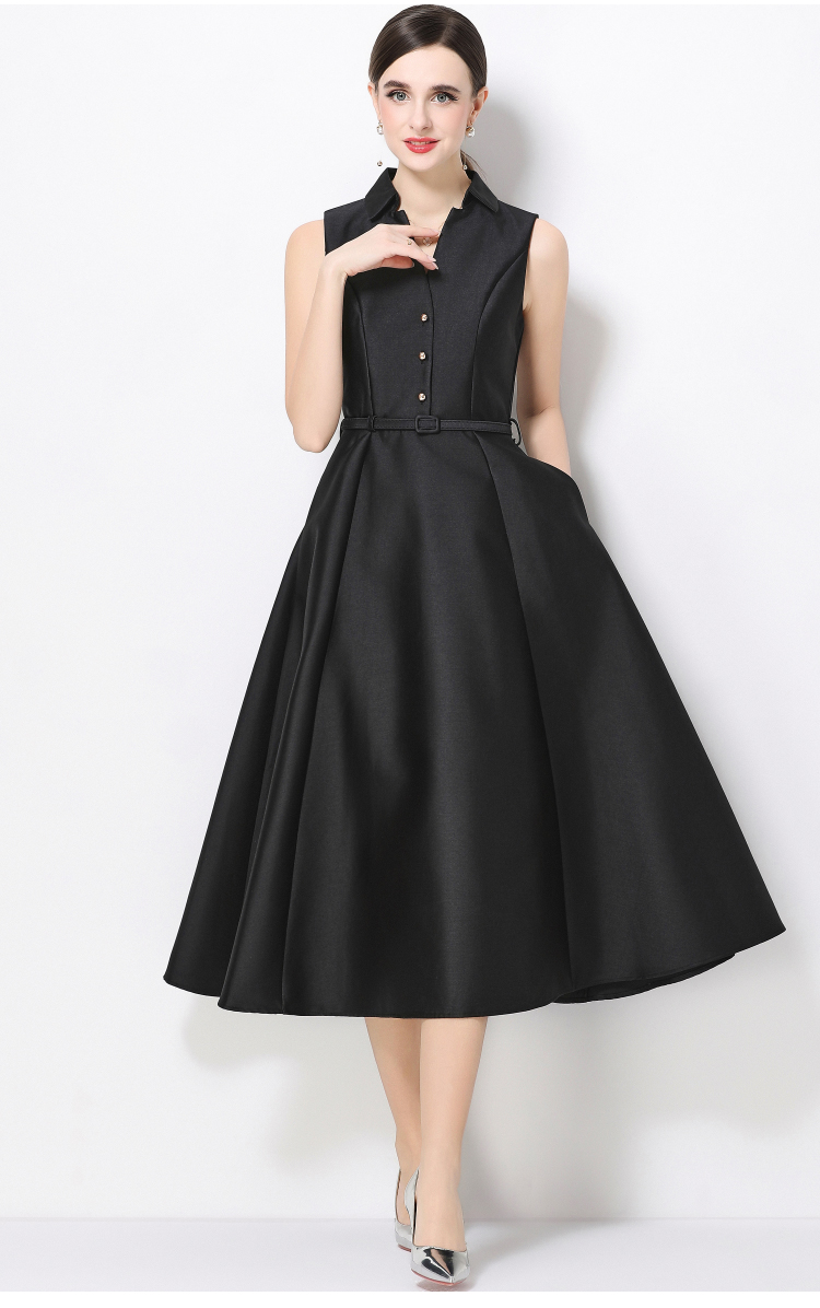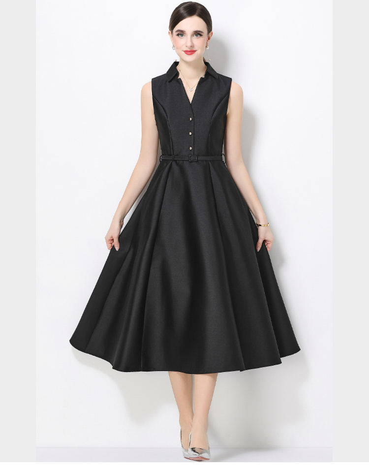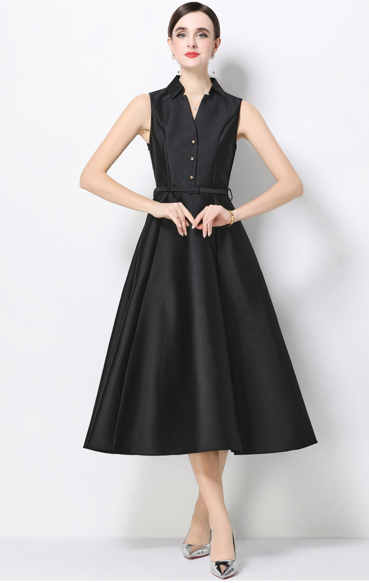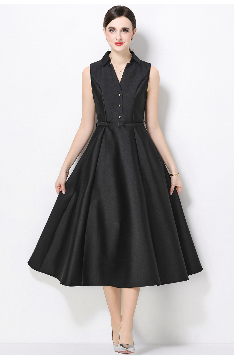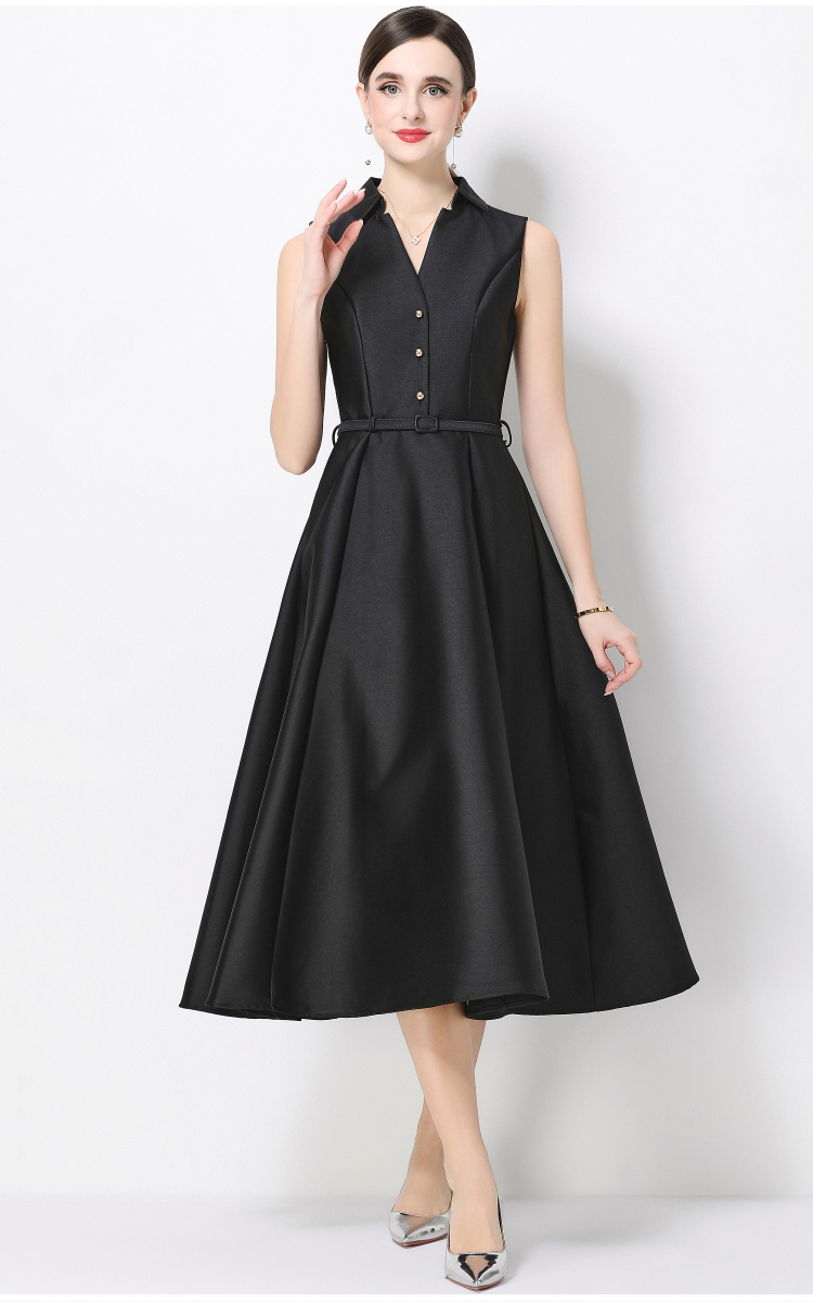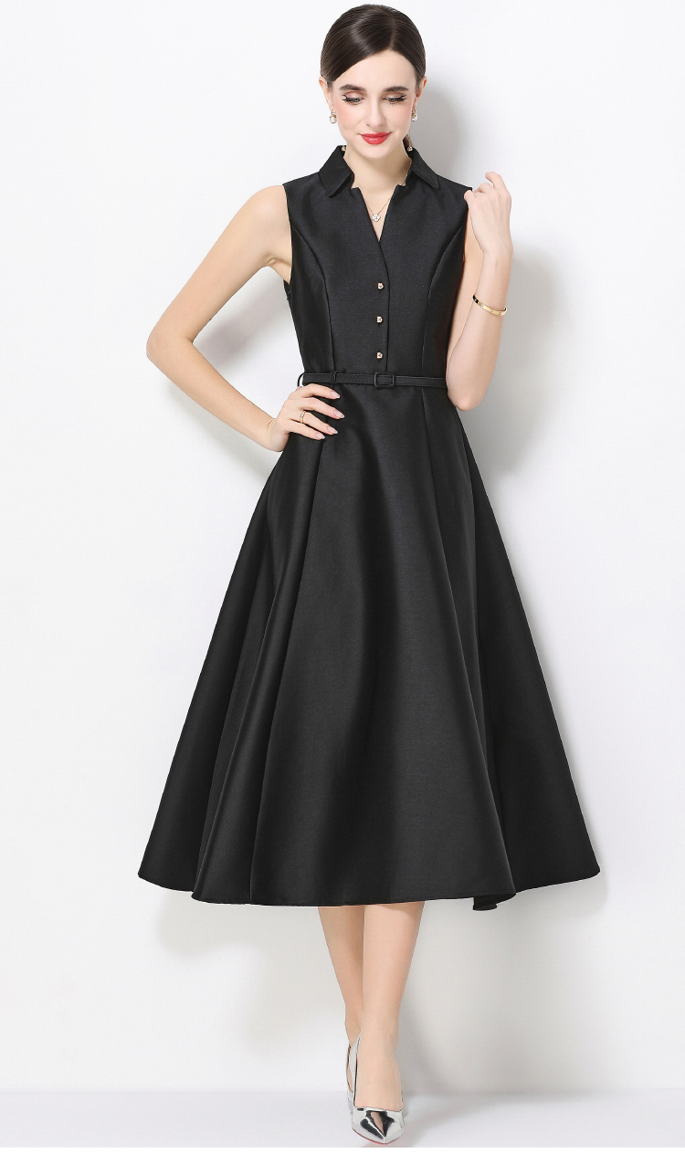 RY3208# 实拍千金风无袖翻领收腰连衣裙高腰A字裙通勤气质修身裙子配腰带