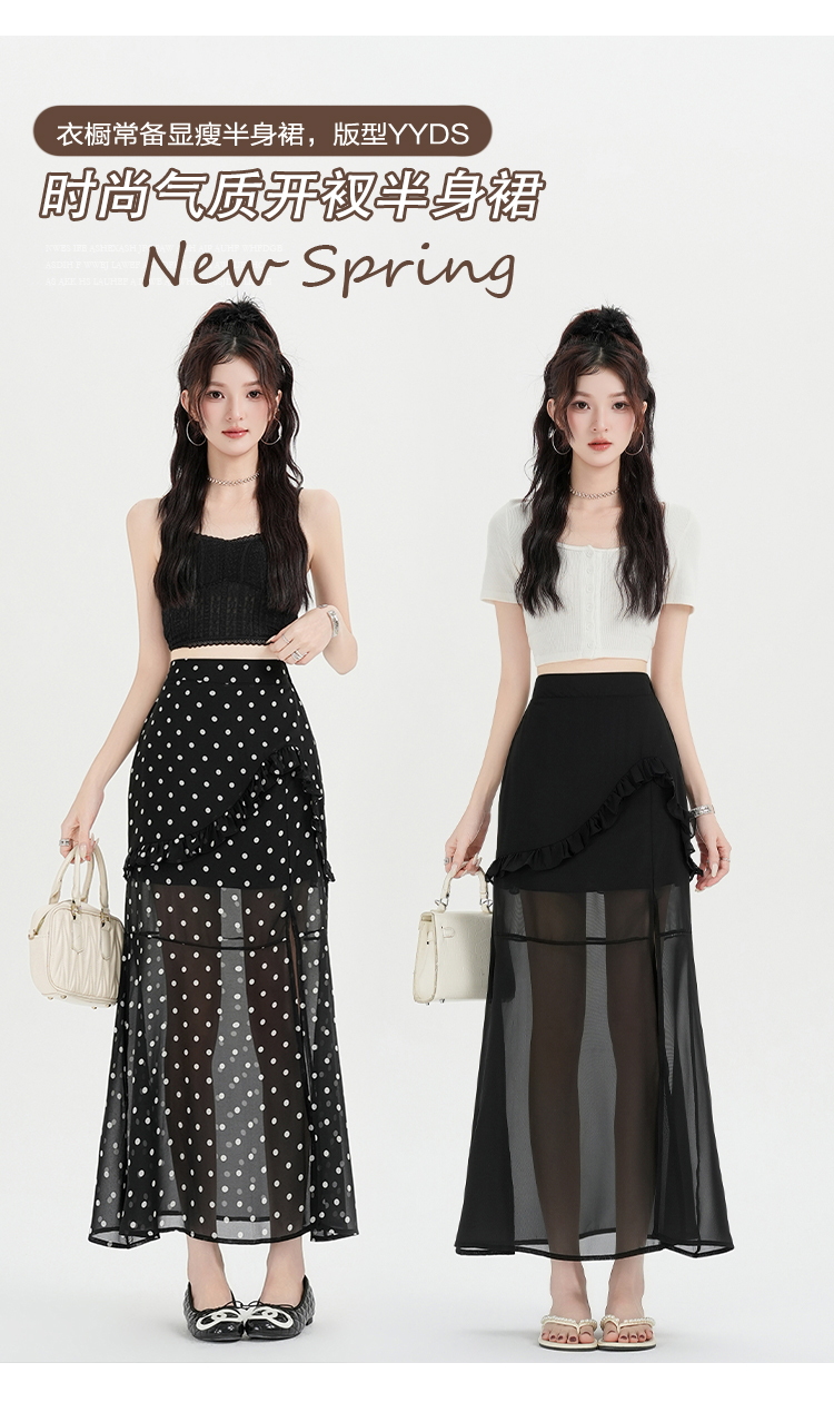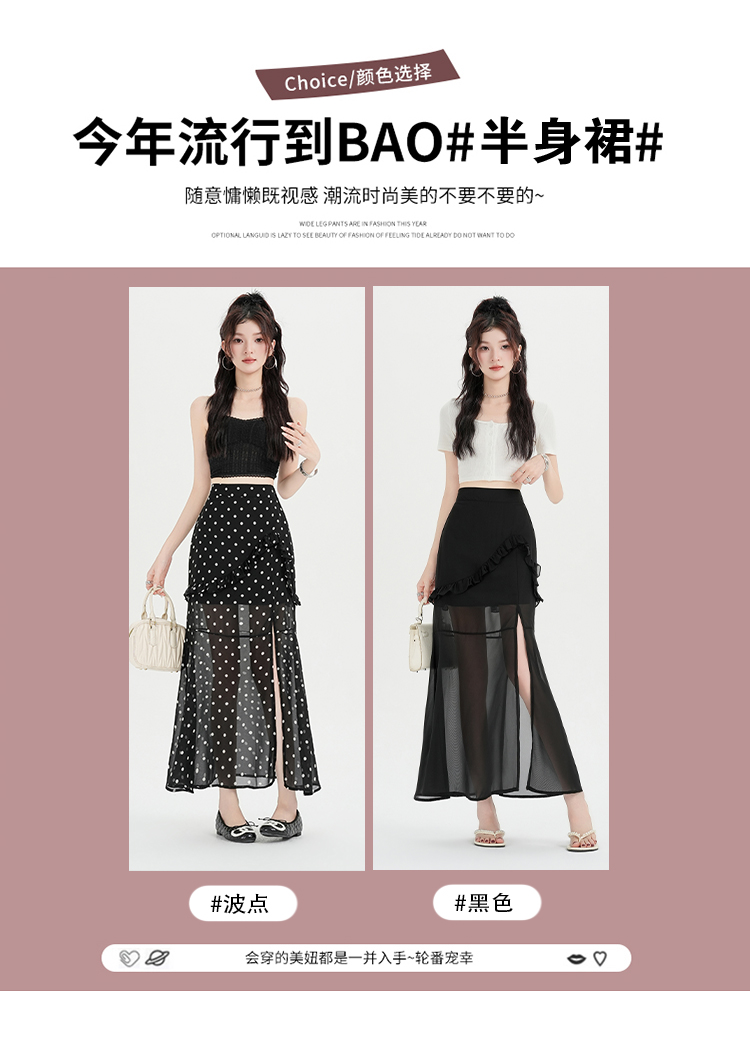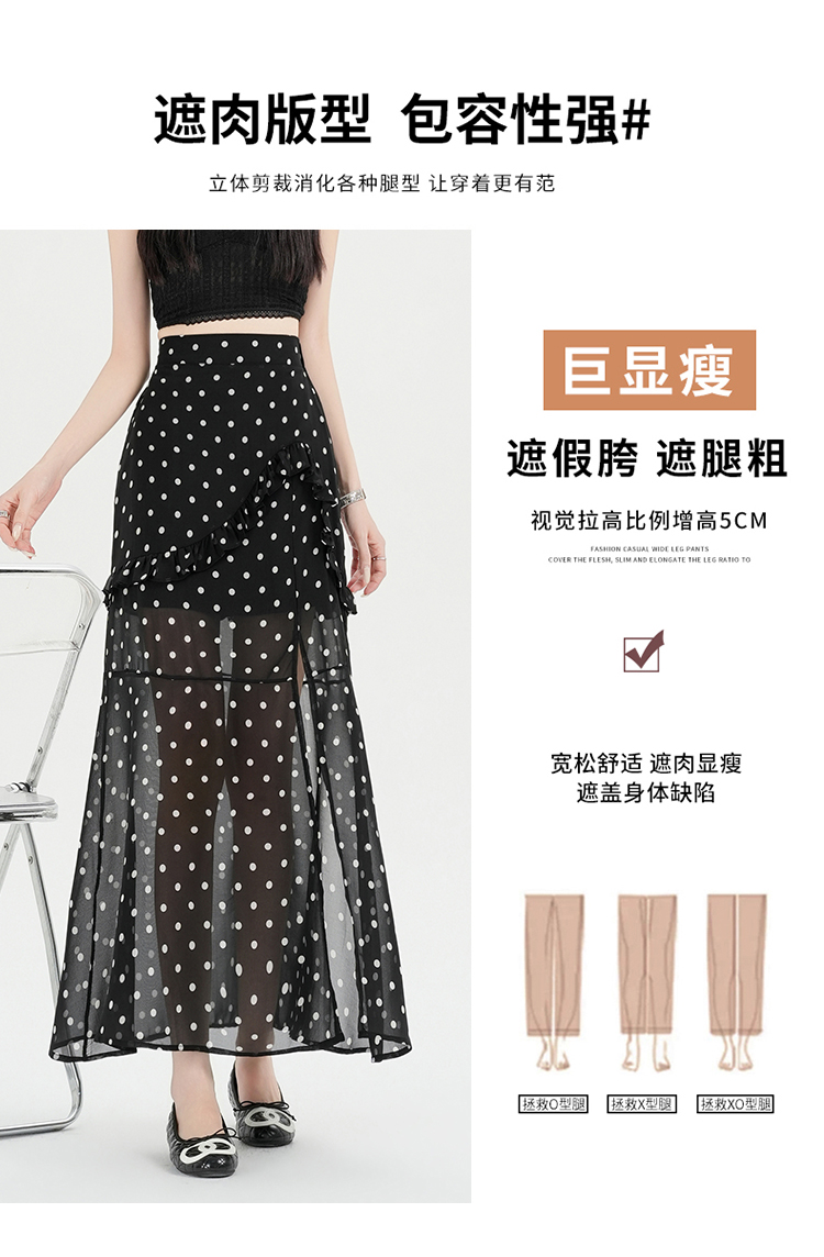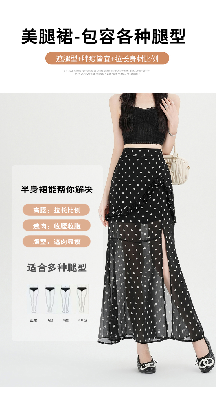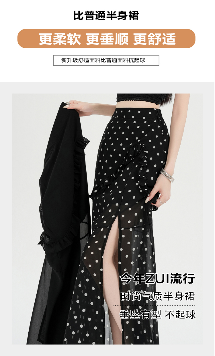 RY3264# 实拍 不规则波点半身裙女2026新款气质高腰显瘦长裙